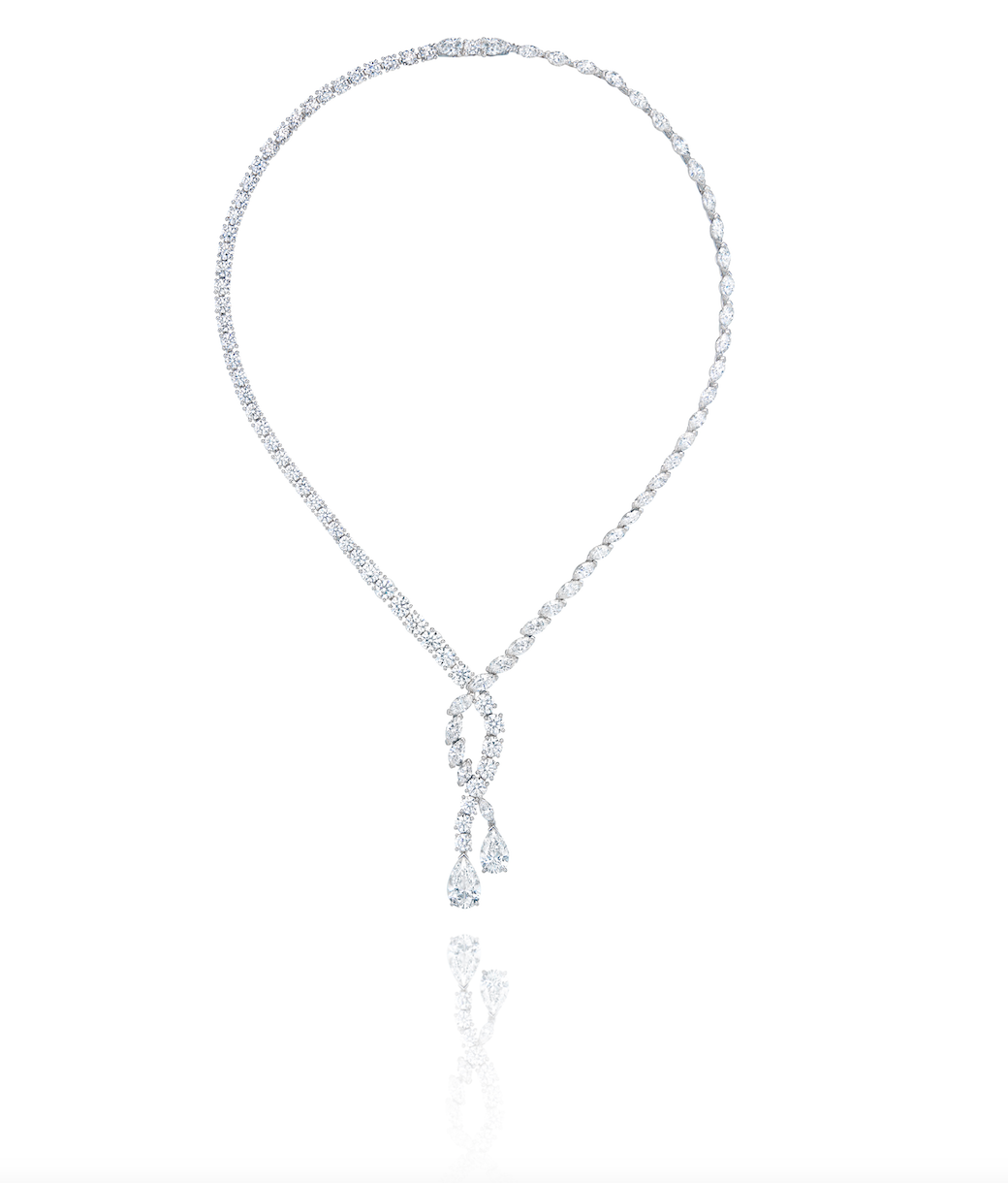Hommage au London Eye, elle met en relief la vue à 360 degrés de la ville, les diamants marquises et l’entremêlage des pierres donnent du relief et du rythme à la pièce qui est magnifiée par de magnifiques diamants taillés en poire.