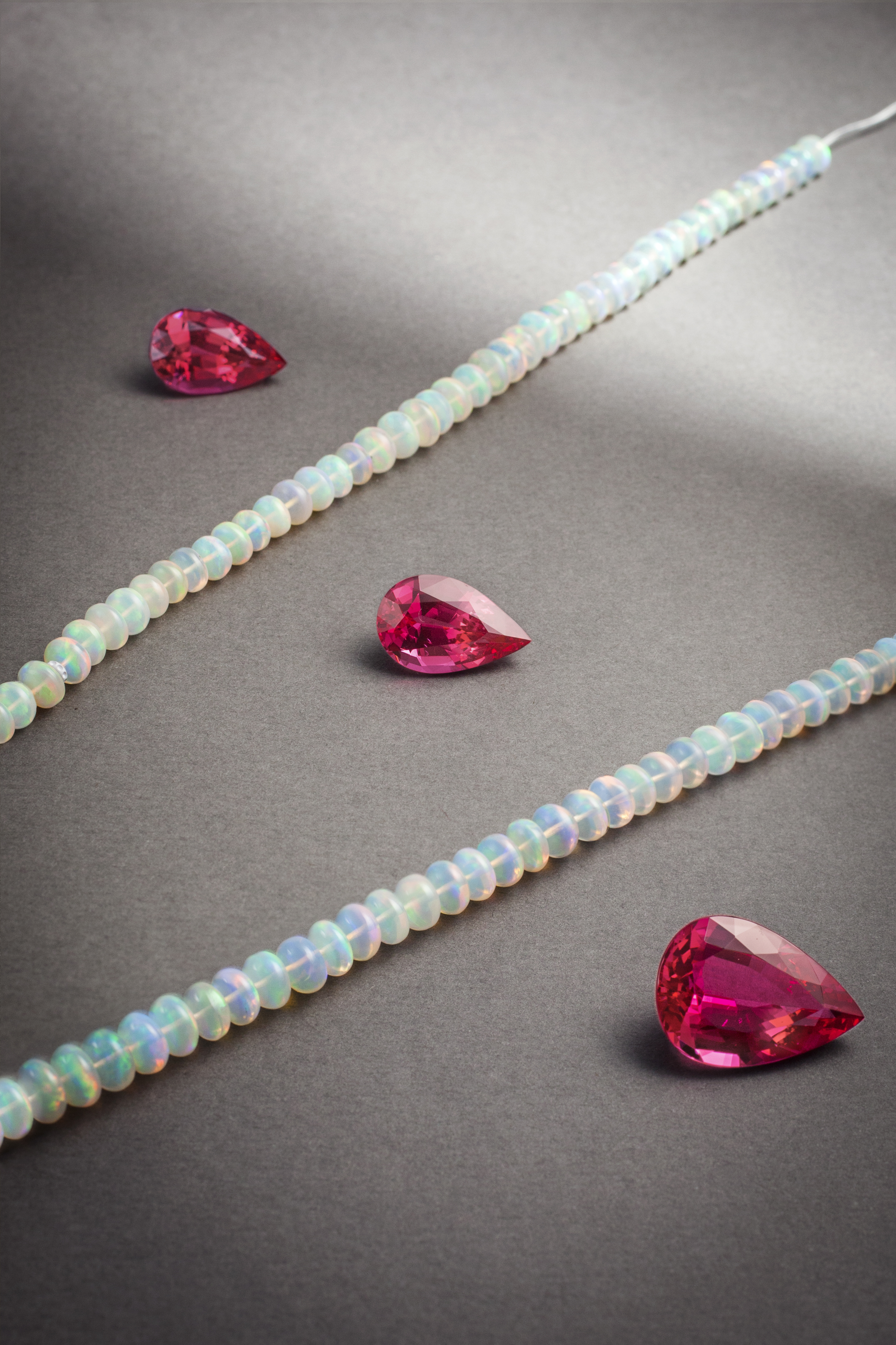 Un grenat mandarin orange flamboyant de 7,13 carats, une opale noire de 53,01 carats aux reflets kaléidoscopiques ou encore une tsavorite de 29,75 carats. Son vert rarissime, tilleul, ne provient que d’une seule veine d’une seule mine découverte récemment à Merelani, en Tanzanie. La sélection des gemmes, précieuses ou décoratives, traduit la volonté de n’en présenter que de prodigieuses.