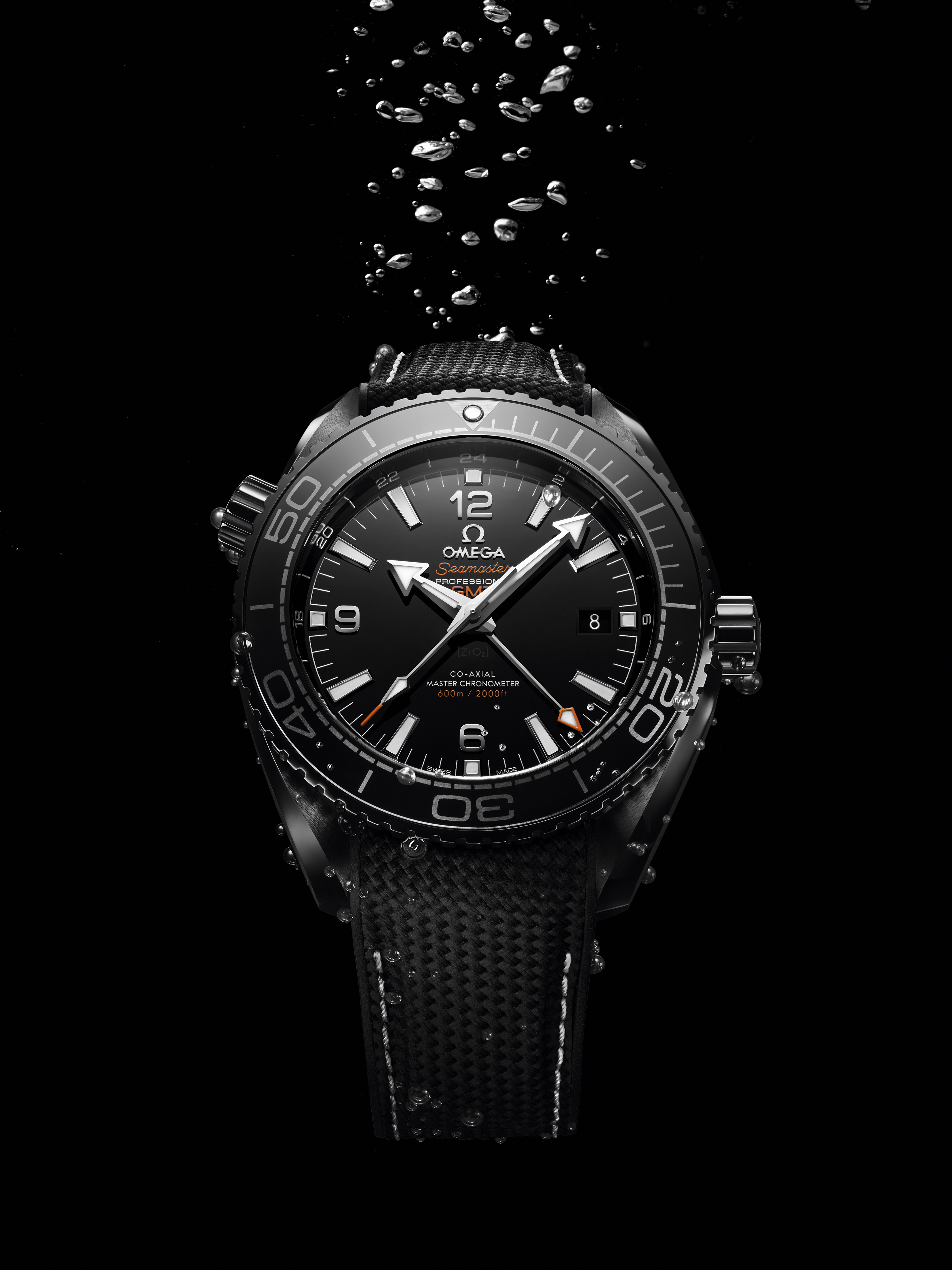 C’est une première pour la collection Planet Ocean : chaque boîtier « Deep Black » est façonné à partir d’un seul bloc de céramique. Les lunettes unidirectionnelles et les cadrans dotés de nouveaux chiffres arabes sont également constitués de céramique.