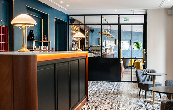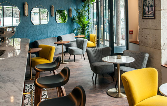 Situé à deux pas du jardin du Luxembourg et la place du Panthéon, l’hôtel André Latin,érigé en plein coeur du quartier Latin, accueille depuis quelques semaines un bar à cocktails aux influences dandyesques, un salon confortable et un lobby transformé en lieu de vie ouvert à tous. L’espace imaginé par l’architecte d’intérieur, Michaël Malapert, dévoile son atmosphère chaleureuse et invite les visiteurs dans un univers élégant et authentique, un «home sweet home» directement accessible depuis la rue. Dès 8h, le bar ouvre ses portes sur la terrasse et propose un assortiment d’infusions, de thés noirs et verts, ainsi qu’un très bon café torréfié de chez Lomi. Dans le rayon notes sucrées, un choix gourmand de cakes de chez Rachel’s attend les plus gourmands.