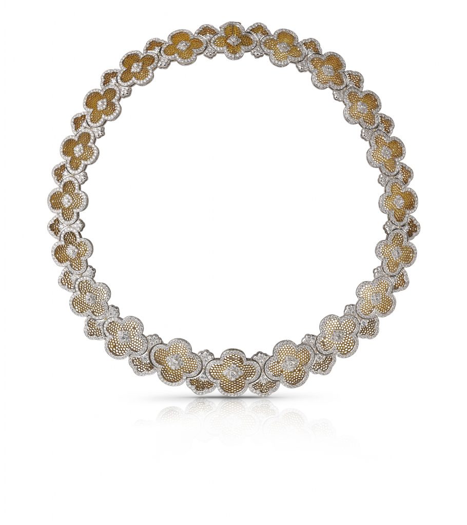 Les artisans, fidèles aux esquisses d’Andrea Buccellati, percent à la main de fines feuilles d’or sur lesquelles le motif de dentelle est ensuite tracé. Puis, avec patience et grande dextérité, ils percent à nouveau et percent encore pour obtenir le plus petit et le plus délicat des motifs. C’est ainsi que les bijoux prennent vie et rappellent les célèbres dentelles italiennes.