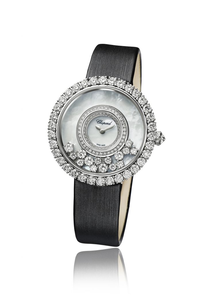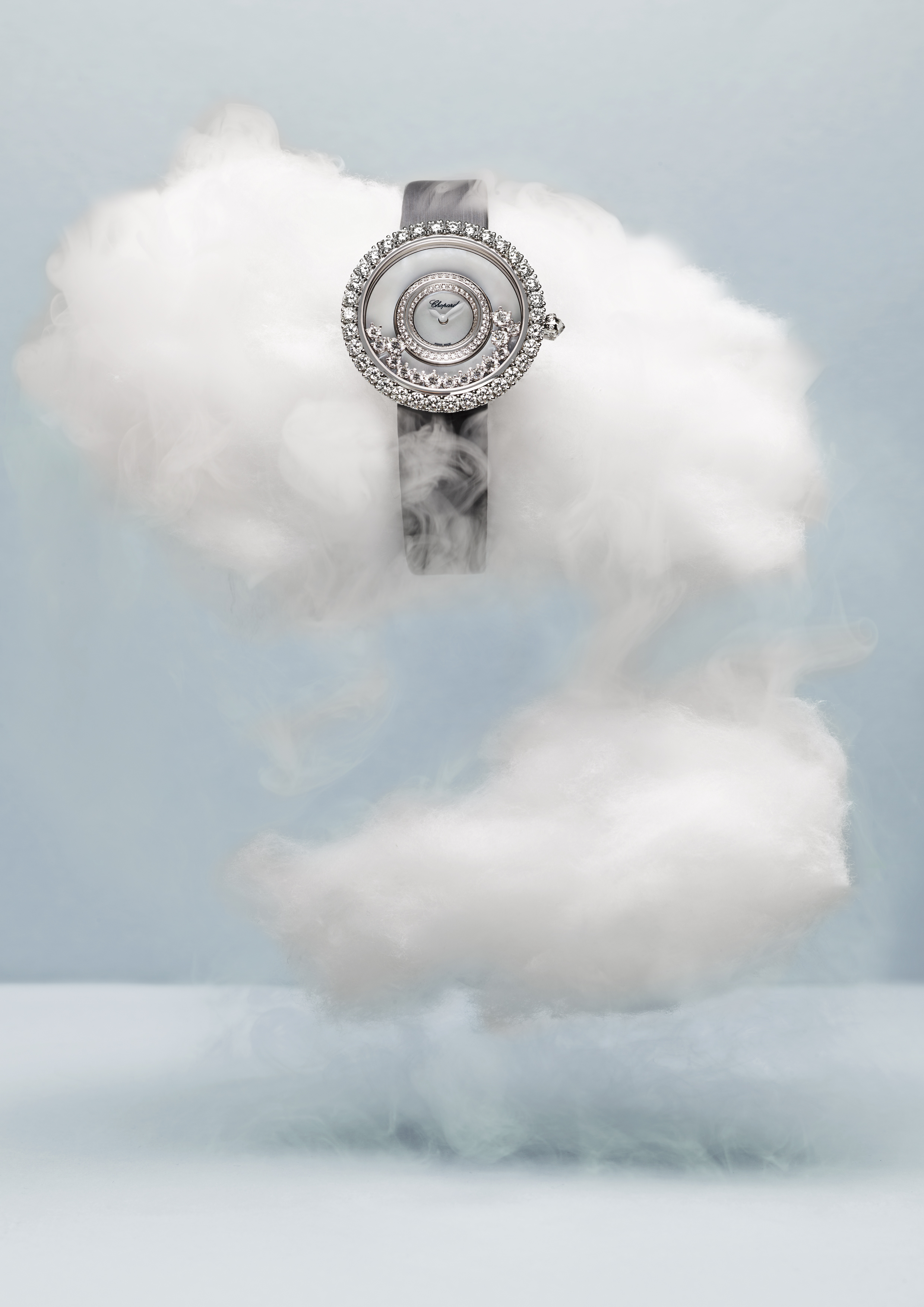 1976. Lors d’une promenade en Forêt-Noire dans les années 70, Ronald Kurowski, dessinateur de la maison Chopard, fut émerveillé par la vue d’une cascade et les milliers de gouttelettes d’eau qui s’en échappaient, réfléchissant la lumière du jour et scintillant de toutes les nuances de l’arc-en-ciel.