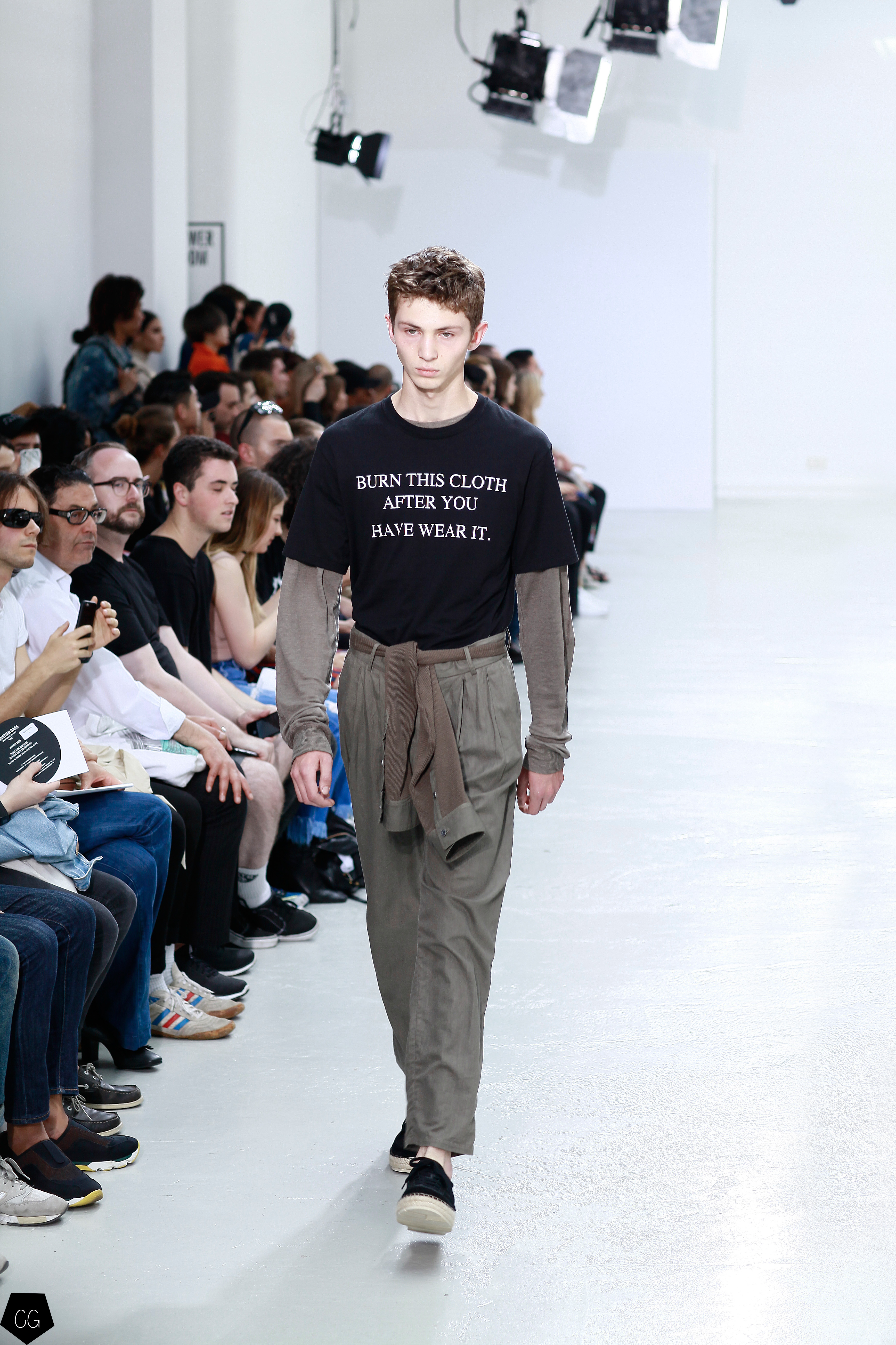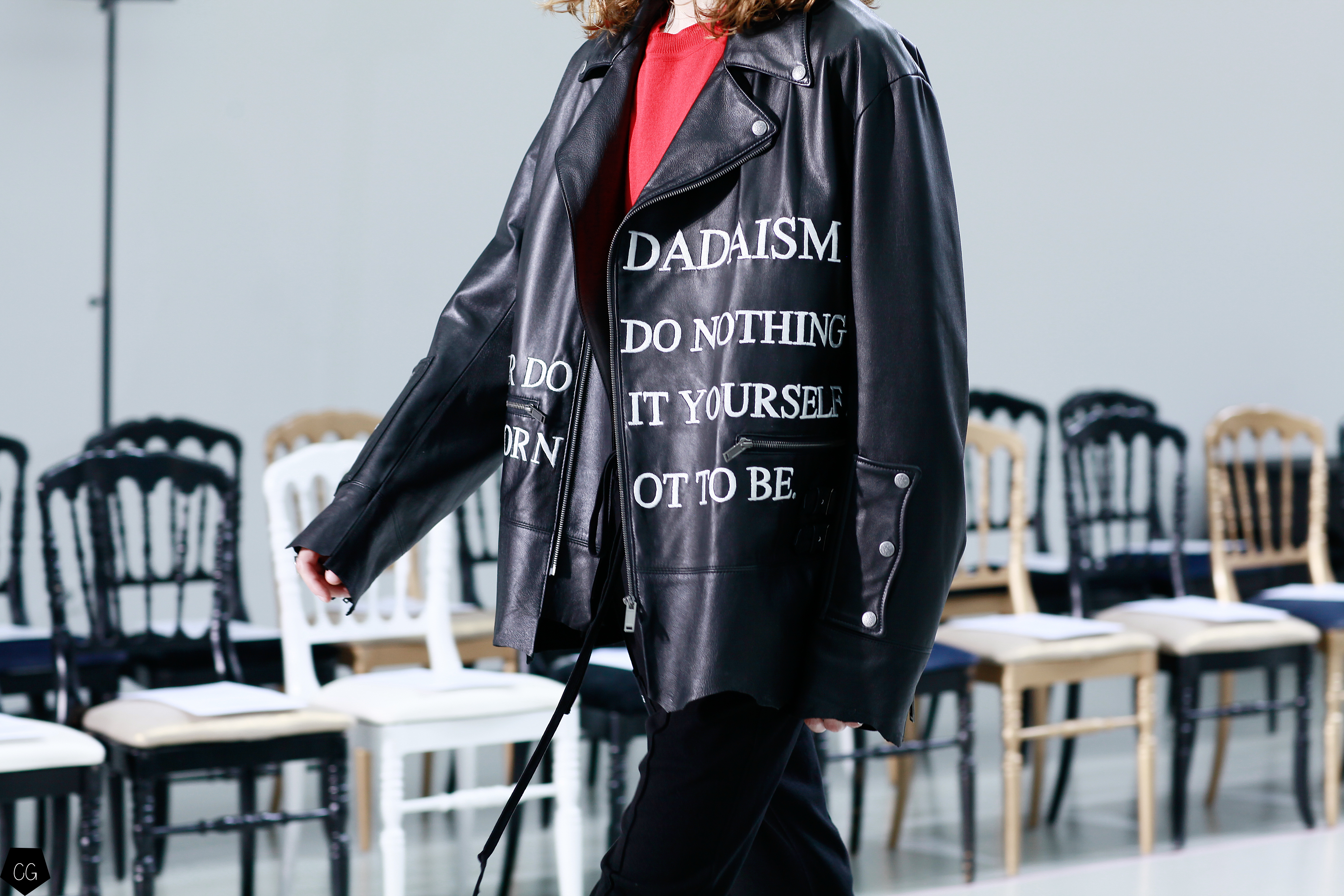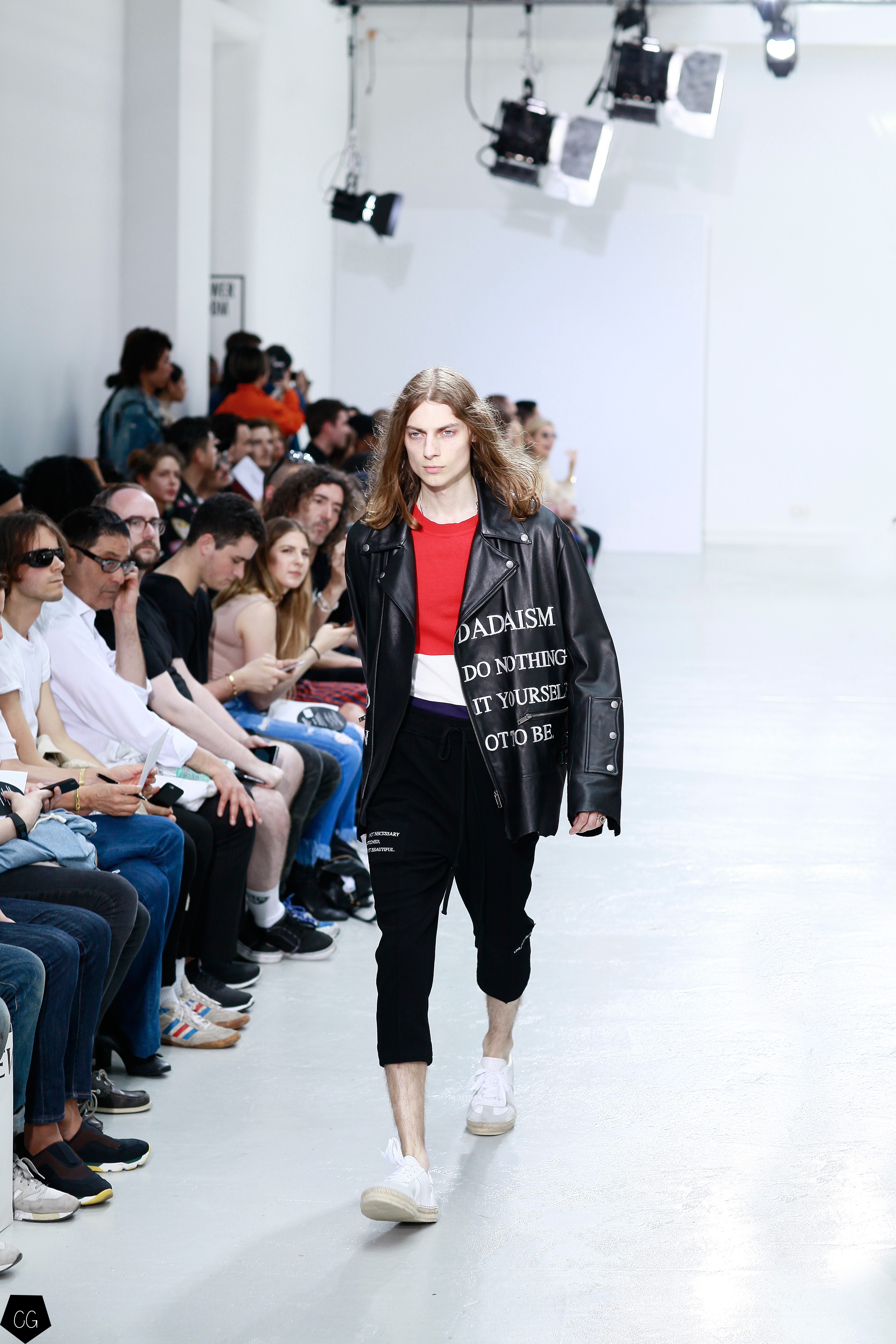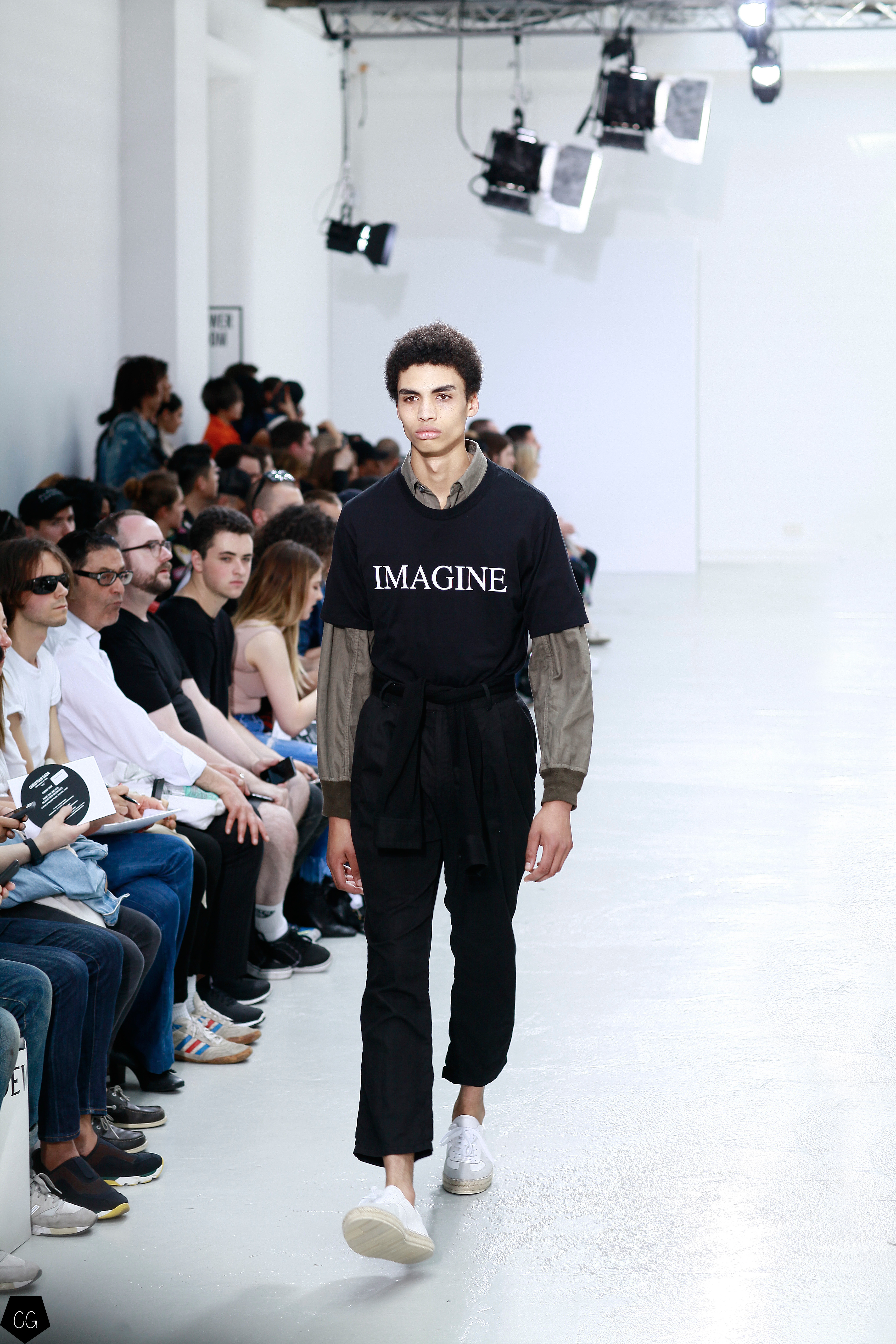 Masanori Morikawa, le créateur de Christian Dada propose une collection qui oppose la paix et guerre. Le vestiaire est urbain, mode et rock et reprend le vocabulaire militaire. A cet aspect strict et militaire, le créateur ajoute de la complexité en destructurant, abimant, coupant. Le créateur revendique un hommage à John Lennon et Yoko Ono.