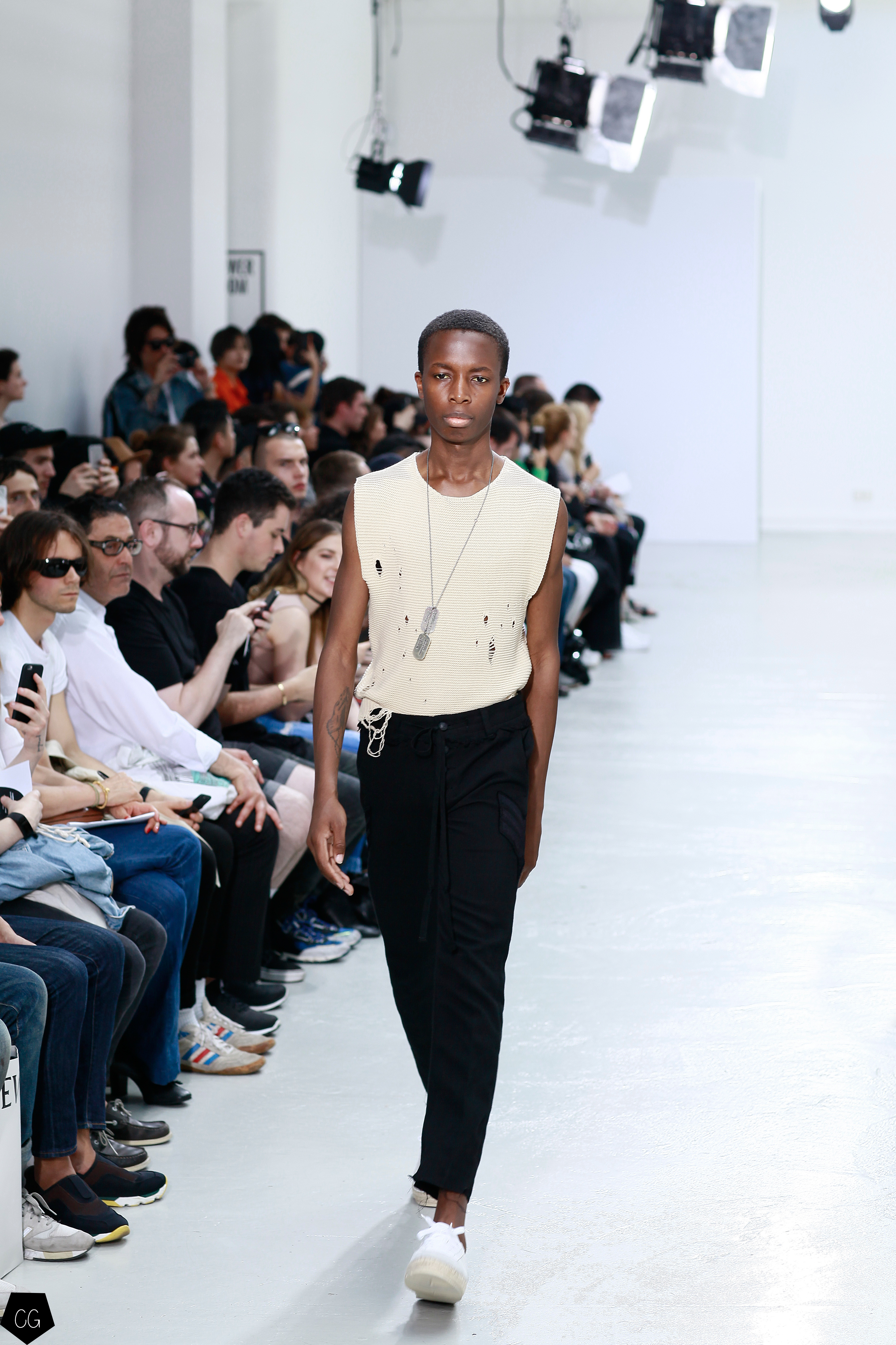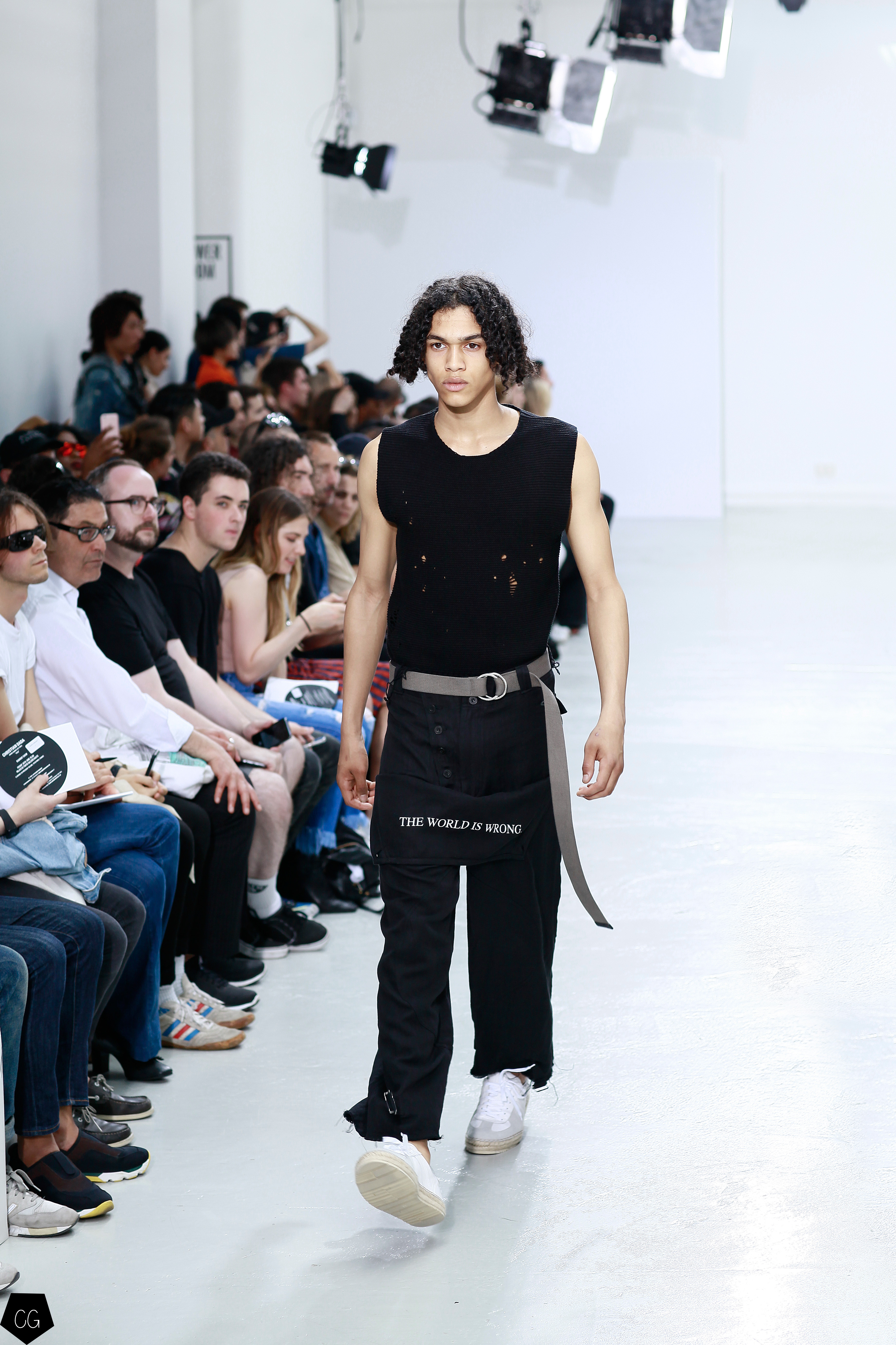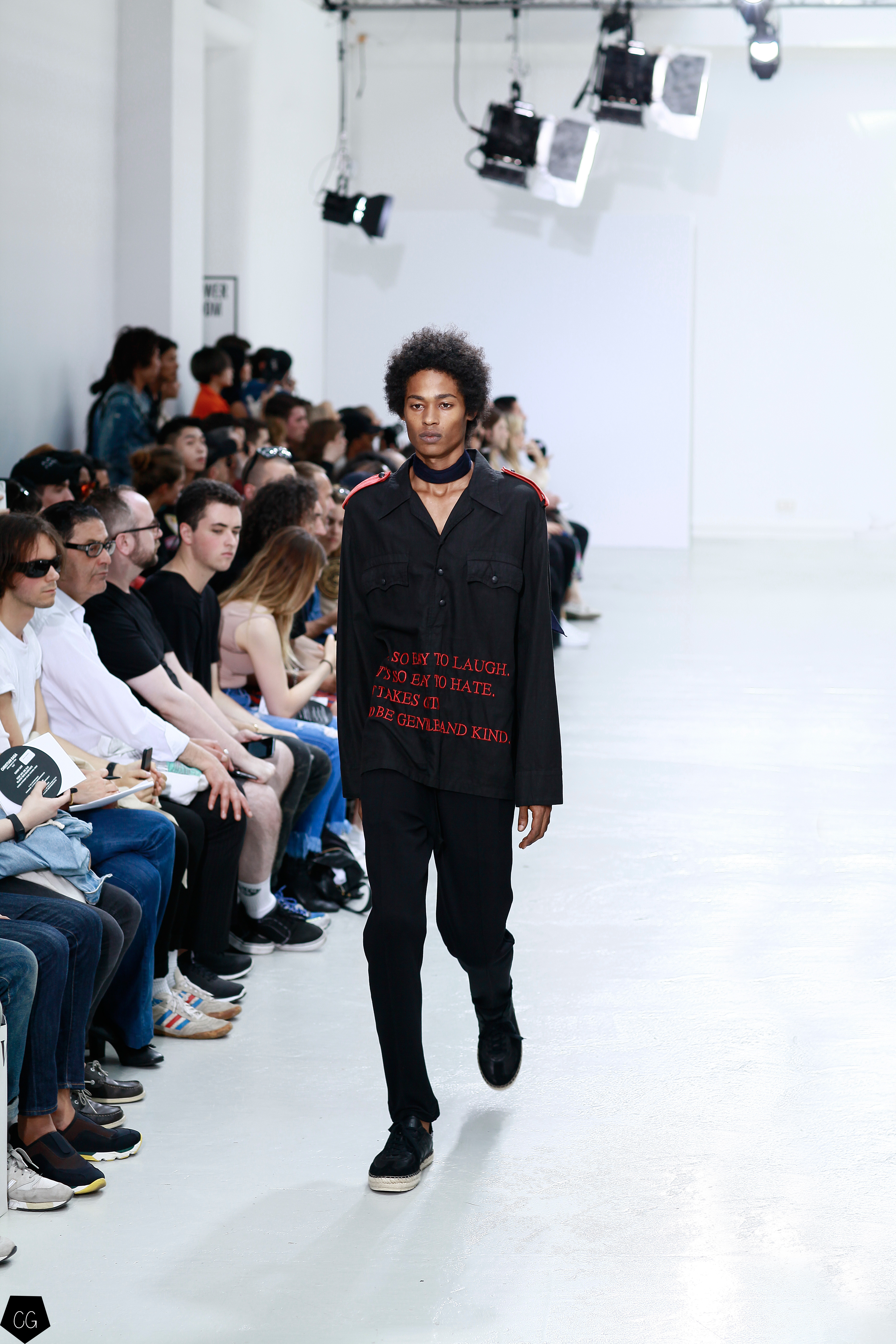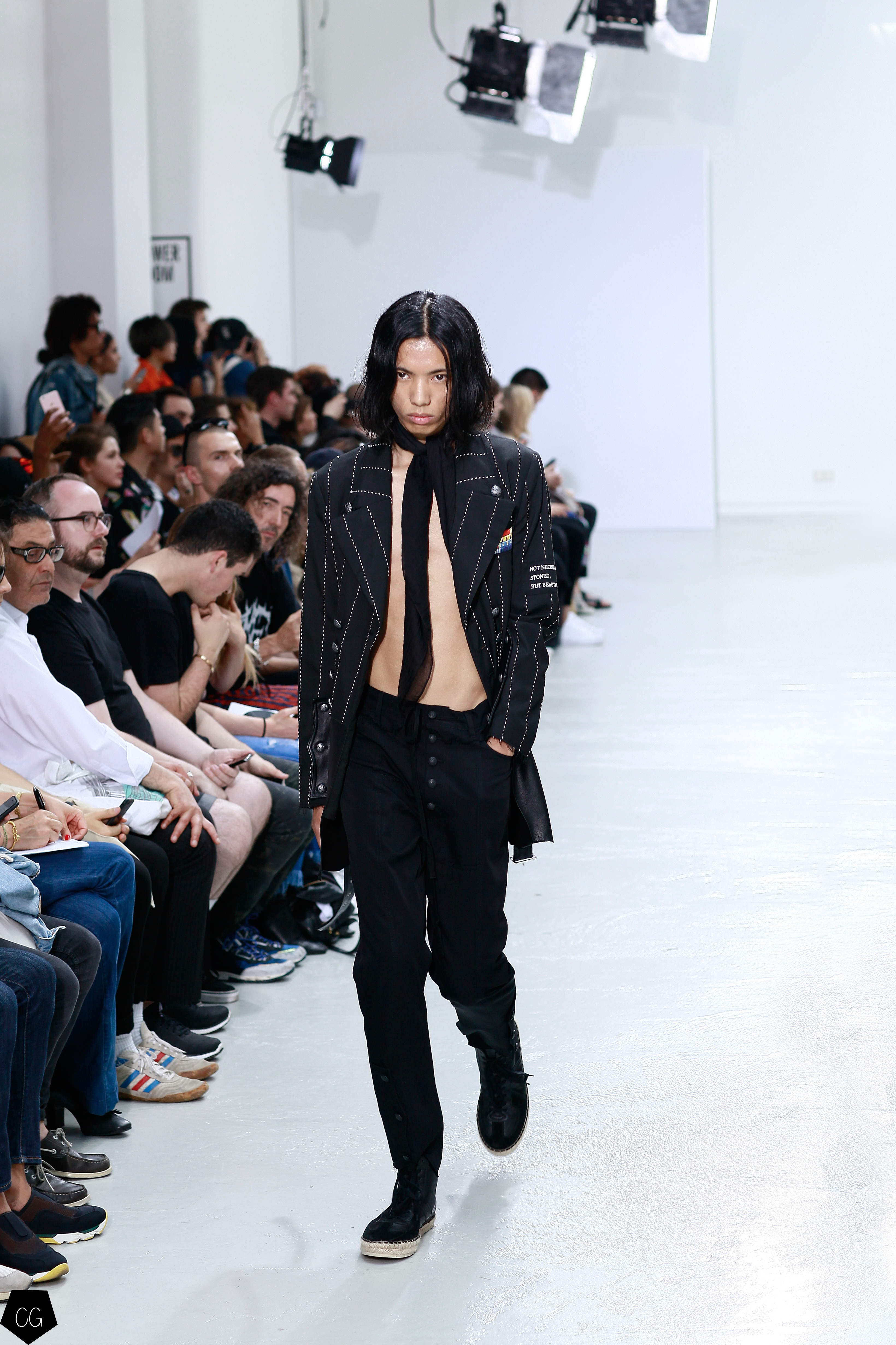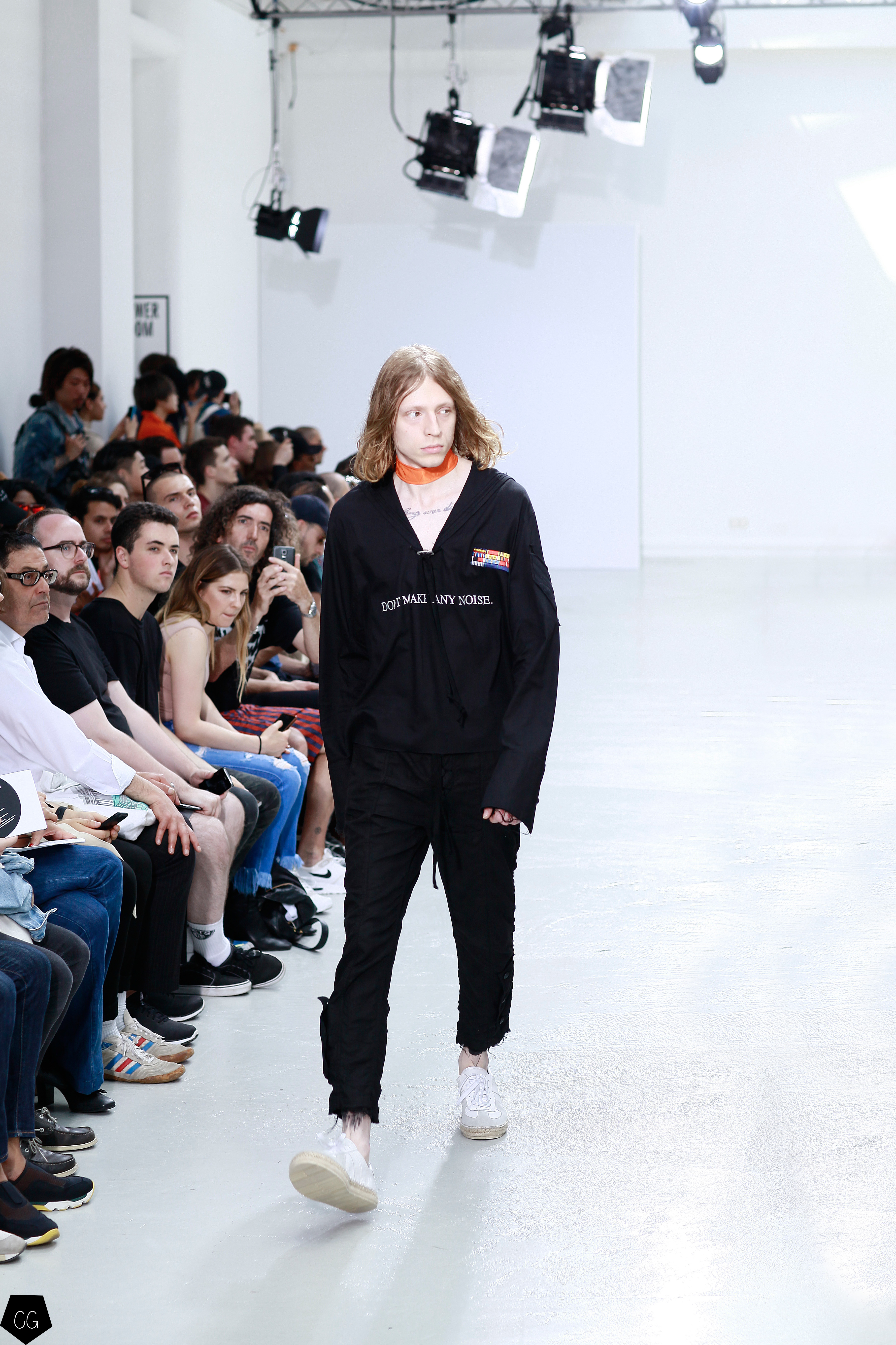 Masanori Morikawa, le créateur de Christian Dada propose une collection qui oppose la paix et guerre. Le vestiaire est urbain, mode et rock et reprend le vocabulaire militaire. A cet aspect strict et militaire, le créateur ajoute de la complexité en destructurant, abimant, coupant. Le créateur revendique un hommage à John Lennon et Yoko Ono.
