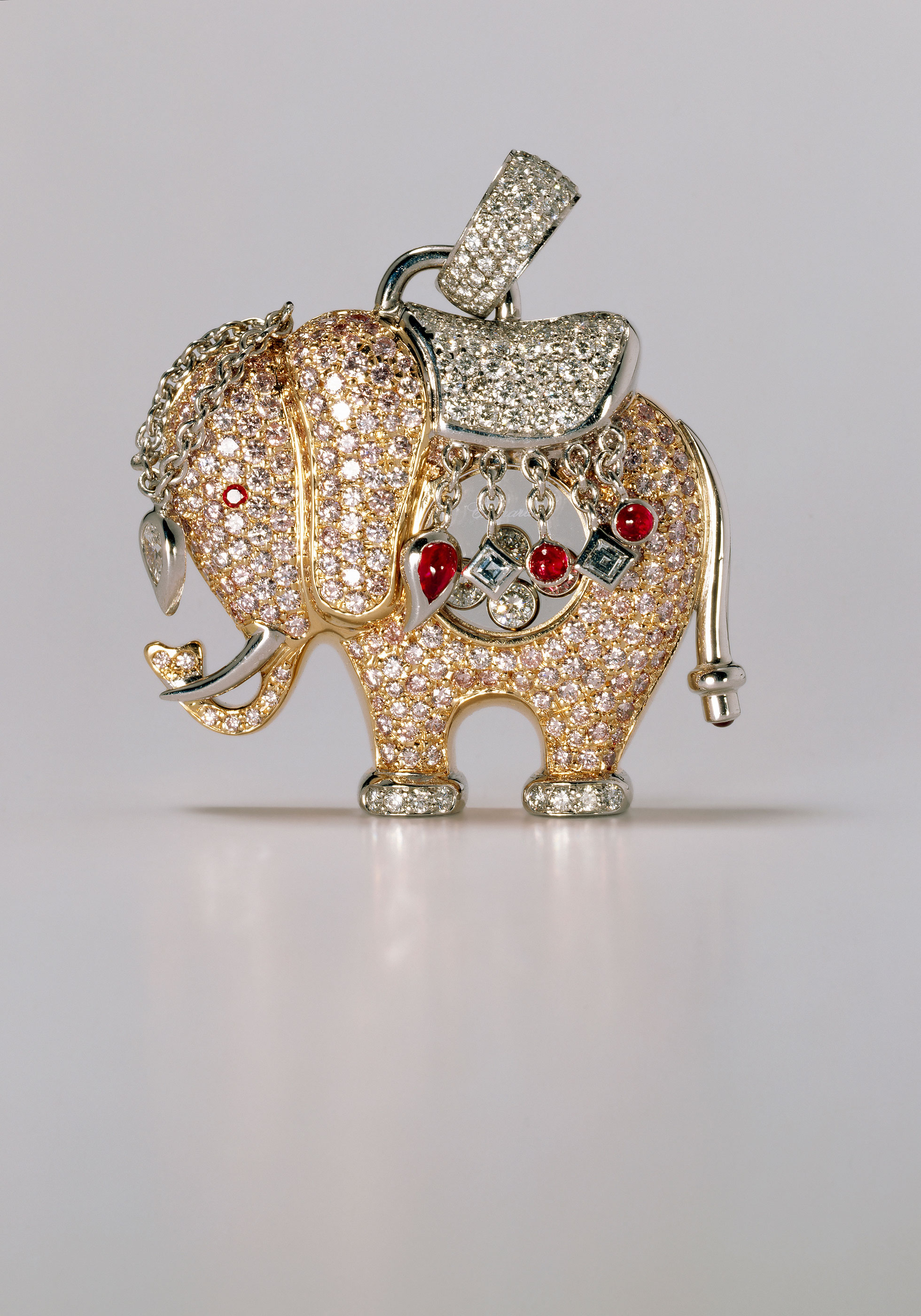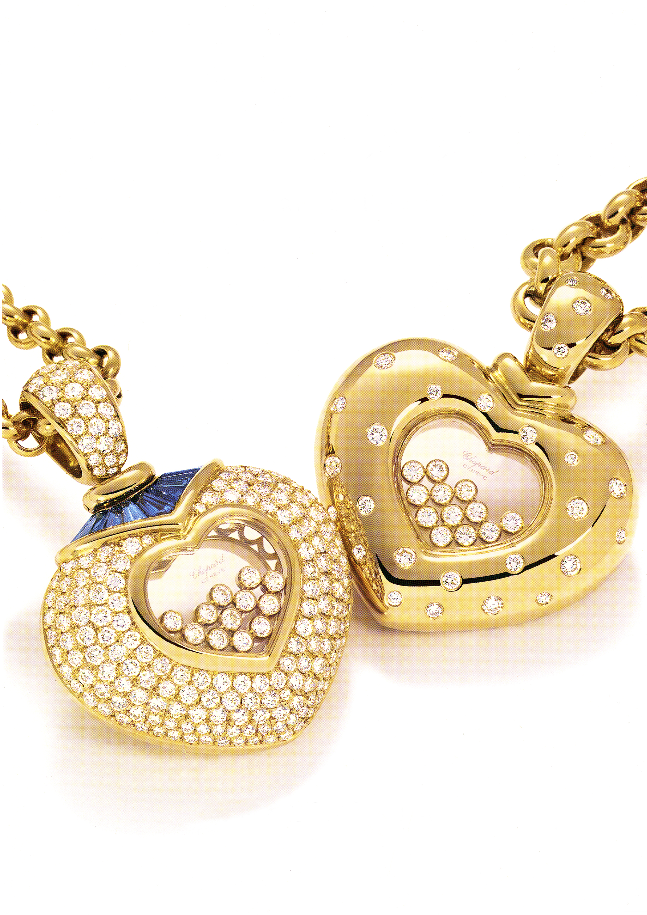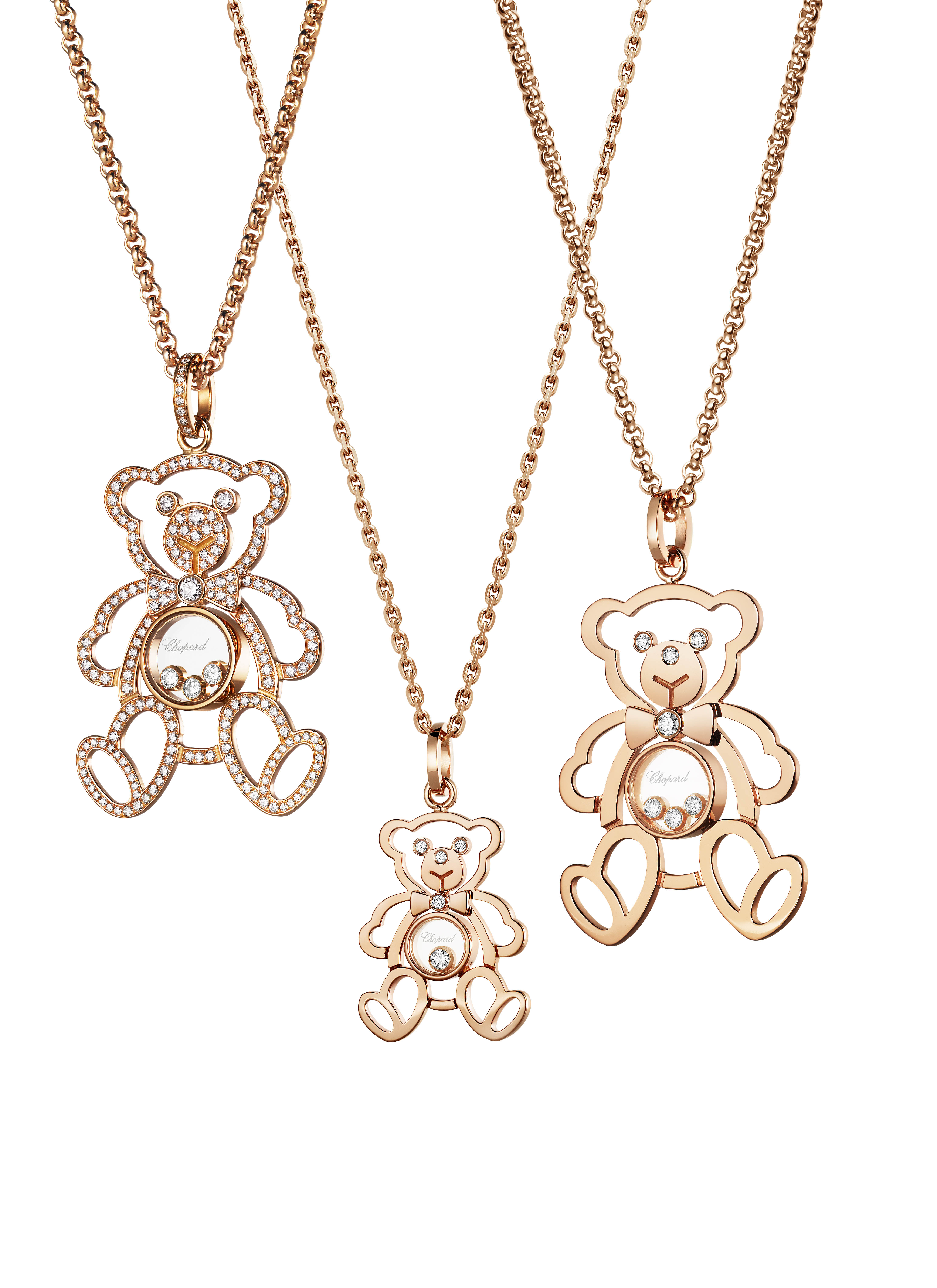 Si les Happy Diamonds font d’abord les beaux jours de l’horlogerie – la toute première pièce réalisée est une montre pour homme – ils offrent très vite un formidable essor à la joaillerie. Tout est né d’un trait d’audace, magnifique, de Caroline Scheufele. Passionnée de cirque, elle laisse vagabonder son imagination et dessine un clown précieux au ventre garni de diamants et de pierres de couleurs mobiles. Le succès de ce bijou, d’abord réalisé en pièce unique pour son utilisation personnelle, lance la ligne de bijoux Happy Diamonds et initie également la joaillerie chez Chopard en 1985. Après le clown suivent d’autres pièces comme l’éléphant, la coccinelle, le teddy bear et bien sûr le cœur, si cher à la Maison.