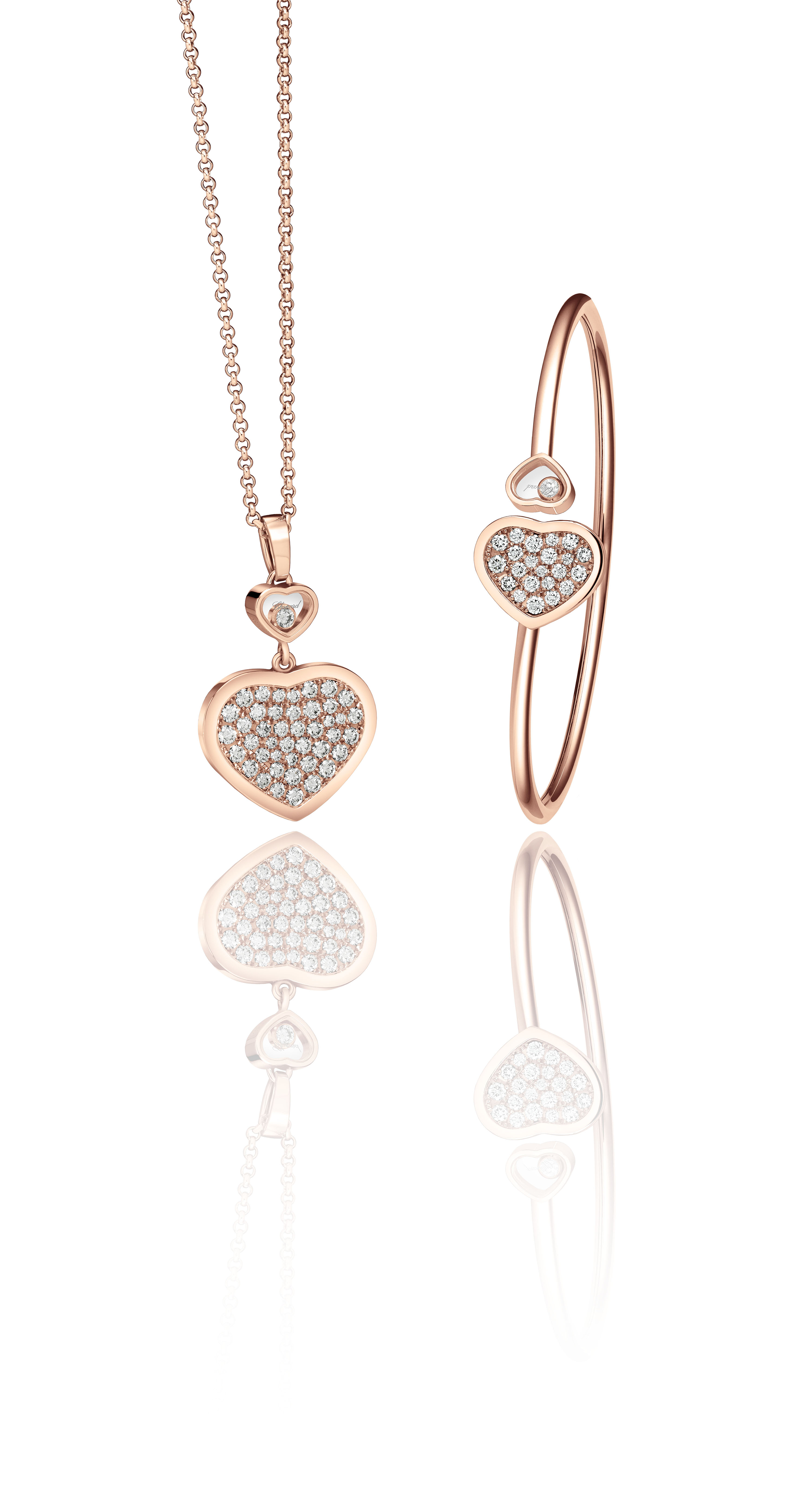 Présentée en 2015, la collection Happy Hearts poursuivait alors la danse sans cesse renouvelée des Happy Diamonds. Elle est l’héritière de deux figures emblématiques de la Maison genevoise : les diamants mobiles et les cœurs. Happy Hearts est très vite devenu une collection à part entière, déclinée en sautoirs, bracelets et boucles d’oreilles. Associée à de précieuses matières, la couleur y a aussi trouvé une place de choix : des cœurs en turquoise, onyx ou nacre côtoient d’autres cœurs renfermant des diamants mobiles ou des cœurs ajourés.