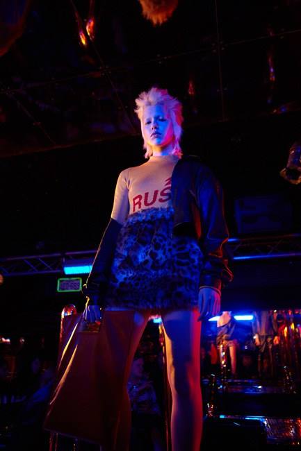 Ferrari Concept a présenté sa première collection dans un lieu décalé American Dream Strip Club. Après quelques strip teases de plus ou moins bon gout, des mannequins très 80’s envahissent la salle.