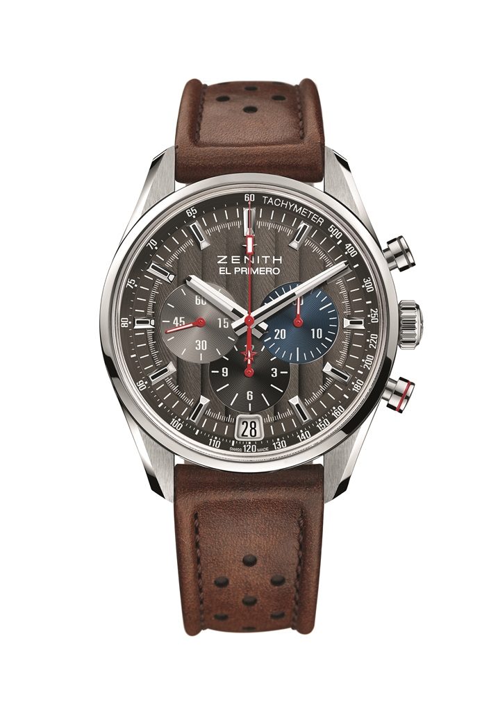 Performant et d’une précision sans pareil, le mythique chronographe El Primero de Zenith est l’emblème d’une mécanique de haut vol au raffinement inaltérable. Dédié aux amoureux de bolides élégants, le modèle El Primero 36’000 VpH Classic Car est proposé dans un boîtier en acier brossé de 42 mm de diamètre, surmonté d’une couronne cannelée et de deux poussoirs ronds. Son visage exprime puissance et distinction, sur un cadran anthracite paré d’une finition « moteur » et rythmé par trois compteurs aux couleurs originelles – anthracite, bleu et gris clair. Rehaussé d’une échelle tachymétrique, cet affichage iconique est ponctué d’une fine trotteuse rouge et d’index et aiguilles facettés luminescents.