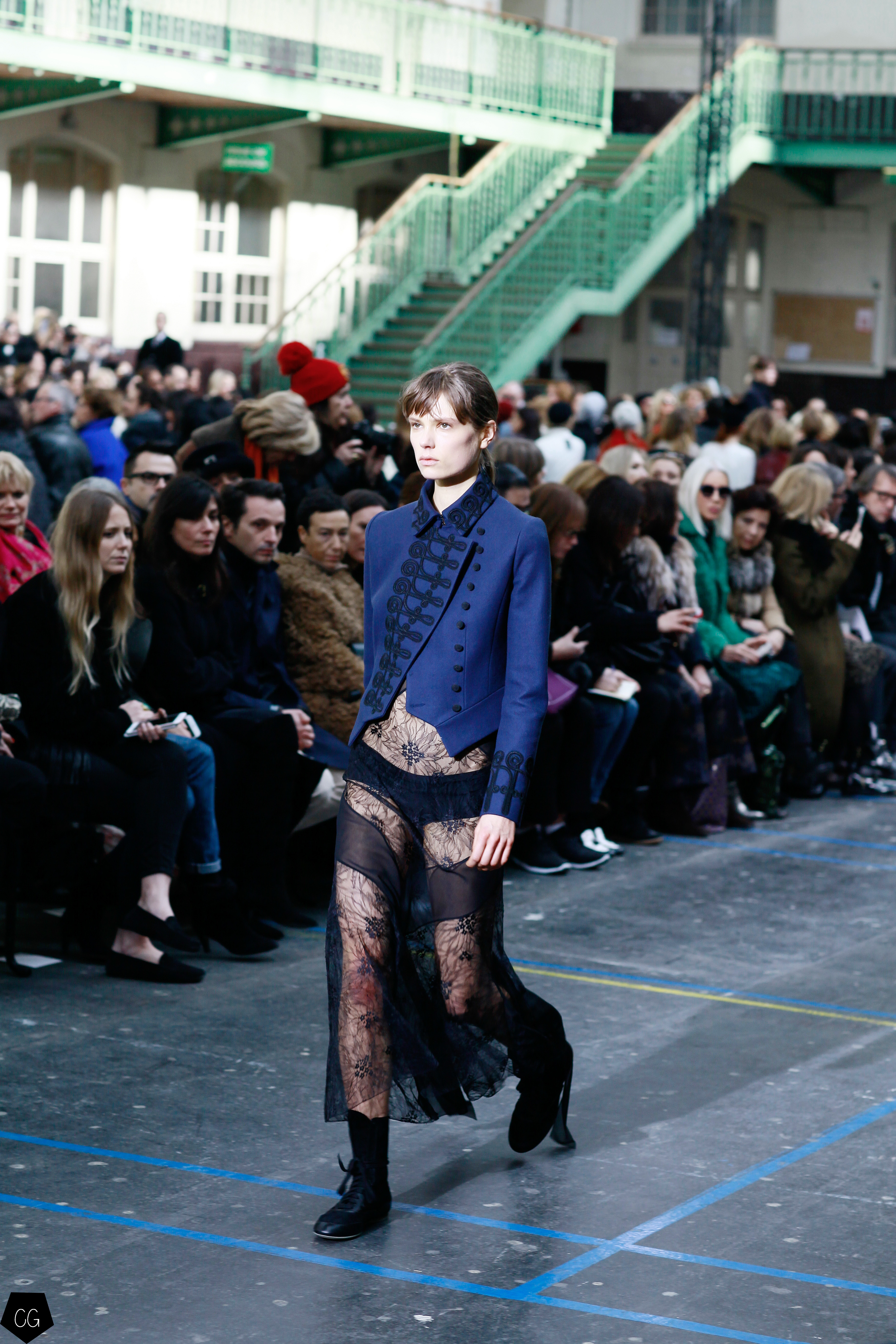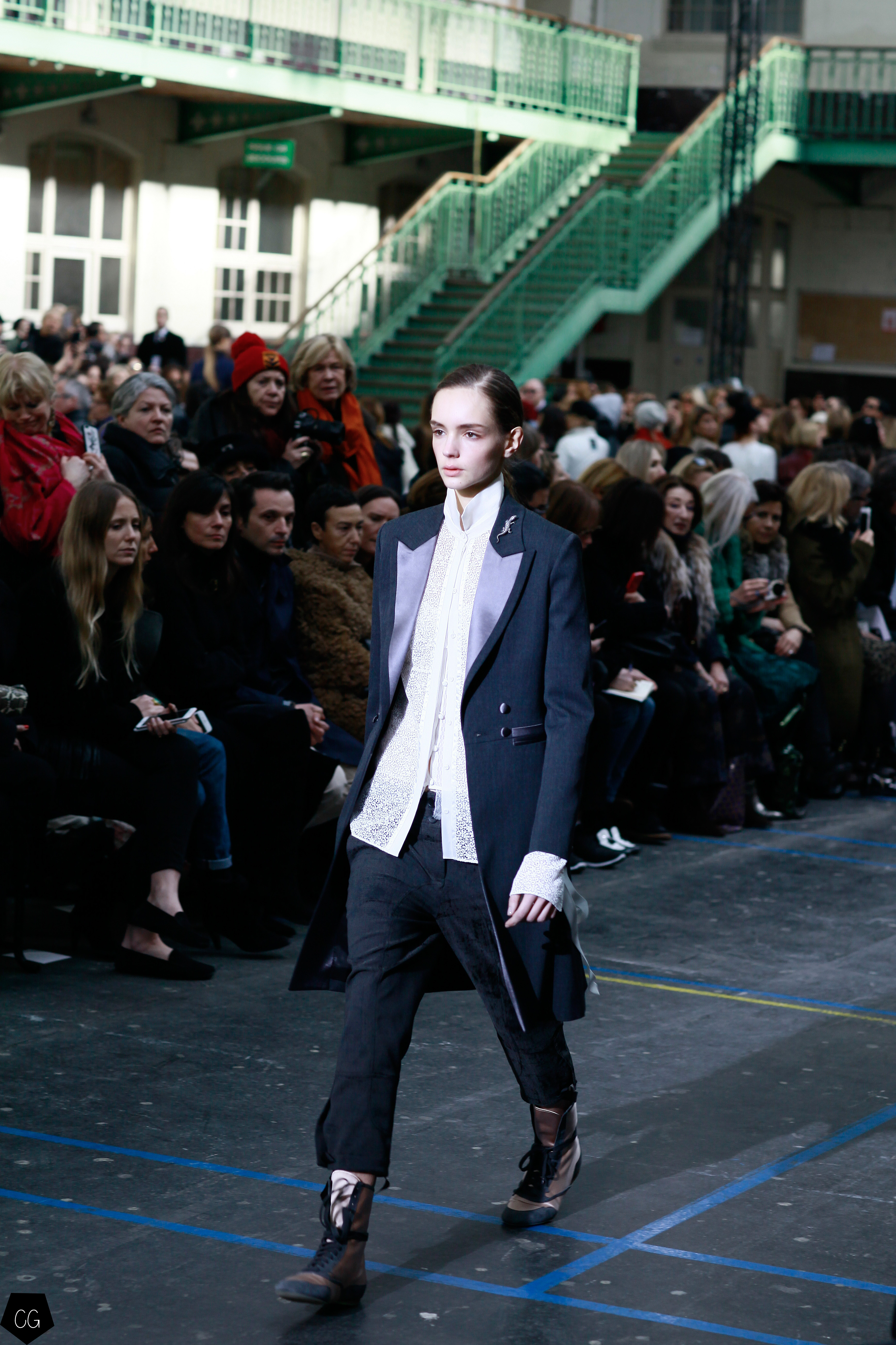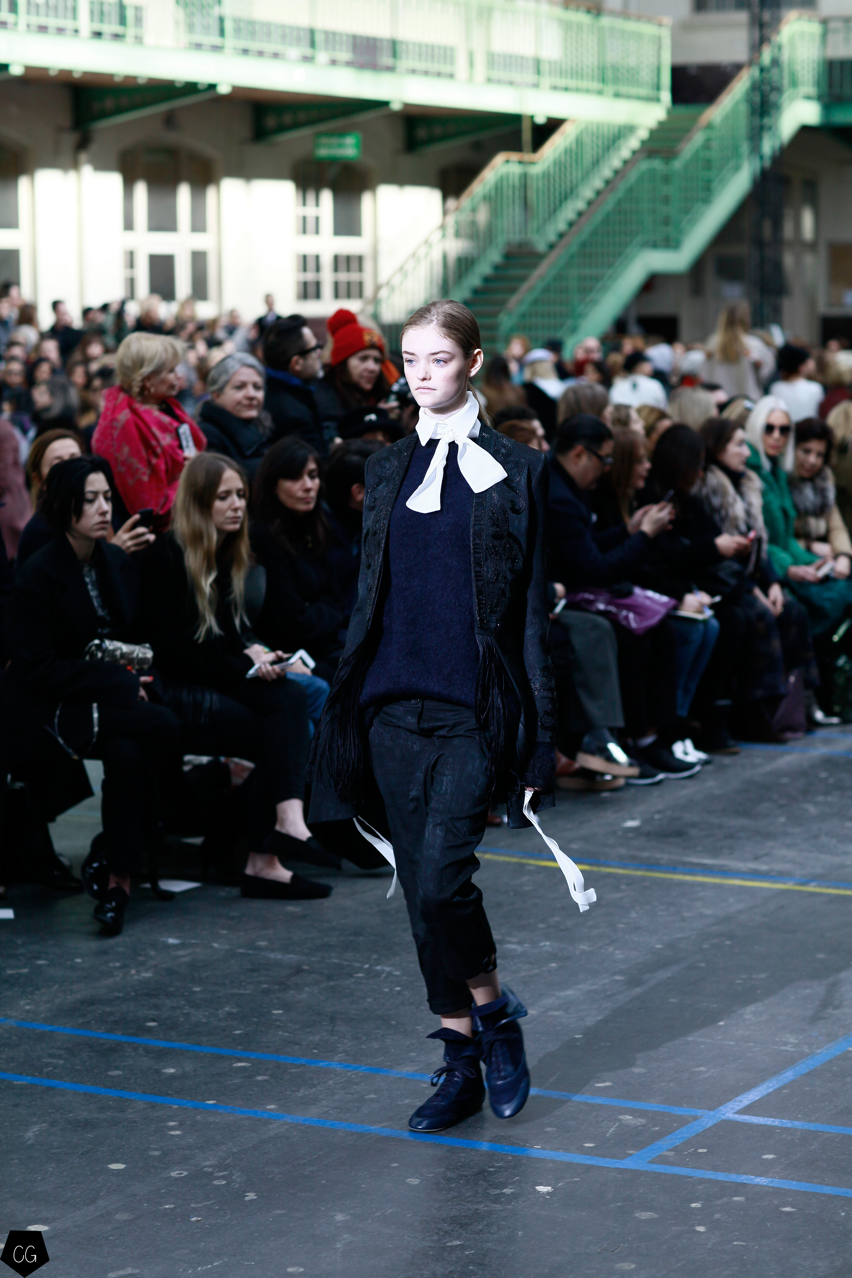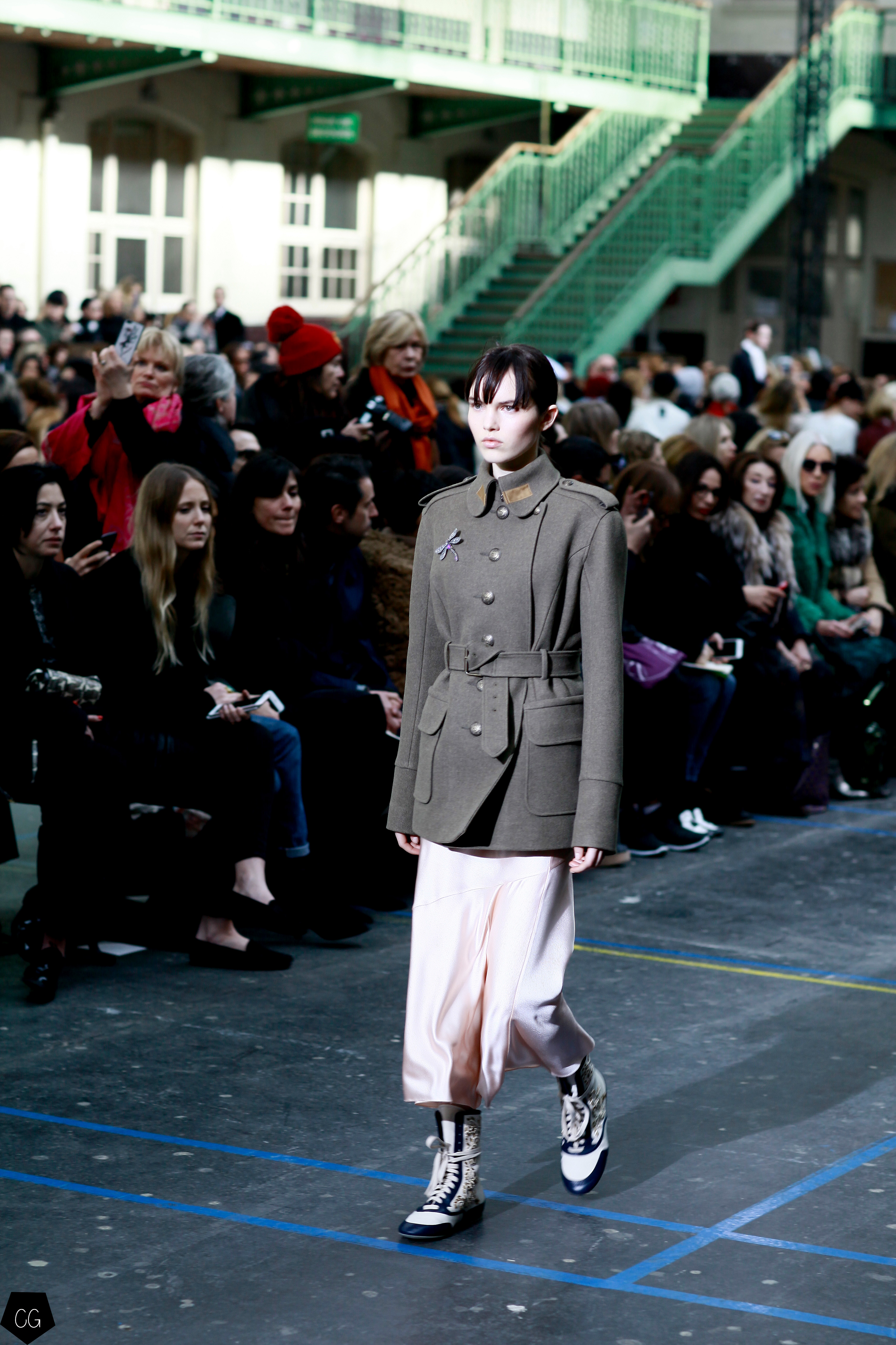 Bill Gaytten a présenté une collection automne hiver rebelle et forte. C’est dans le cadre du Lycée Carnot qu’était présentée la collection John Galliano, une collection largement inspiré du style militaire donnant la part belle aux manteaux, redingotes, au kaki et bleu marine.
