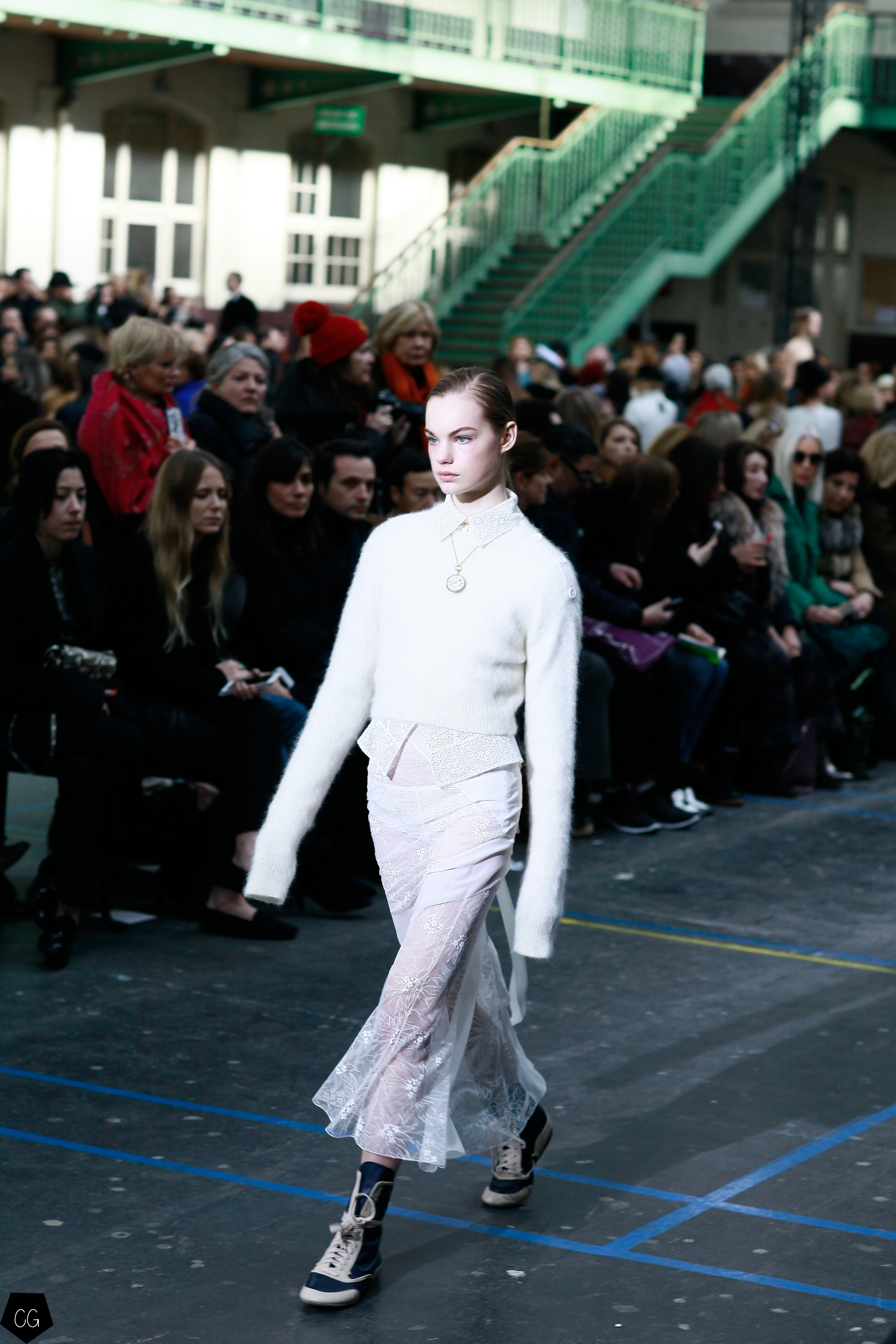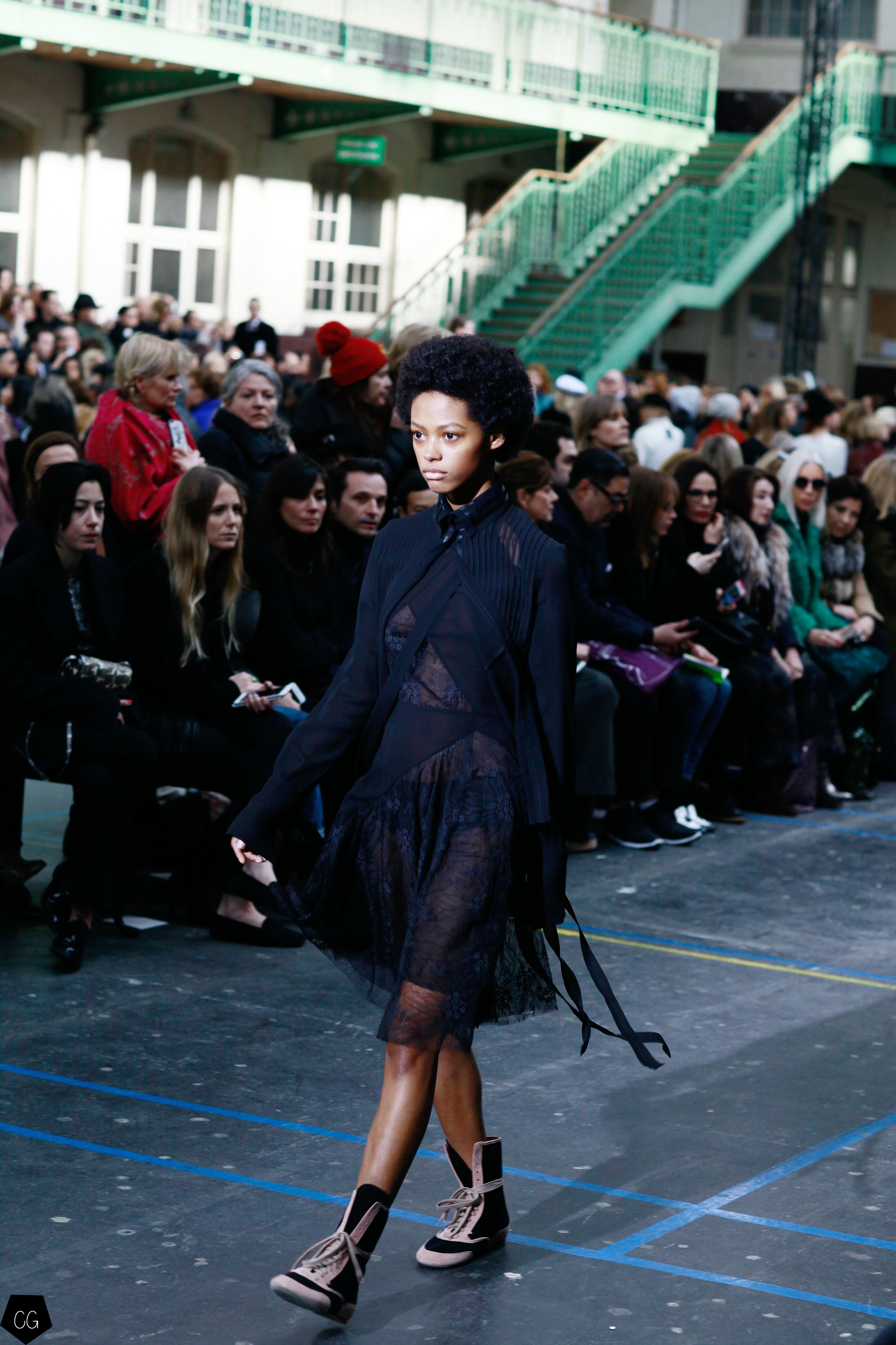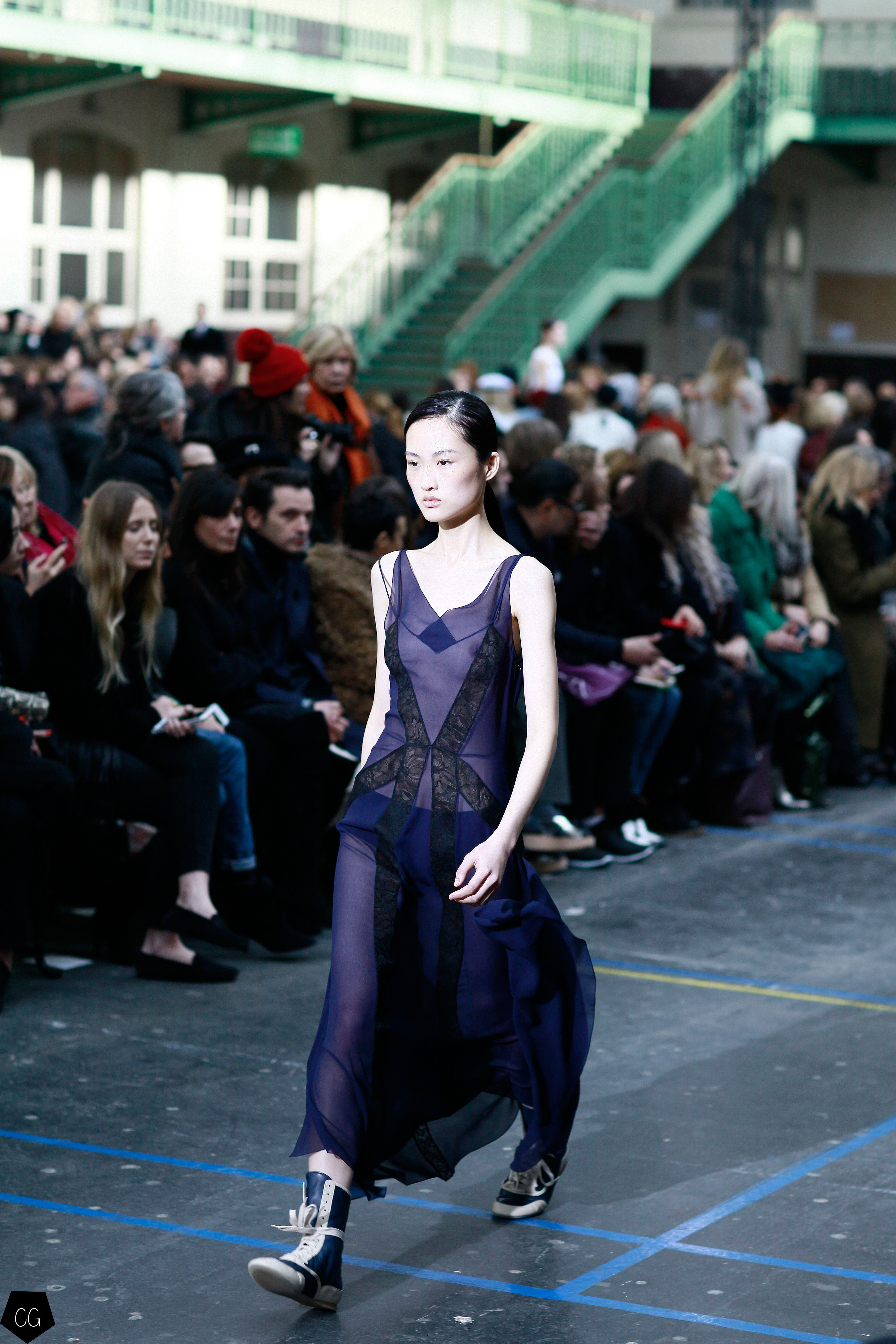 Bien sûr la transparence allait casser cette apparence guerrière et féminiser tout ça. Une collection masculin féminin, jouant des transparences et des codes. Rebelle et guerrière !