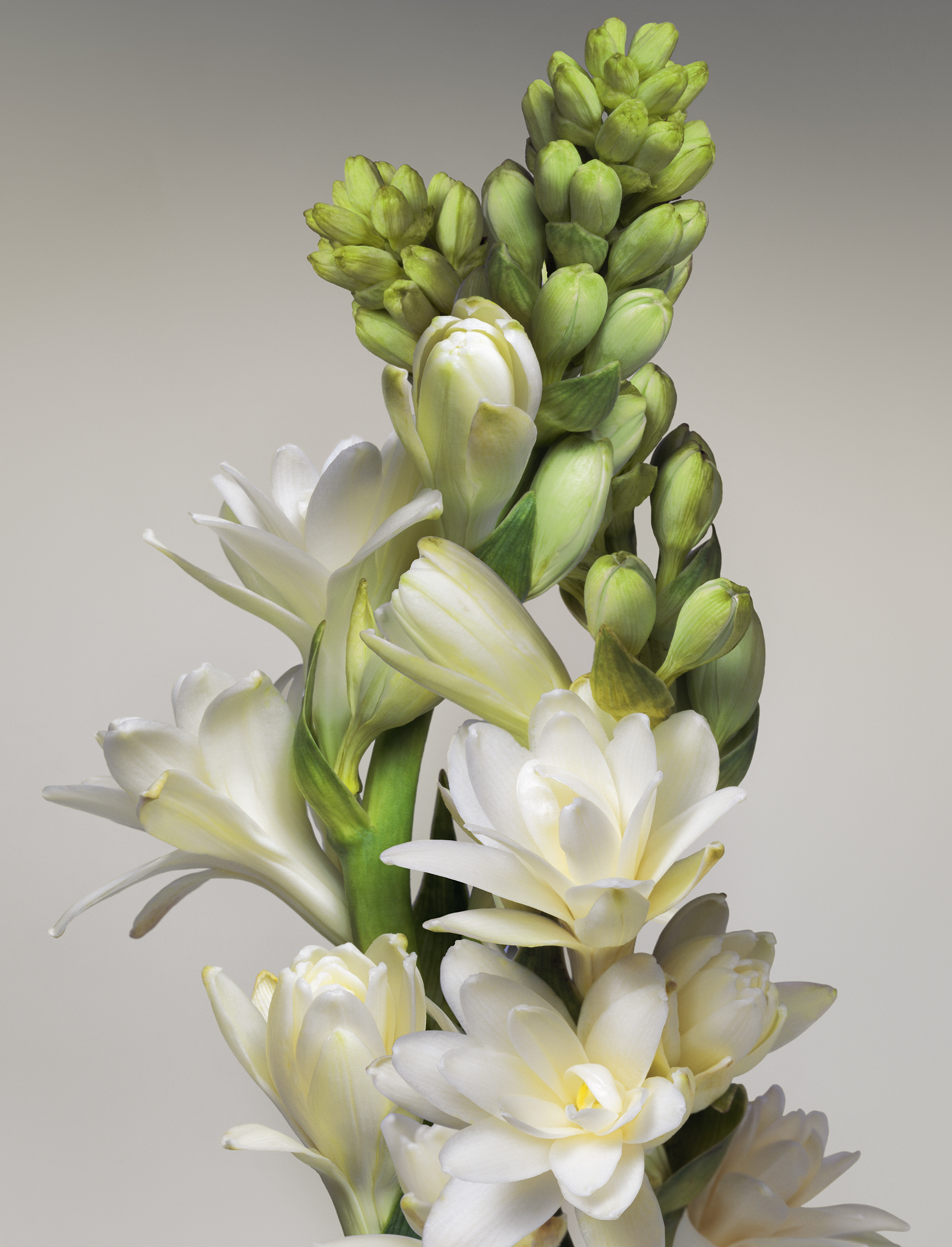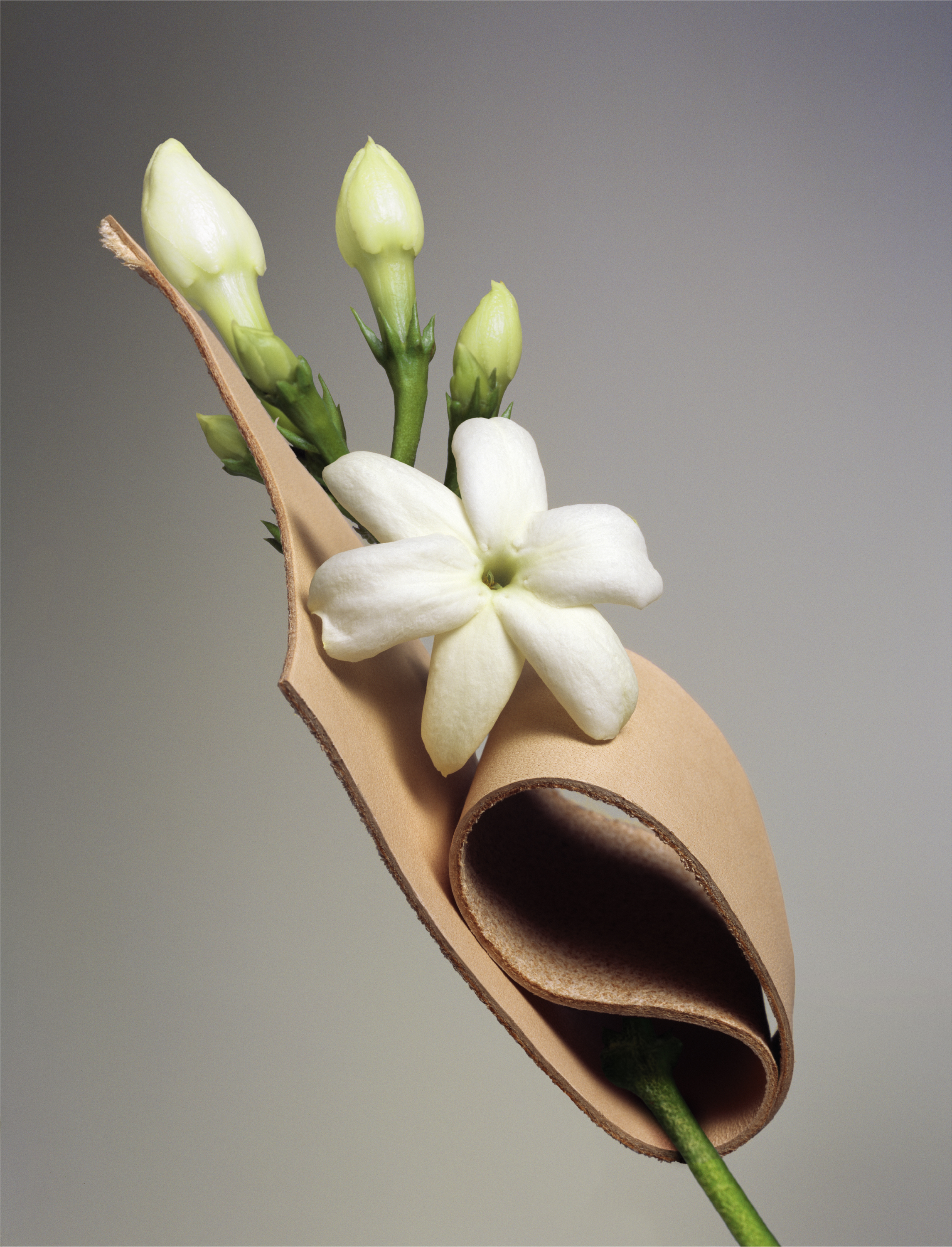 Tubéreuse bien sûr mais aussi jasmin grandiflorum de Grasse, absolu jasmin sambac de Chine qu’on cultive pour parfumer les thés les plus précieux, magnolia de Chine, rose de mai ainsi qu’une légère touche de cuir pour son caractère animal.