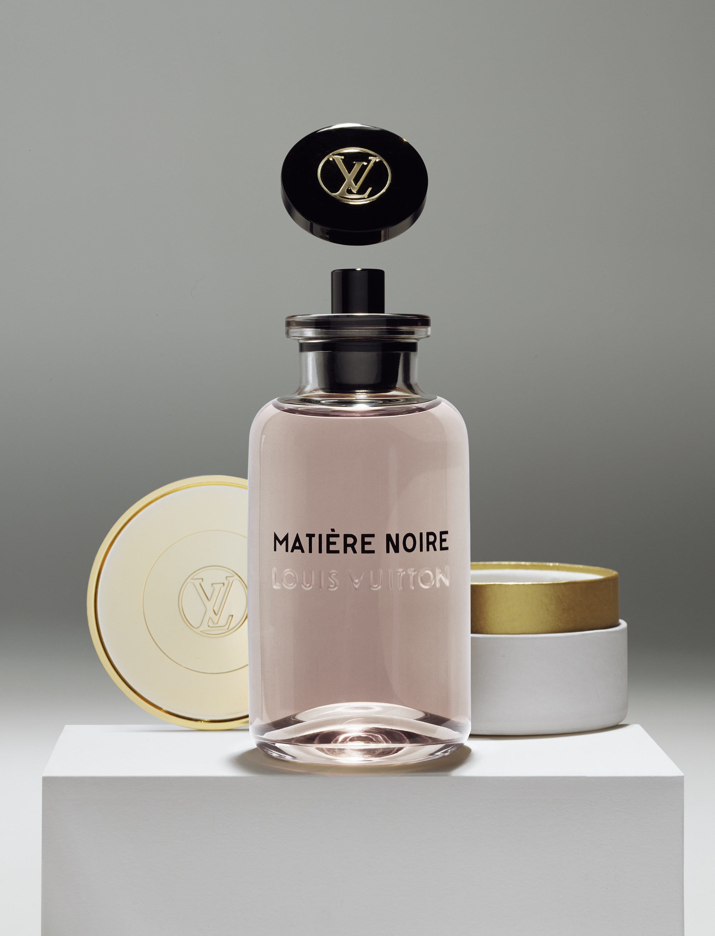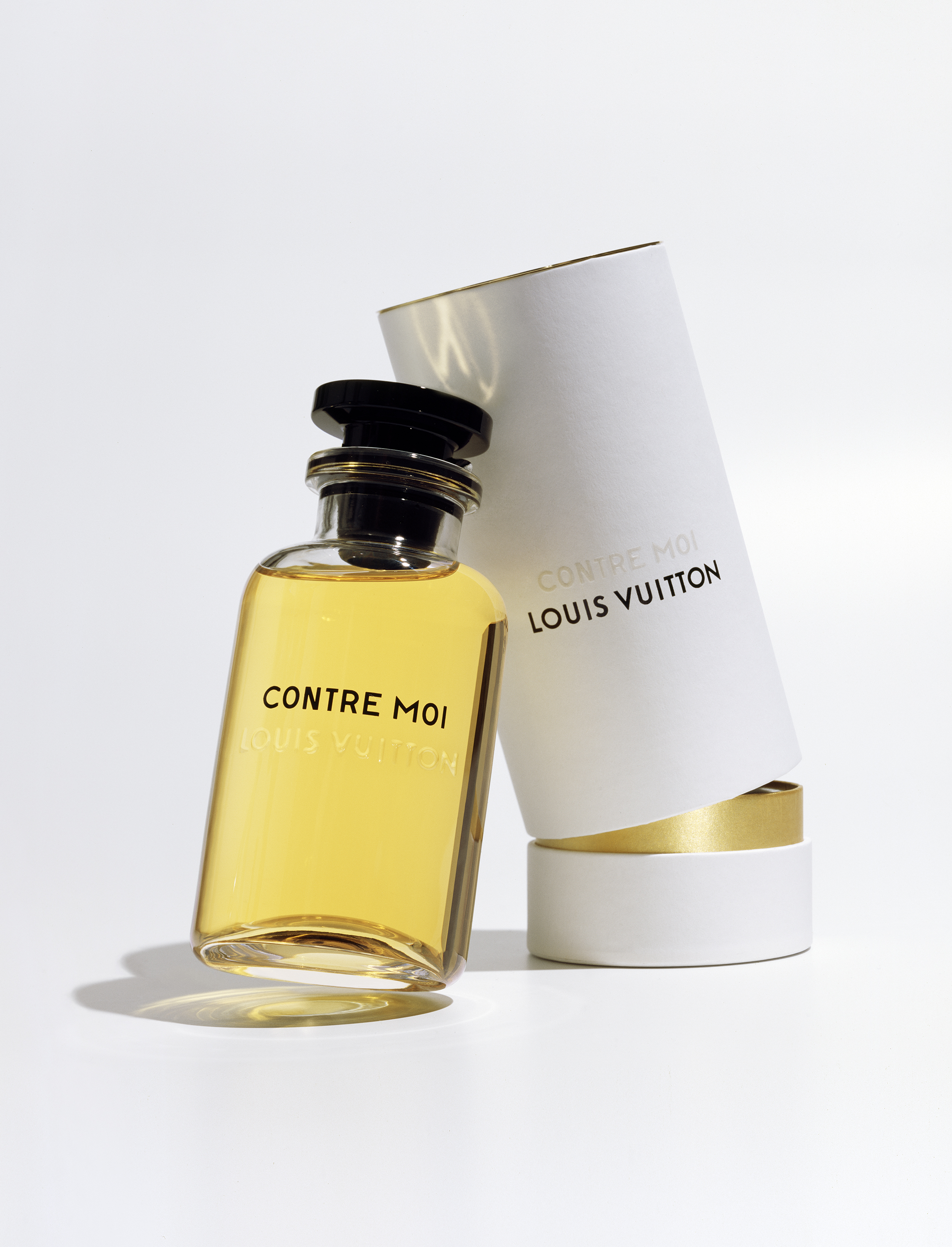 Quant à l’écrin de papier blanc et or, il reprend la silhouette légendaire et cylindrique de Je, tu, il un parfum Louis Vuitton lancé en 1928, disparu depuis.