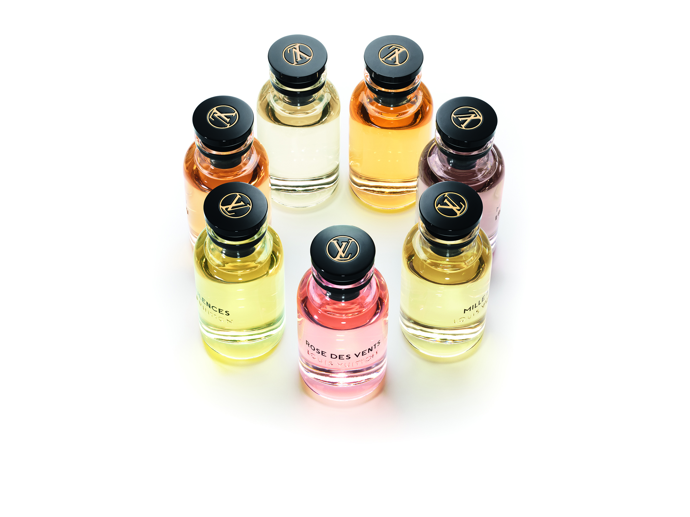 Chacun des sept parfums Louis Vuitton est décliné en : 200ml, 100ml, flacon de voyage avec ses quatre cartouches de 7.5ml et un coffret de 7 miniatures de10ml.