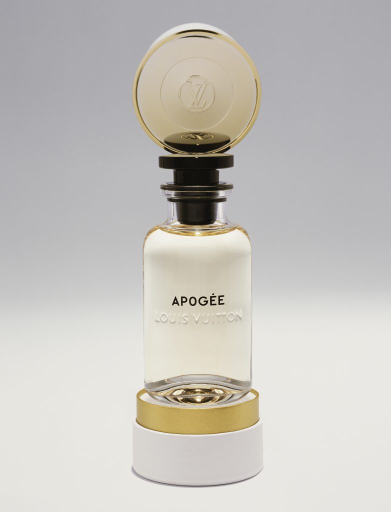 Sur la colonne vertébrale de ce cuir délicat viennent se greffer des accents d’abricot presque confit, de jasmin grassois extrait au CO2 — une exclusivité de la Maison Louis Vuitton — et de jasmin sambac de Chine.