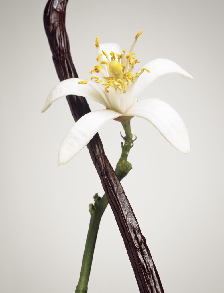 L’infusion de Madagascar. Son absolu animal, presque cuiré. La vanille tahitensis si précieuse également. À la gousse noire et charnue, il préfère s’inspirer de l’orchidée.