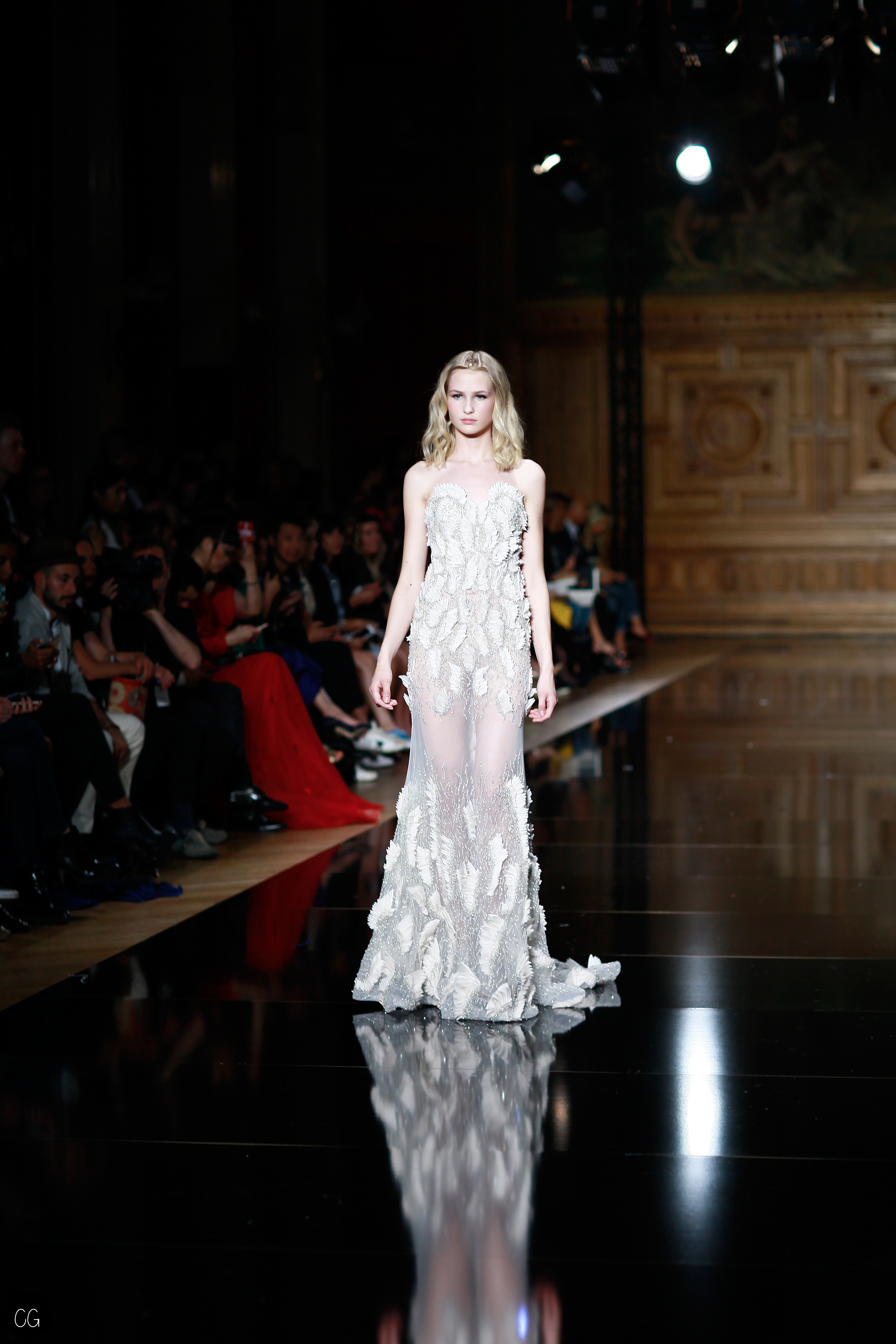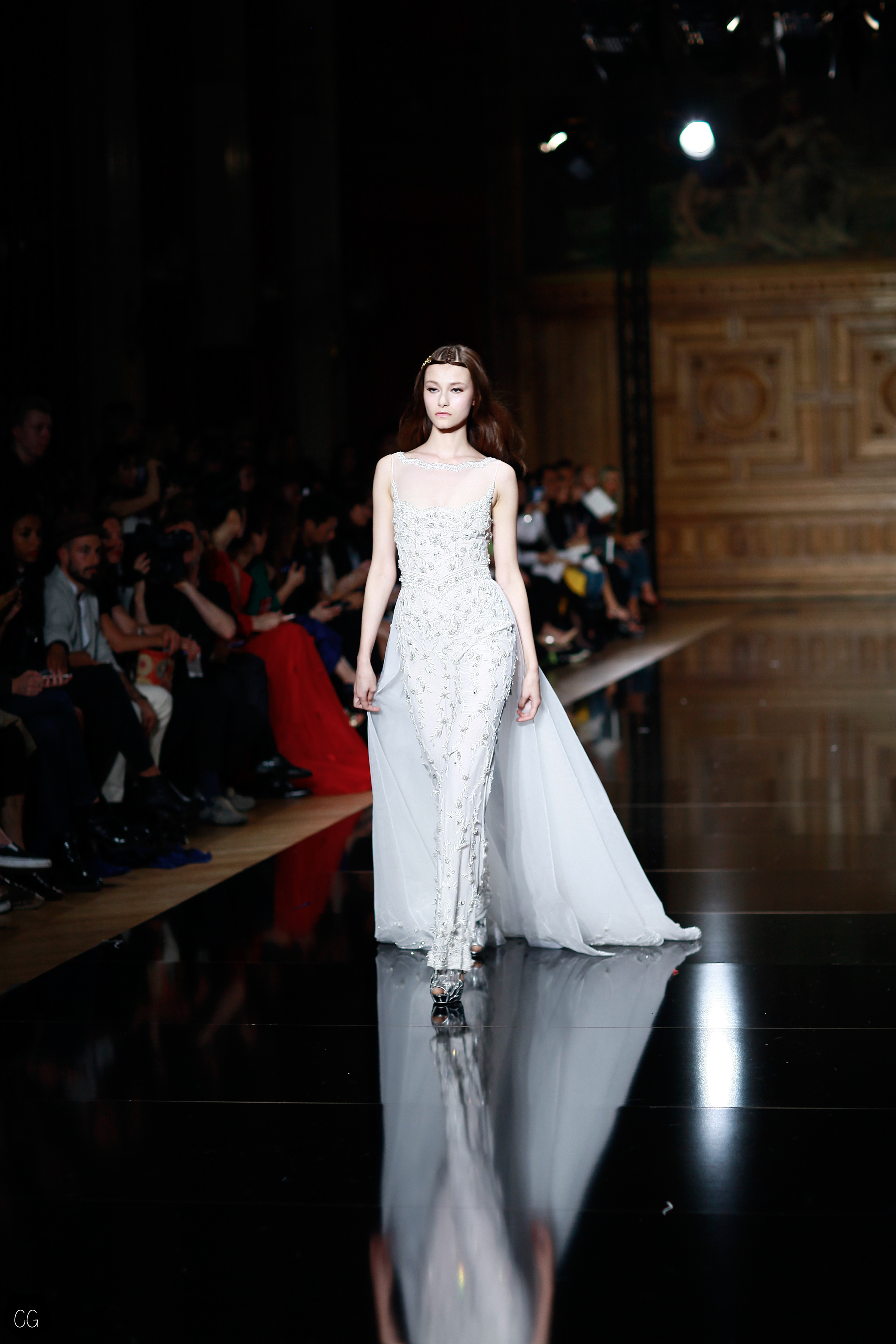 Inspirée de la nature et des minéraux, on découvre des magnifiques tenues aux tons froids. On mélange les matières entre organza cloqué, tulle et jacquard. Les broderies délicates subliment les robes rappelant la délicatesse du crystal. On joue sur la transparence pour sublimer le glamour.