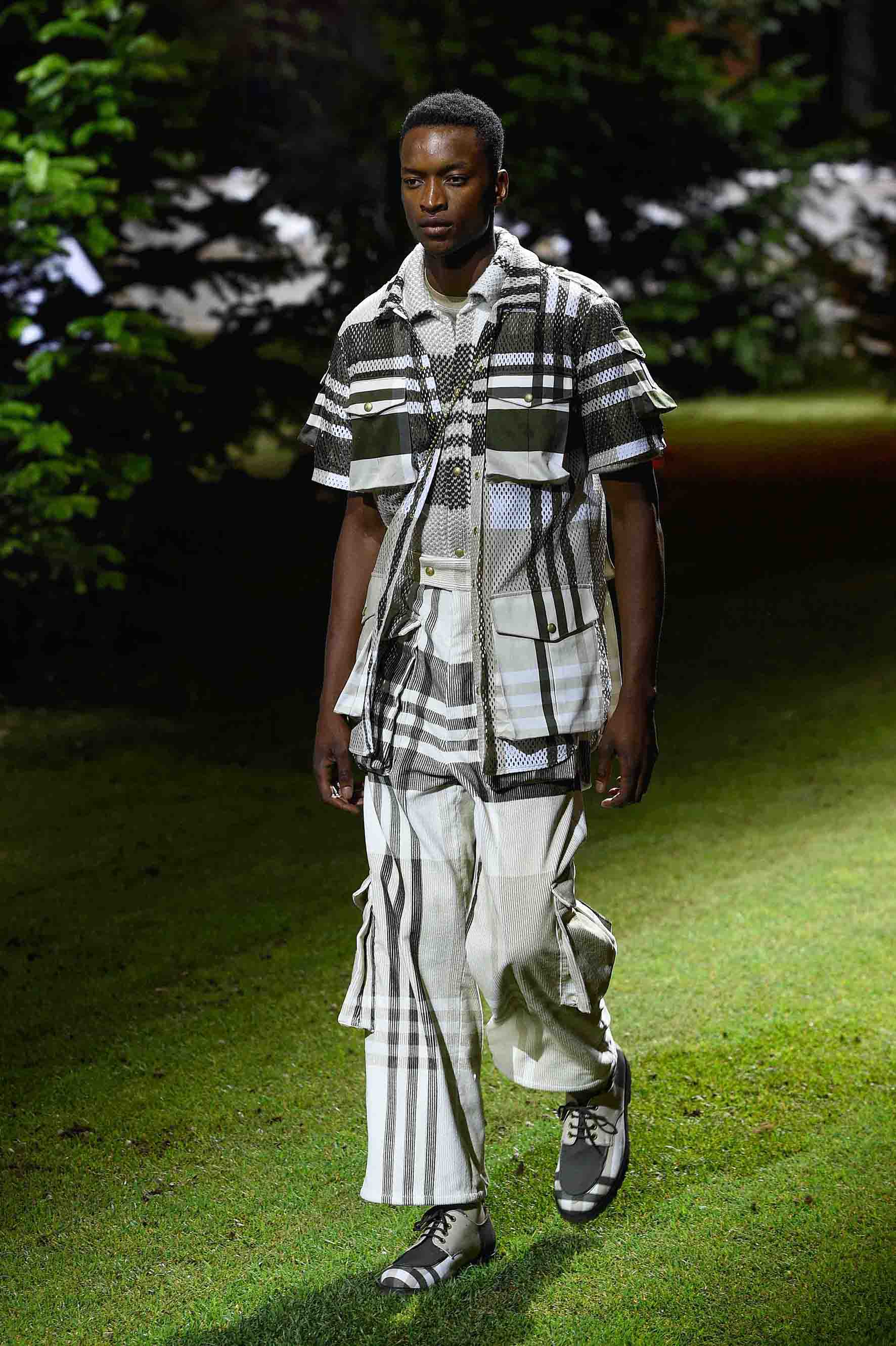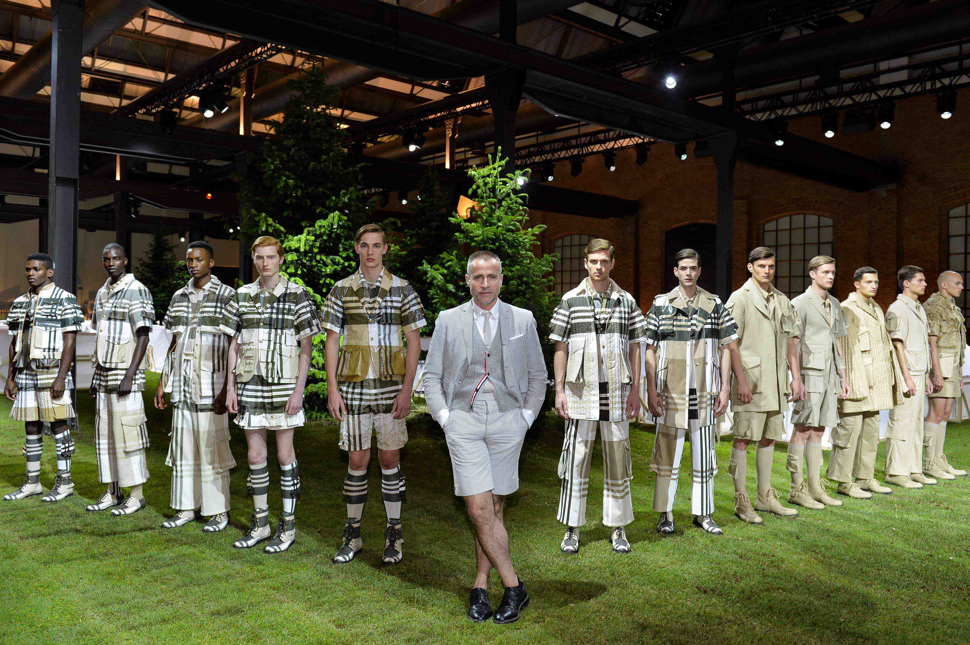 Le concept de cette collection printemps-été 2017 est vaguement basé sur les scouts américains et le camping. Les uniformes inspirés des scouts est représenté selon trois groupes : total look kaki, kaki/blanc/vert forêt pour le groupe de contrôle et vert/brun pour le groupe formel. Les pièces sur-mesure qui illustrent au mieux la signature de Thom Brown sont les manteaux de sport, les manteaux Chesterfield, les trenchs, les capes, les cardigans, les pantalons et les shorts entièrement faits main avec les tissus techniques Moncler. Les poches plissées de la collection apportent une véritable esthétique utilitaire à ces pièces.