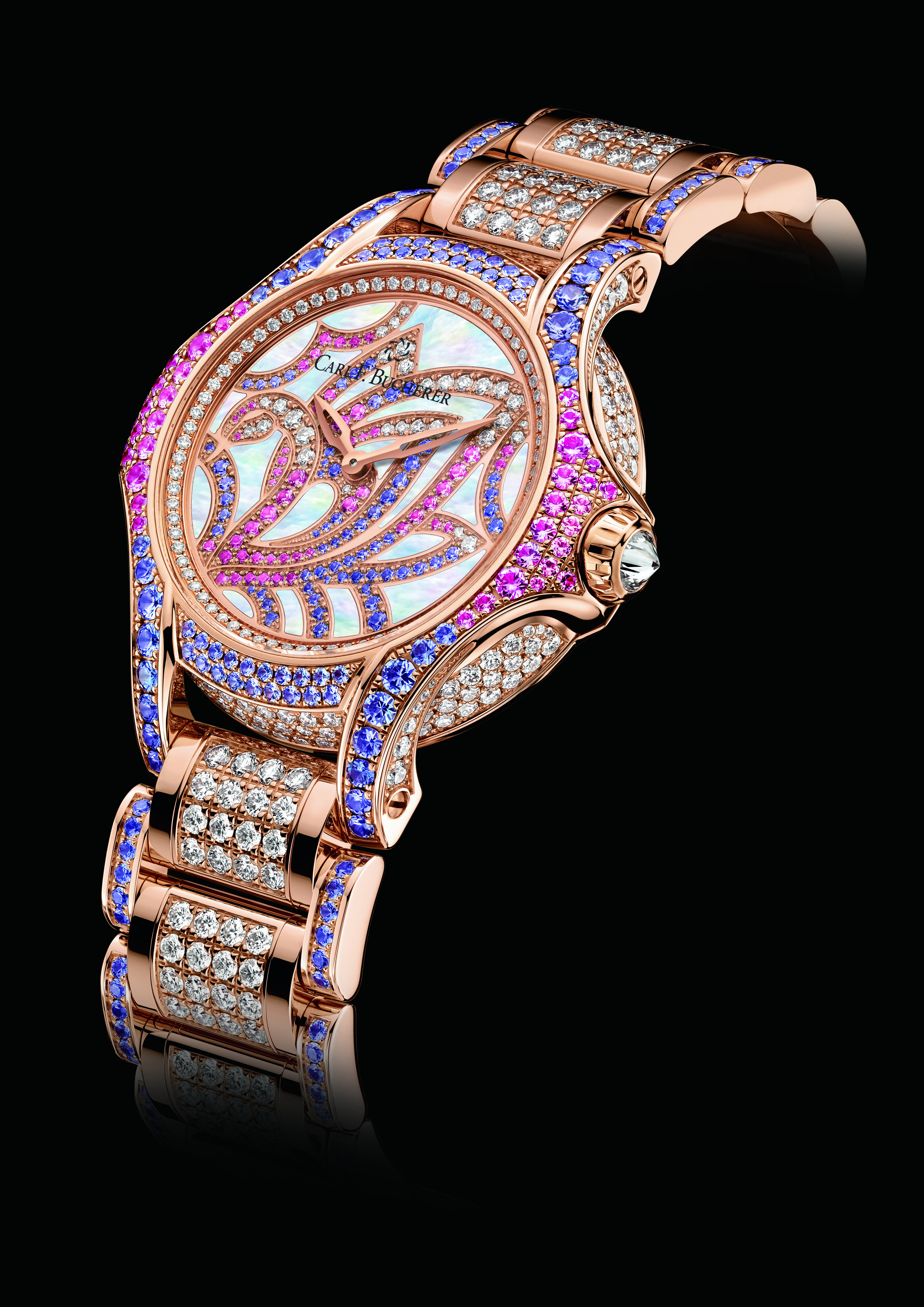 Avec la Swan, Carl F. Bucherer donne naissance à un autre temps fort de la collection Pathos : des pierres précieuses scintillantes serties dans de l’or rose et blanc font de la délicate Pathos Swan une sublime montre-bijou et l’érigent en symbole de la beauté féminine.