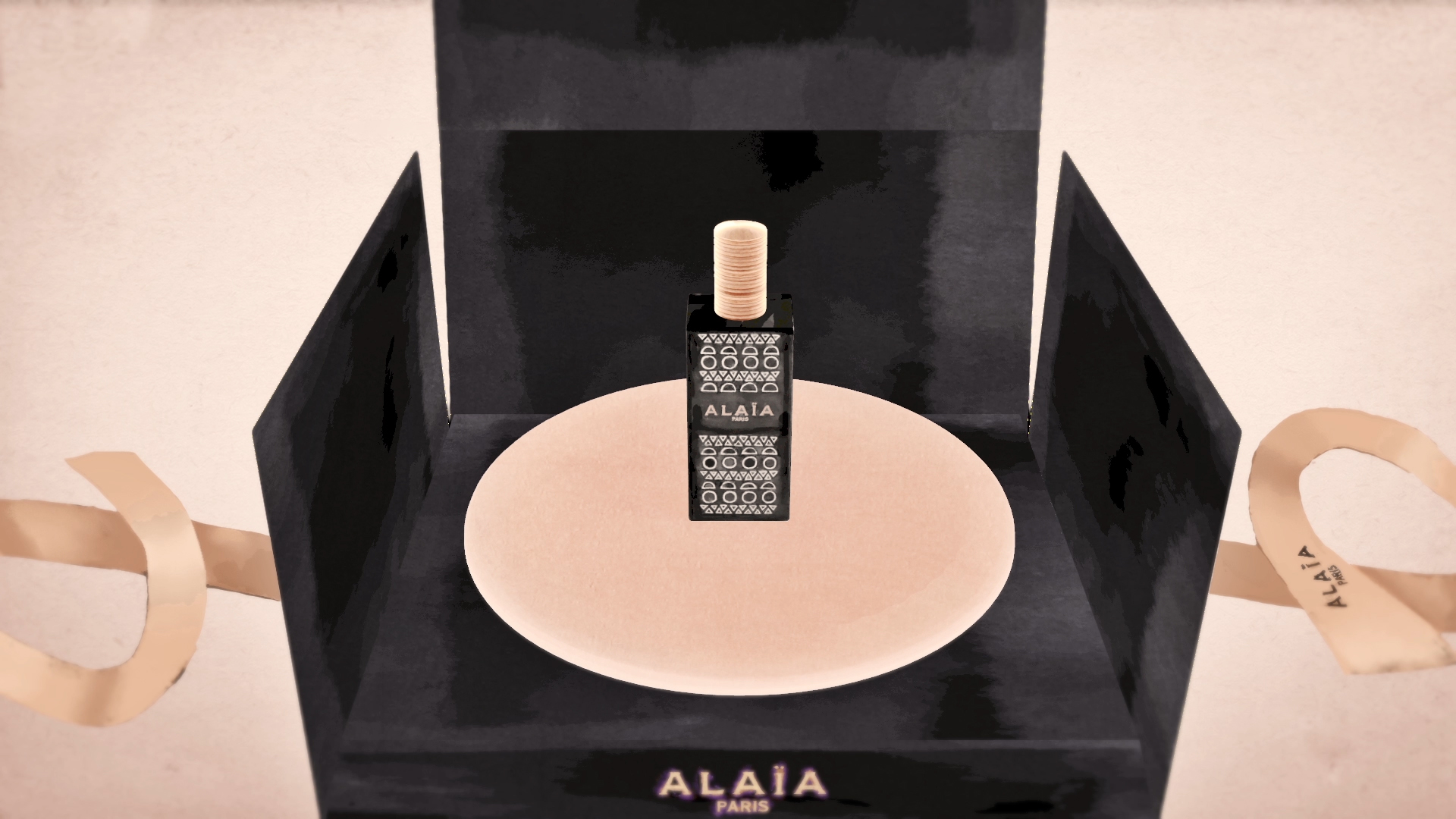 Pour célébrer cet art de la générosité, l’Eau de Parfum ALAÏA PARIS se pare d’un habillage cadeau couture.