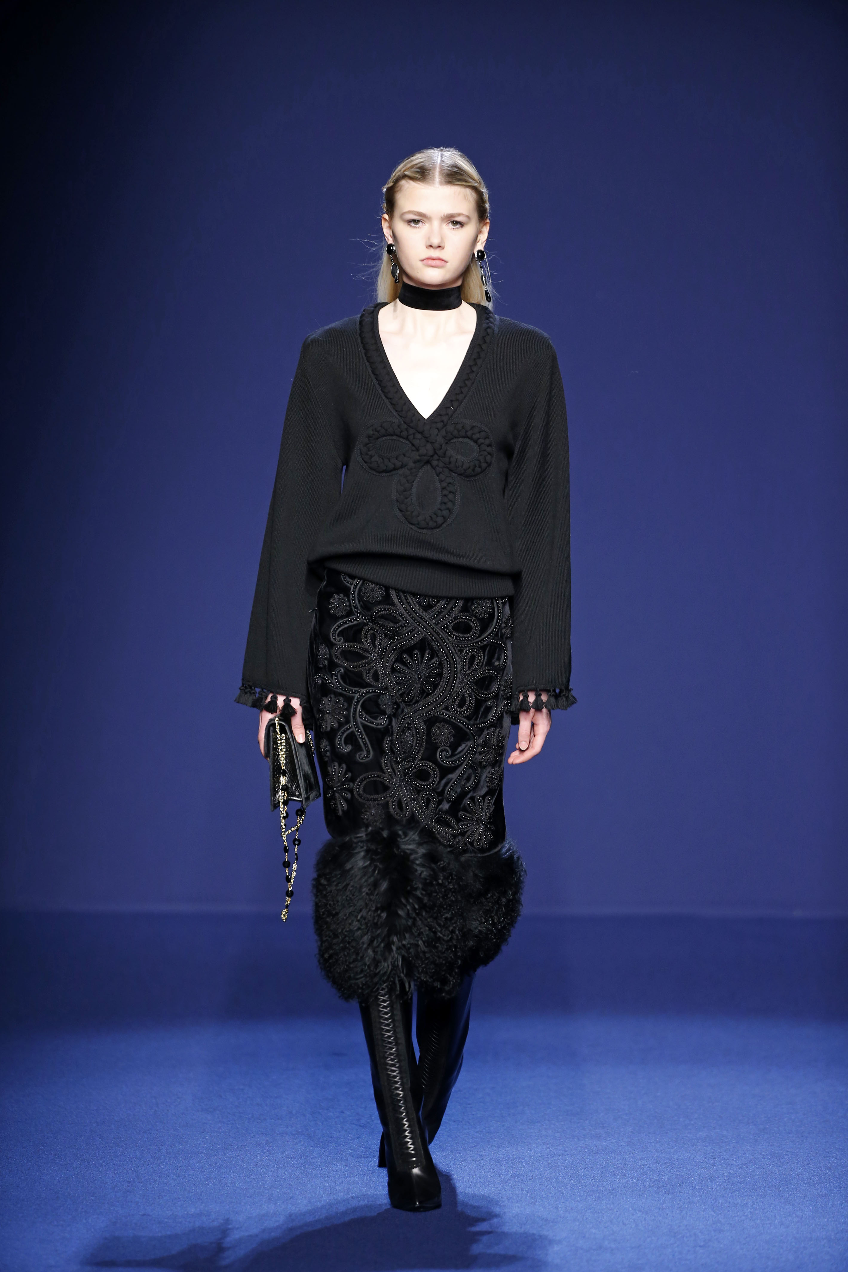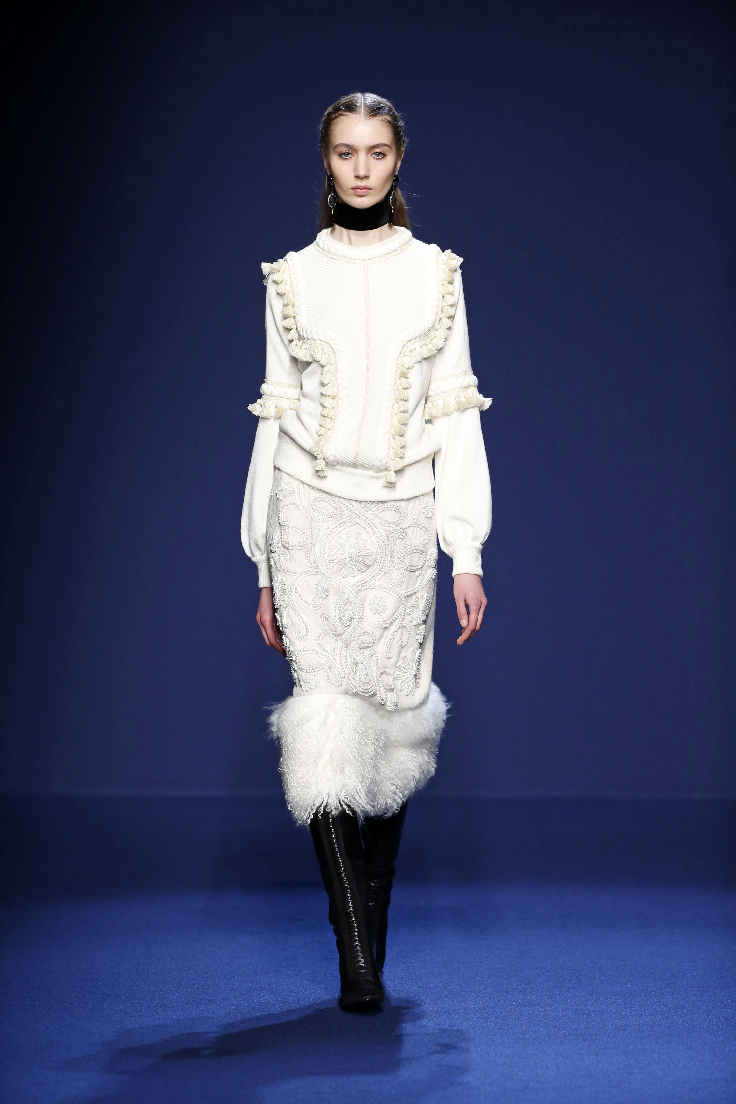 Hommage à l’Empire Russe à son folklore, ses broderies, sa beauté pour Andrew GN. C’est une collection impériale en honneur au Tsar Nicolas II de Russie et ses enfants que nous présente le créateur. Ornés de details militaires, de broderies, les silhouettes modernes tranchent avec le folklore pour irradier de modernité.