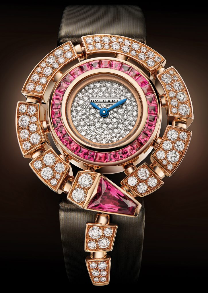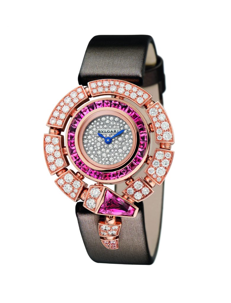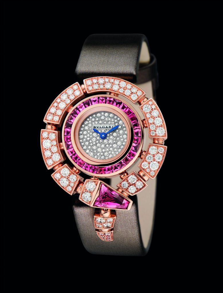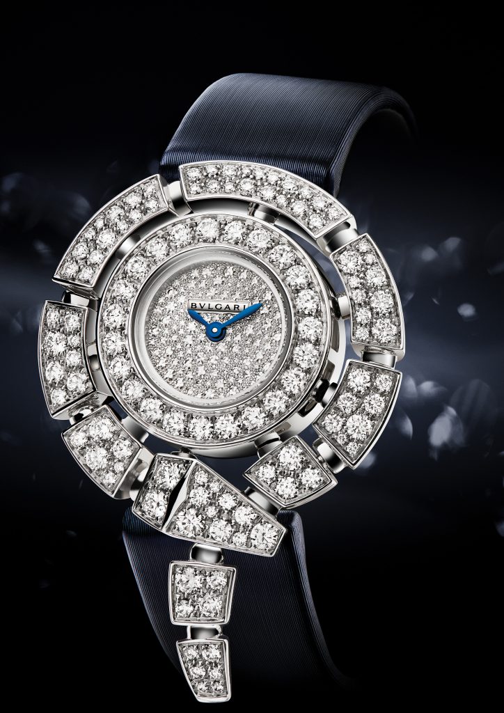 Cette montre précieuse et raffinée est aussi le témoignage du très haut degré de maîtrise technique des maîtres artisans des ateliers de Haute Joaillerie de Bulgari. La finesse et la qualité des sertissages et des assemblages des pierres, des ajustages, est particulièrement remarquable. Il faut aussi noter la souplesse des bracelets sertis. Ils sont très agréables à porter, Bulgari privilégiant toujours pour ses bijoux cette forme de sensualité qui rend chaque pièce très confortable en plus d’être brillante. La queue du serpent coule sur le poignet et s’y enroule en souplesse, témoignage de la flexibilité et du mouvement qui caractérisent les créations joaillières signées Bulgari.