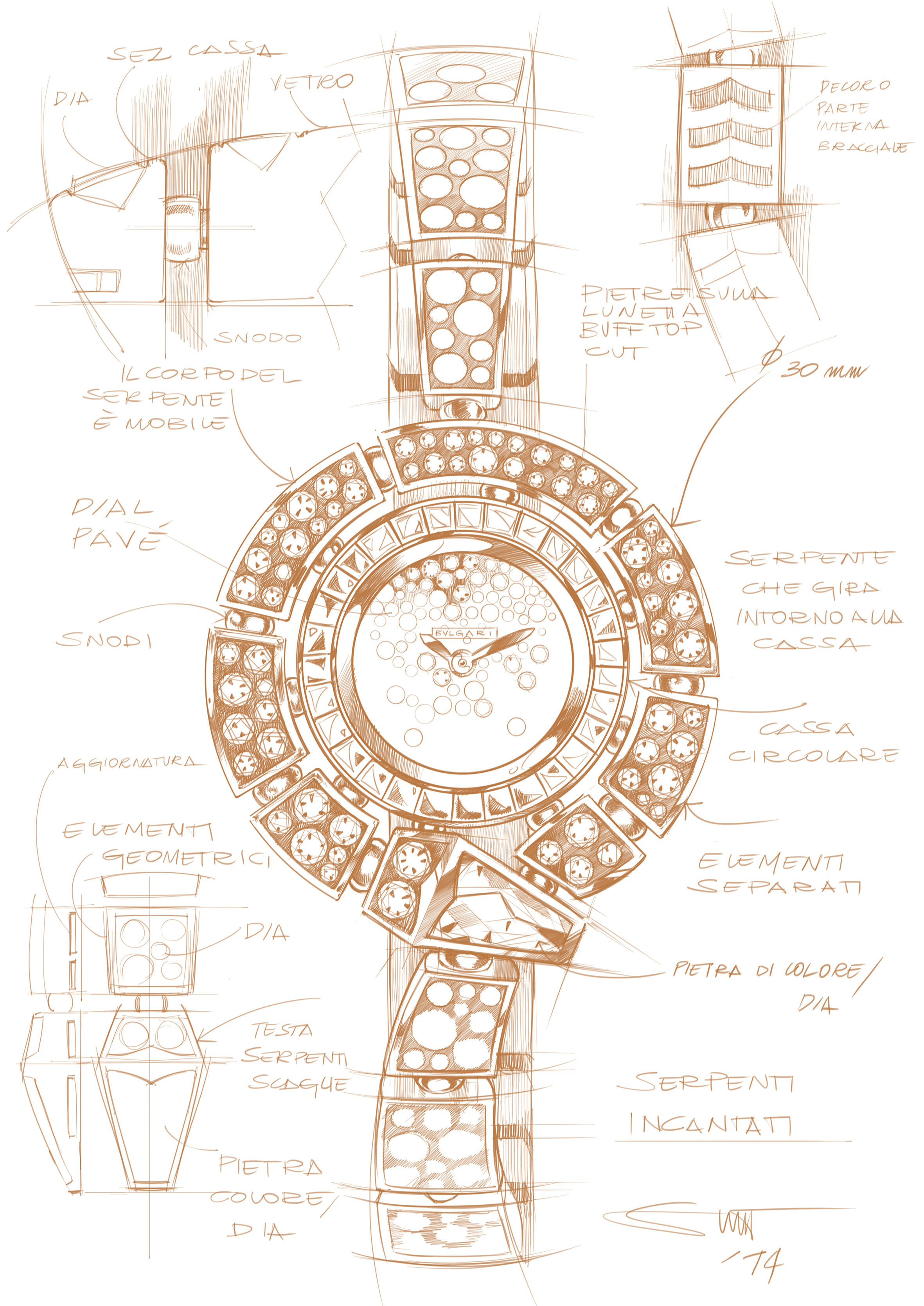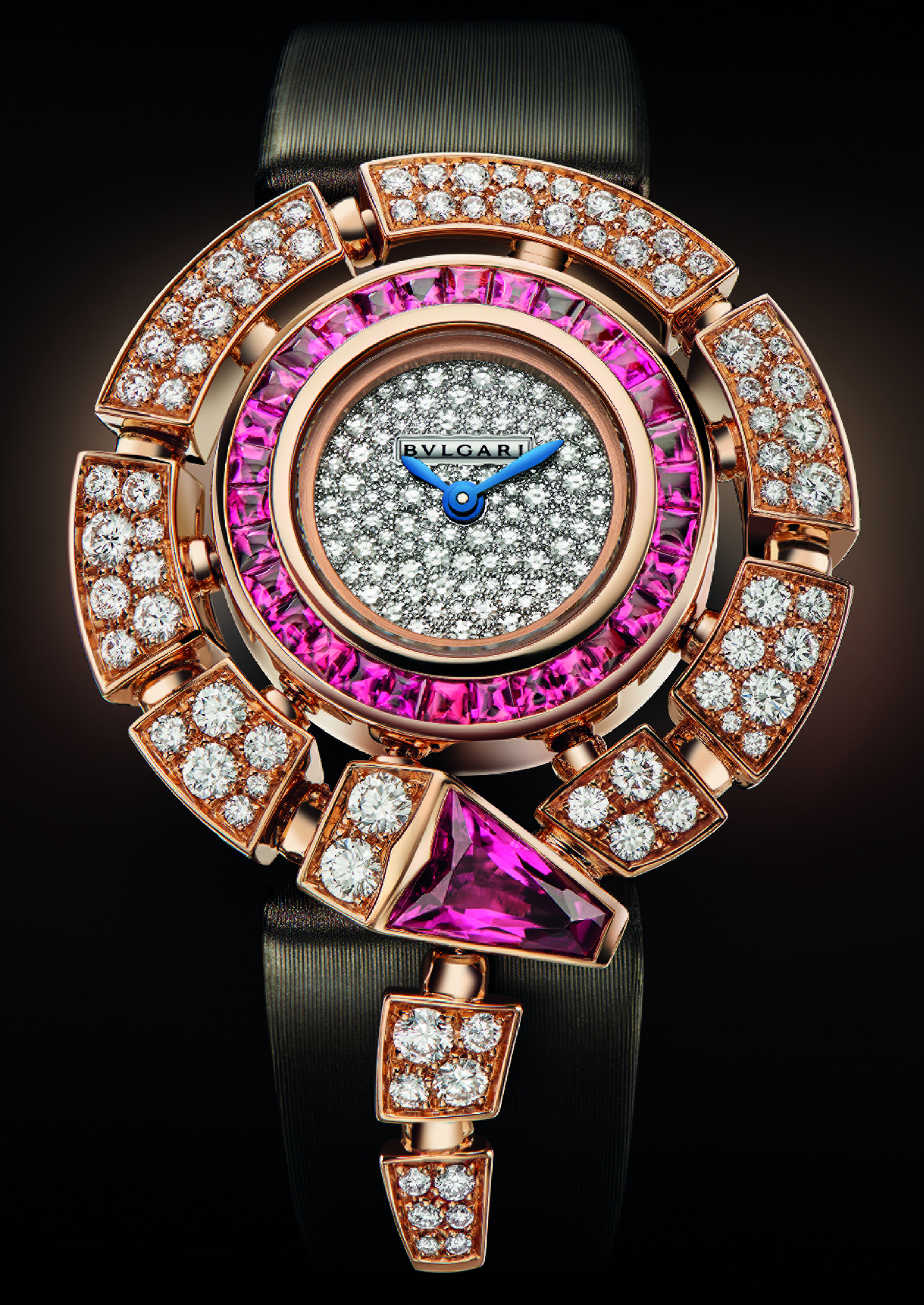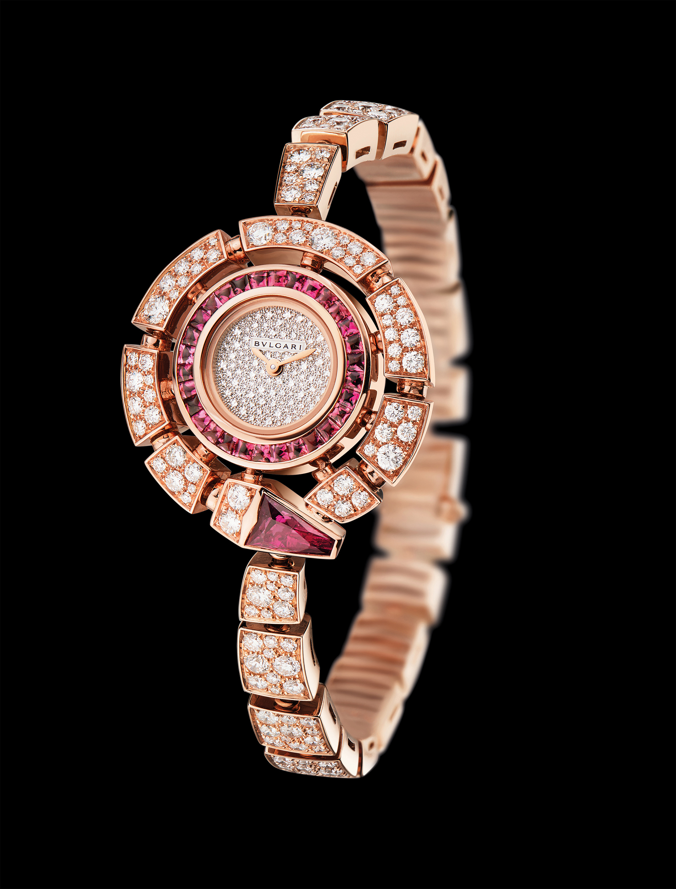 Cette montre précieuse et raffinée est aussi le témoignage du très haut degré de maîtrise technique des maîtres artisans des ateliers de Haute Joaillerie de Bulgari. La finesse et la qualité des sertissages et des assemblages des pierres, des ajustages, est particulièrement remarquable. Il faut aussi noter la souplesse des bracelets sertis. Ils sont très agréables à porter, Bulgari privilégiant toujours pour ses bijoux cette forme de sensualité qui rend chaque pièce très confortable en plus d’être brillante. La queue du serpent coule sur le poignet et s’y enroule en souplesse, témoignage de la flexibilité et du mouvement qui caractérisent les créations joaillières signées Bulgari.