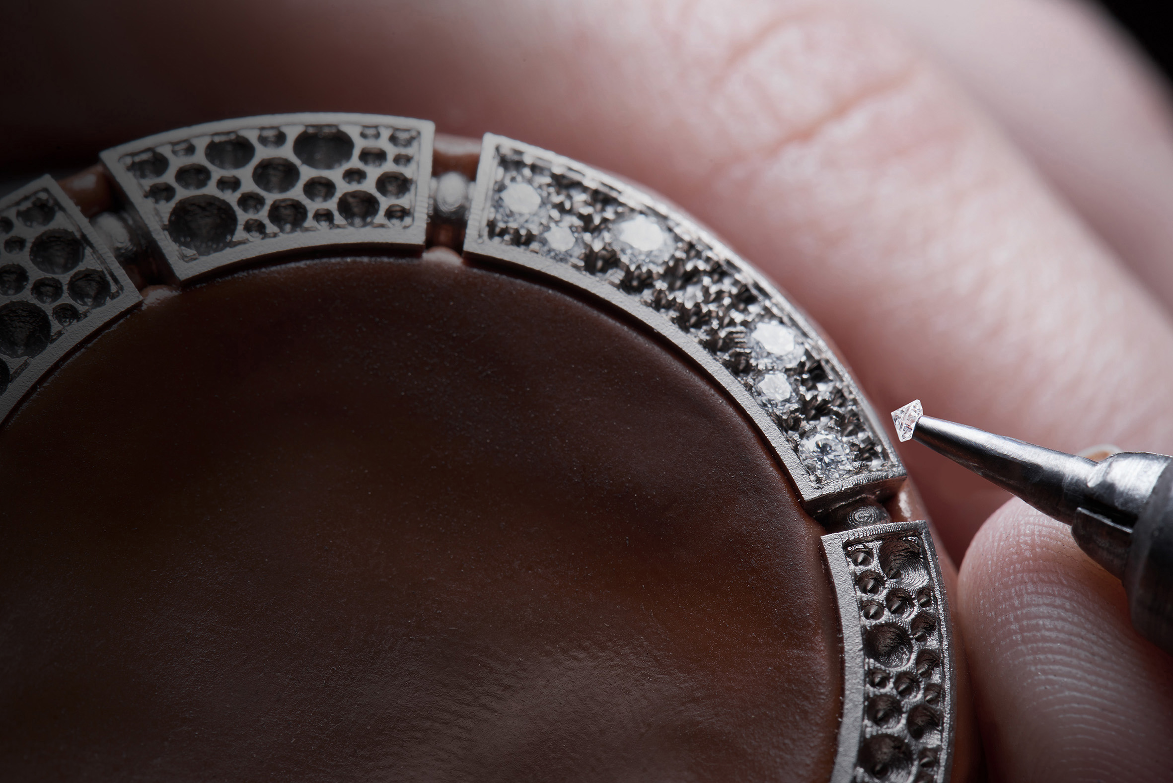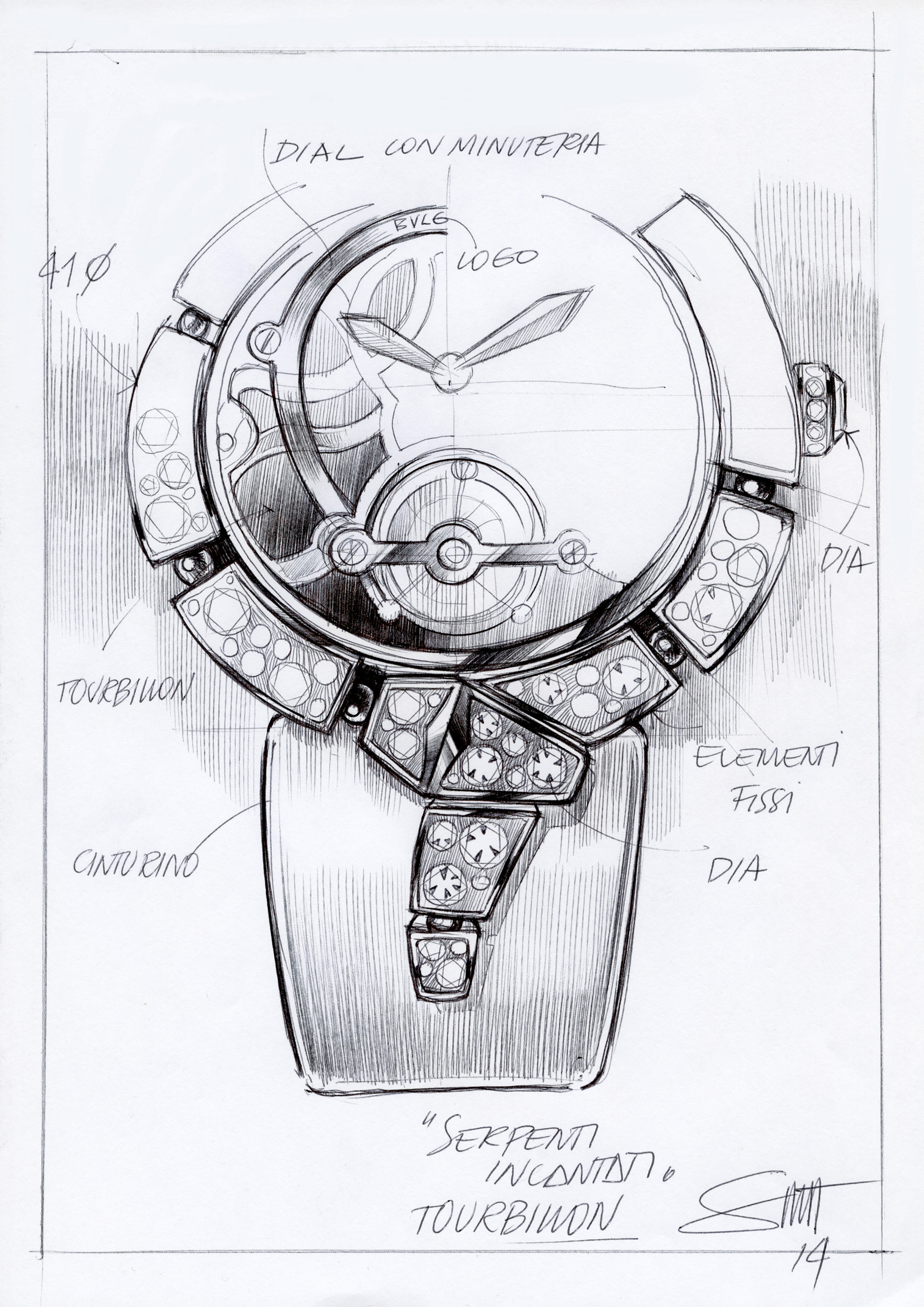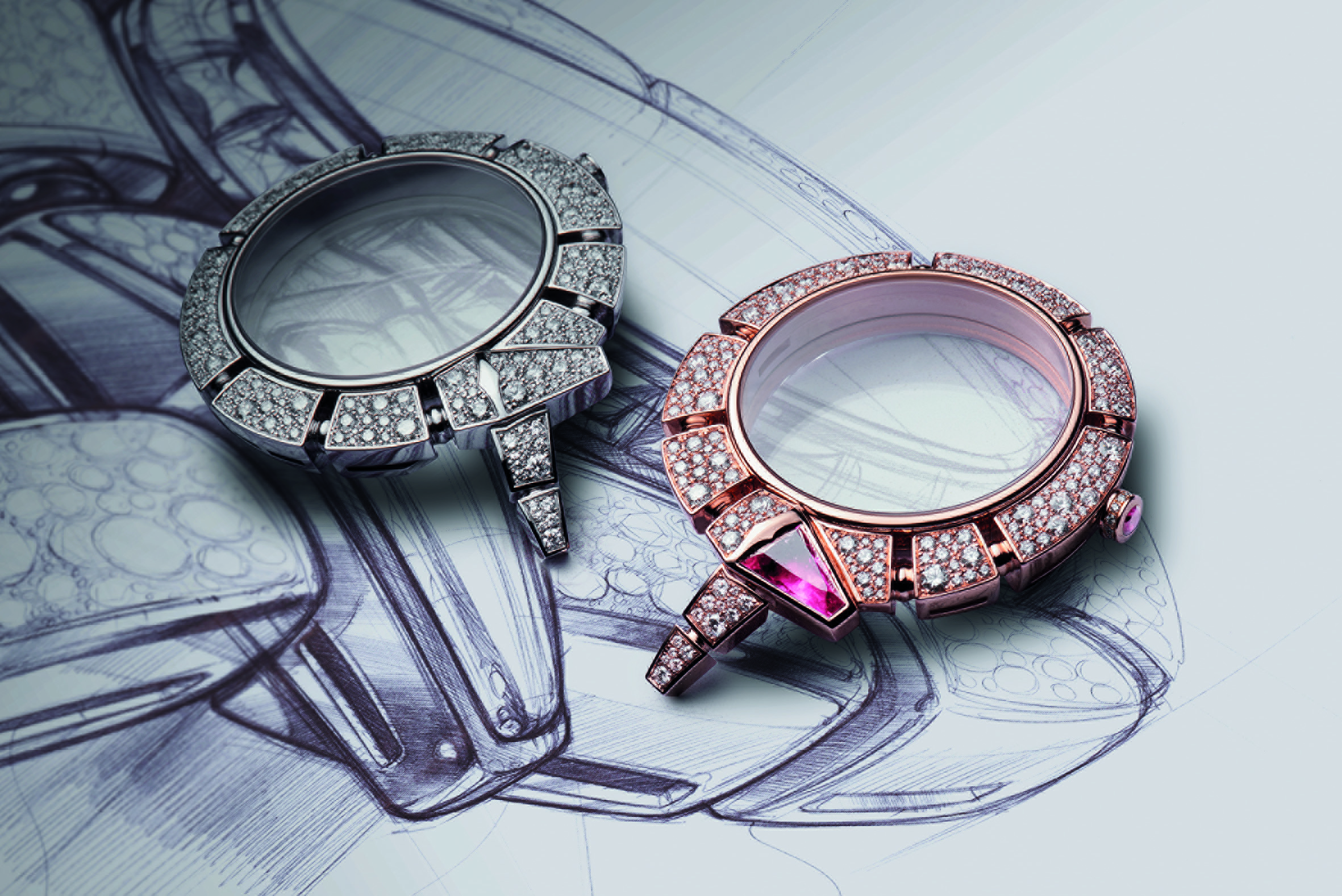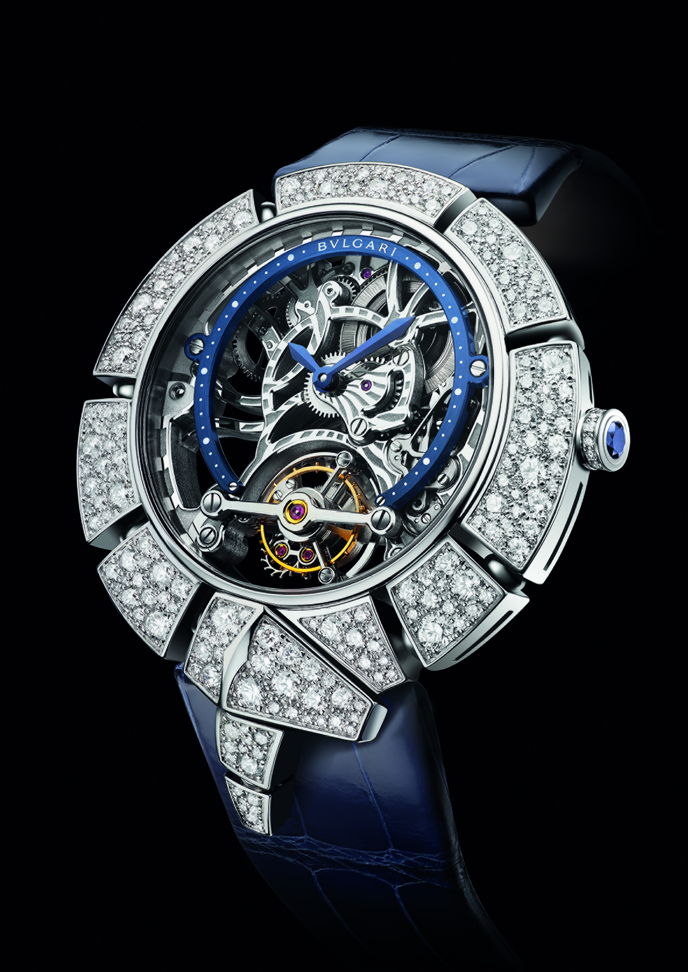 C’est ainsi que Serpenti Incantati offre une nouvelle vie à son symbole. Après s’être enroulé autour du poignet, le serpent se réinvente aujourd’hui en épousant, pour la toute première fois, le boîtier d’une montre ronde: le reptile s’enroule autour du cadran de la montre pour enserrer un calibre manufacture à Tourbillon intégralement squeletté. Gracile et aérien, ce mouvement est une œuvre d’art: platine et ponts sont ciselés dans l’or rose ou blanc, les flancs sont étirés, pourtours et moulures sont tous anglés et systématiquement polis. Les aciers subissent eux aussi semblable traitement. Ces minutieuses opérations sont complétées par les finitions de surface chères à la Haute Horlogerie: perlage et colimaçonnage parachèvent l’ensemble d’un travail à forte valeur ajoutée pour un résultat spectaculaire.