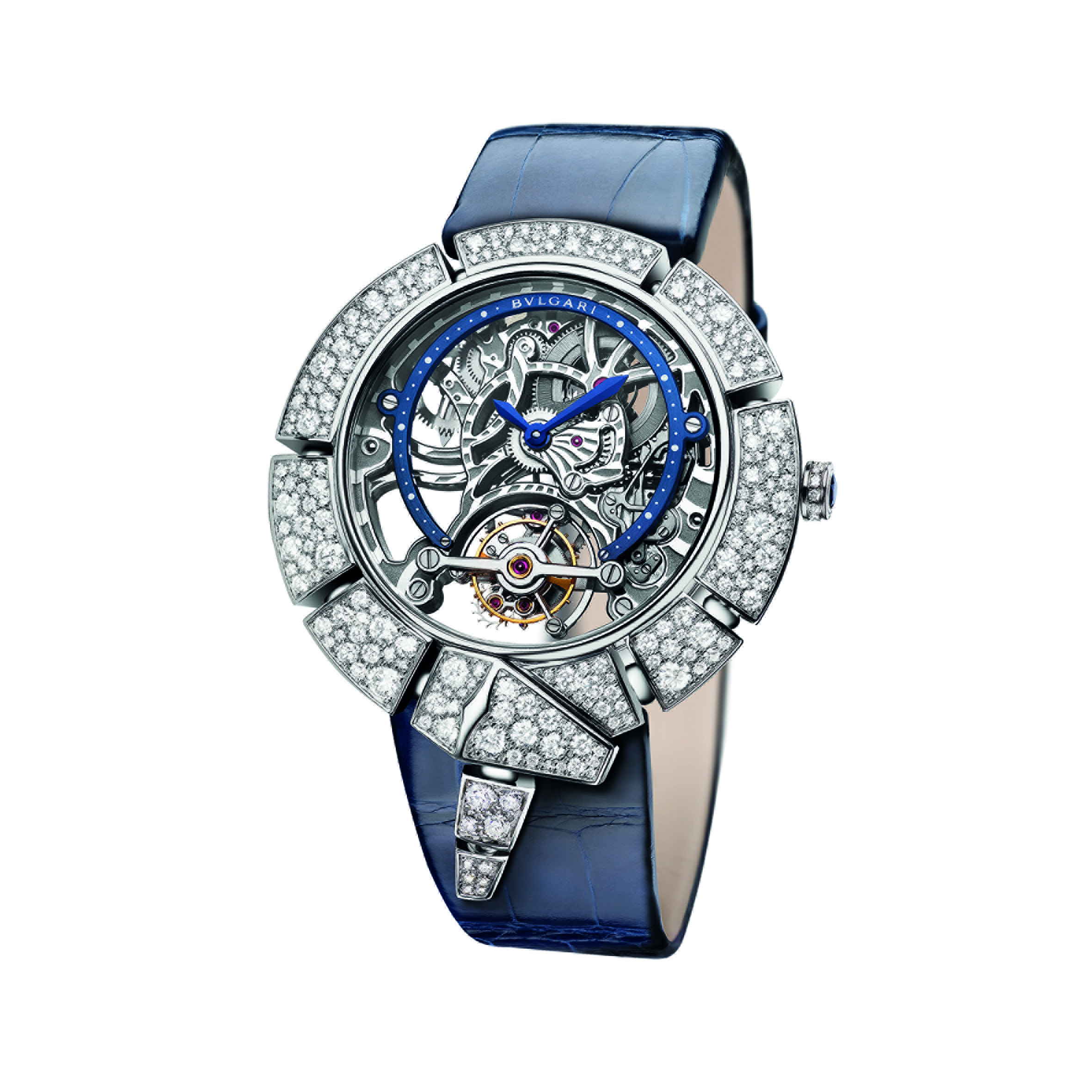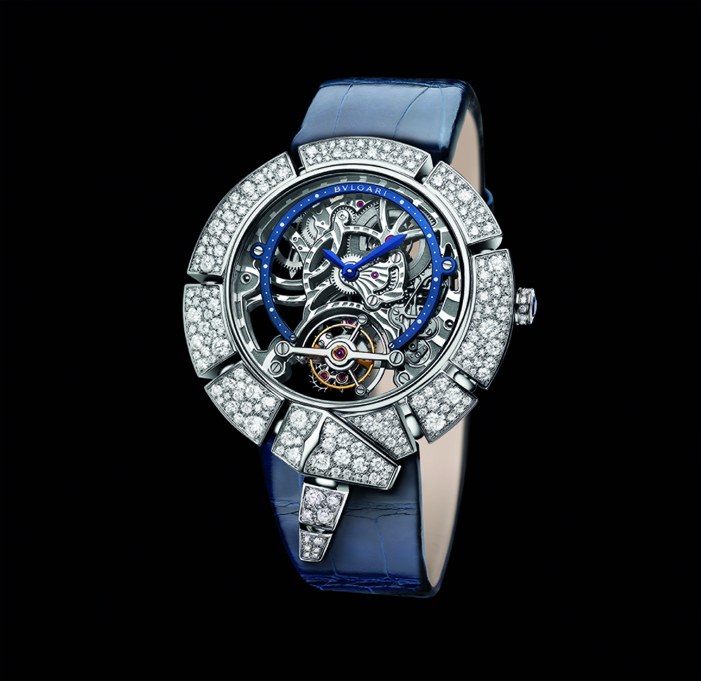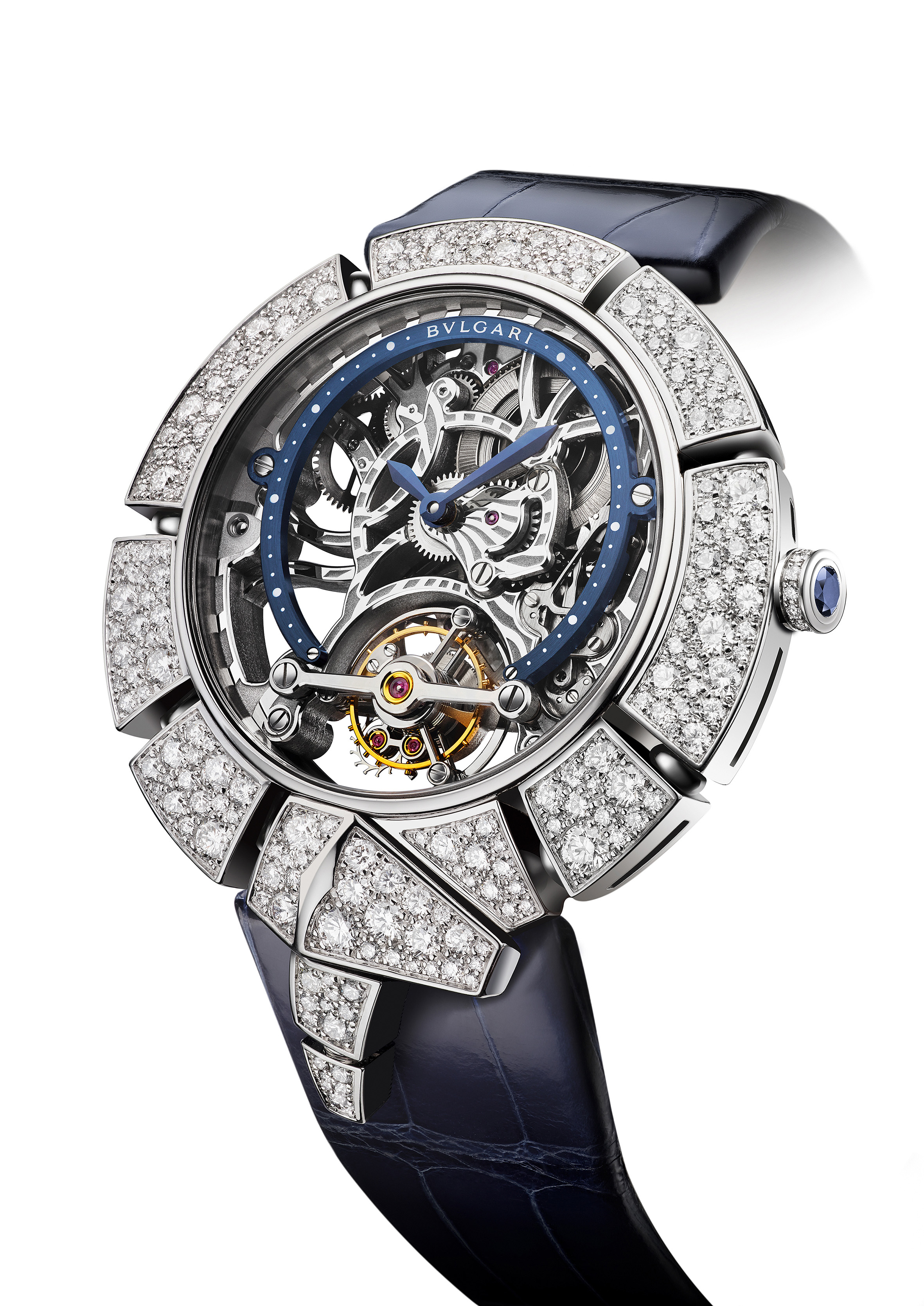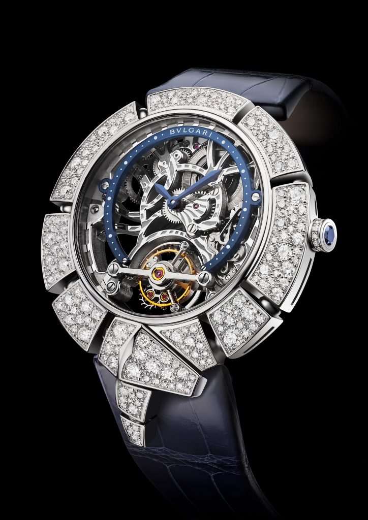 Proposée en 2 versions, la nouvelle collection Serpenti Incantati Tourbillon Squelette renouvelle totalement le thème avec la modernité du design. Fastueux, Serpenti Incantati – ou serpent enchanteur – est apprivoisé avec éclat d’une manière totalement nouvelle, dans une interprétation ensorcelante qui exacerbe l’union de la Haute Horlogerie et de la Haute Joaillerie. Chaque partie de la tête comme du corps du serpent a été totalement repensée et redessinée, avec des lignes très contemporaines, très douces et stylisées. Si Bulgari domestique son serpent, il semble toujours en mouvement.