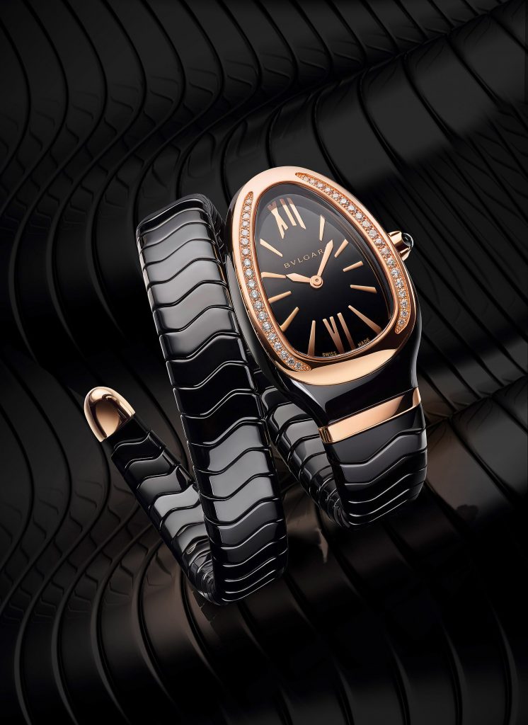 Serpenti Spiga est un challenge technique, car réaliser un bracelet souple et articulé de type Tubogas en céramique est une nouvelle prouesse relevée par la maison romaine, connue pour son excellence dans le travail des matières et l’innovation. Mais Spiga est aussi une audace en termes de style, qui bouscule une nouvelle fois les codes de l’horlogerie précieuse pour y apporter modernité, fraîcheur et sensualité. Cette nouvelle montre dégage immédiatement une sensation de volupté et de glamour. Elle ne cache pas ses atouts de séduction, à commencer par la douceur de la céramique sur la peau. La volupté est un thème toujours cher au cœur des créateurs de la maison Bulgari, qui fait partie du tempérament italien.