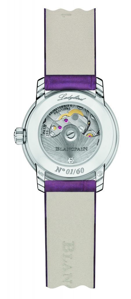 60 ans après, son esthétisme est toujours d’actualité. La Manufacture Blancpain souhaite rendre hommage à la Ladybird qui fait partie de l’histoire des montres féminines. Le calibre automatique d’aujourd’hui s’est adapté et devient le 6150, il mesure 15,7 mm de diamètre.