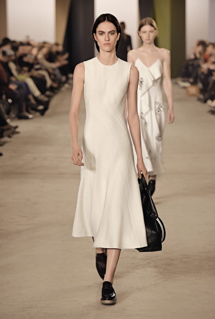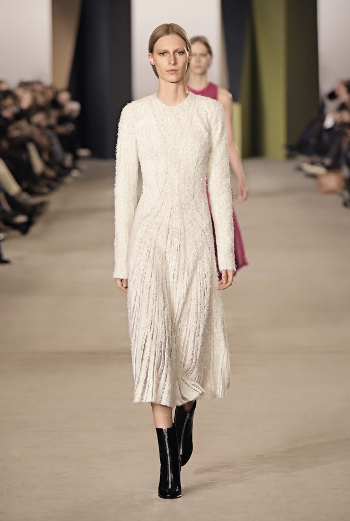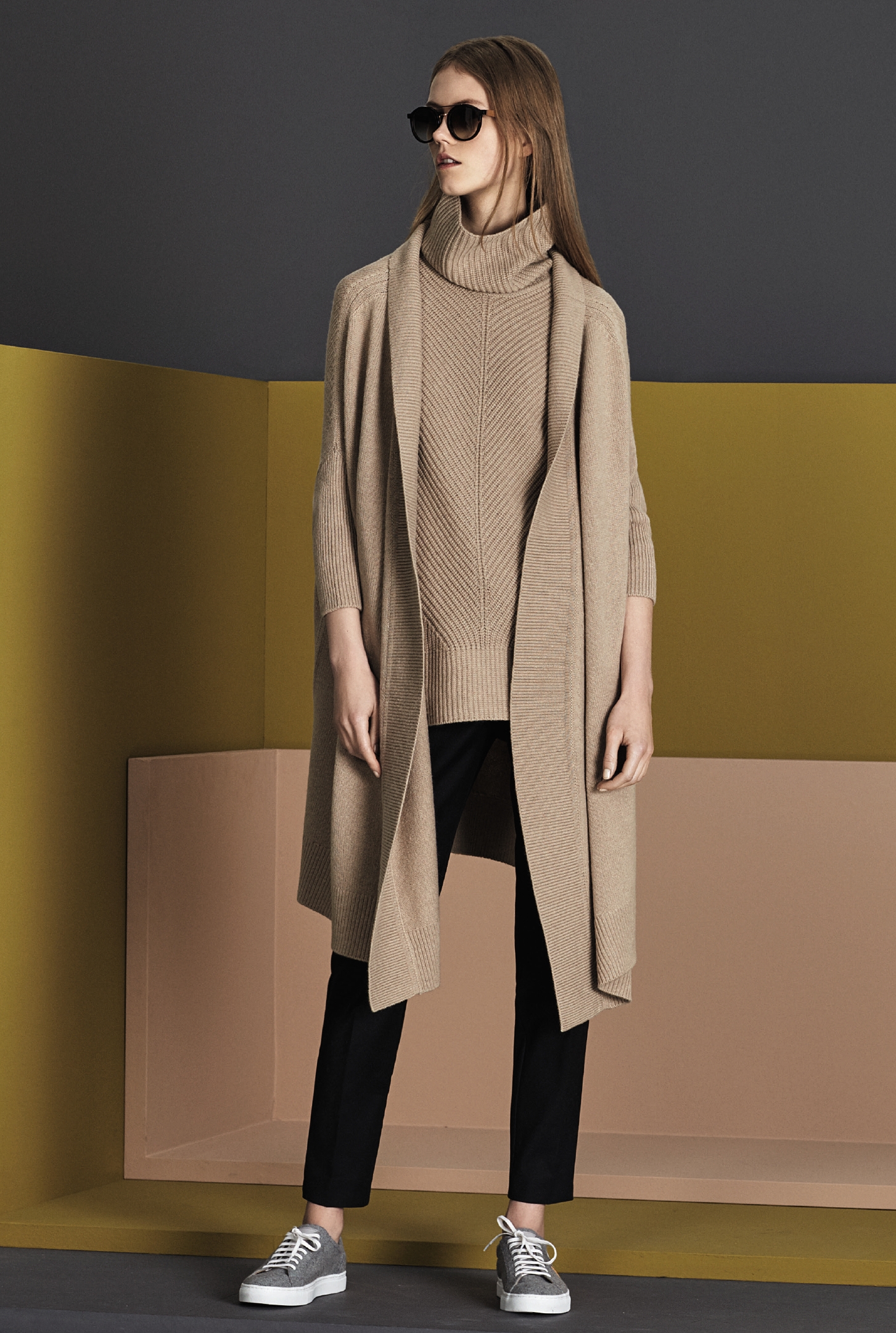 La collection minimaliste met en avant des robes aux lignes pures et des manteaux oversize en cachemire.