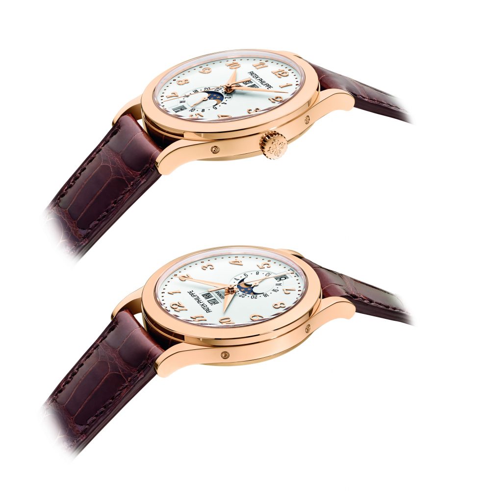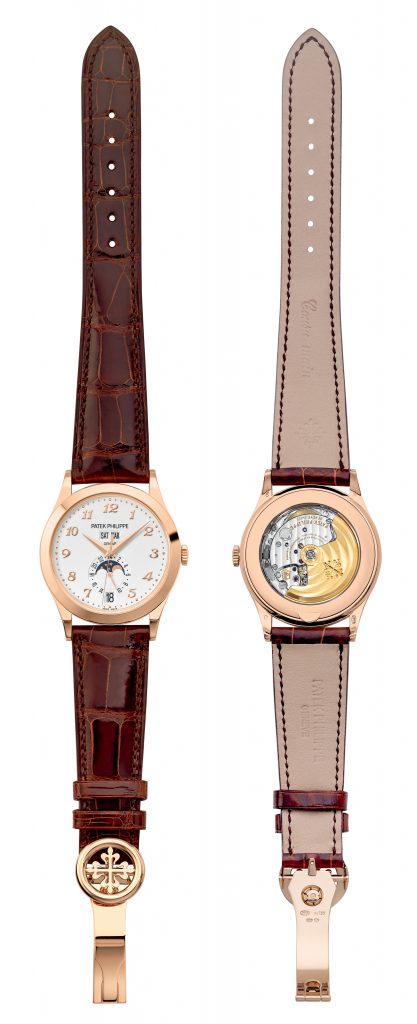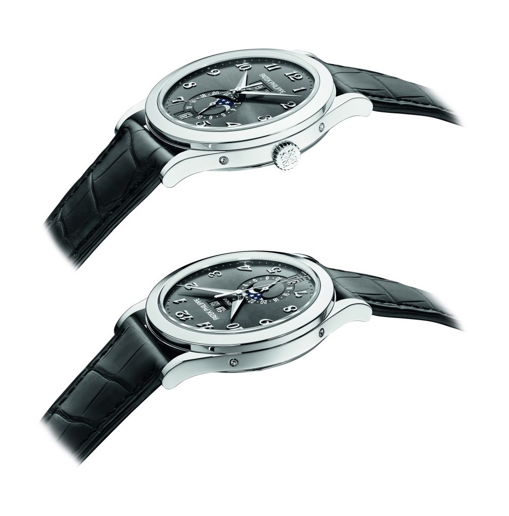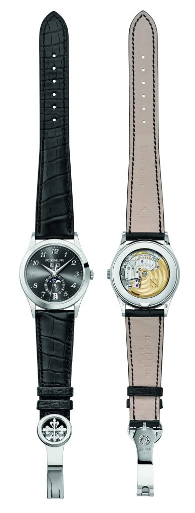 Le nouveau Quantième Annuel référence 5396 est disponible en deux versions aux caractères bien marqués. Style classique et élégant pour l’or rose 18 carats 5N, avec cadran opalin argenté, chiffres, index et aiguilles dans le même or que le boîtier et bracelet en alligator brun chocolat doté d’une boucle déployante Calatrava. Style moderne et technique pour l’or gris 18 carats, avec cadran foncé de couleur gris galvanique rehaussé par un décor «soleil», chiffres Breguet appliques, index et aiguilles en or gris et bracelet en alligator noir mat avec boucle déployante Calatrava en or gris.