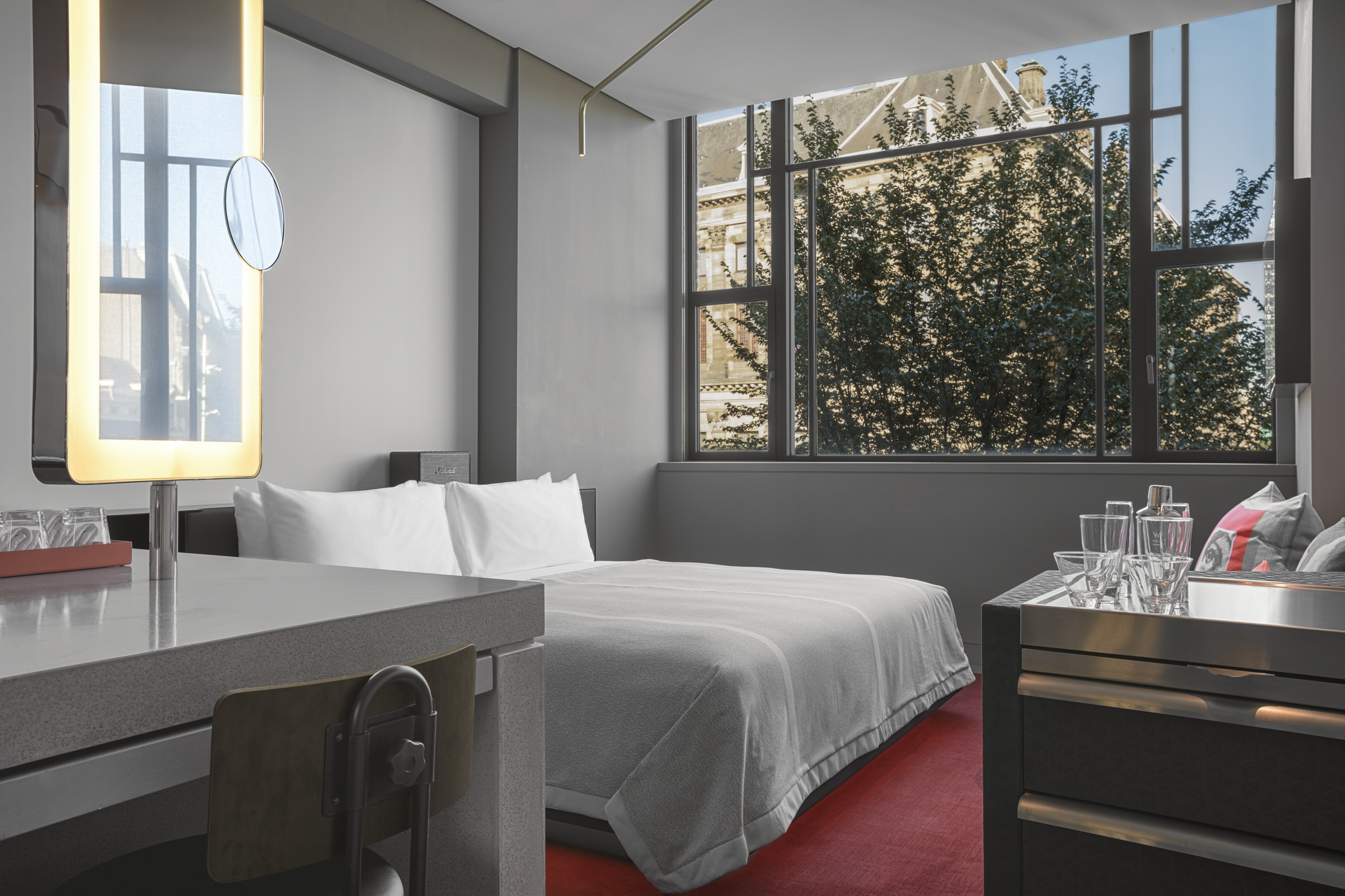 Le bâtiment Central offre 172 chambres élégantes, alors que les 66 chambres du bâtiment de la Banque ouvriront quant à elles en début d’année prochaine. L’hôtel disposera au total de 21 suites, trois suites WOW et deux suites Extreme WOW extraordinaires – l’interprétation de la suite présidentielle par la marque W. Offrant une surface impressionnante de 183 mètres carrés avec un design innovant, une salle de bain ouverte dotée d’un spa, un dressing et un grand lit rond avec des vues extraordinaires sur le Palais royal, la suite Extreme WOW est le lieu le plus glamour de la ville. Le W Amsterdam propose SPG Keyless, le premier système d’accès sans clé du secteur de l’hébergement qui permet aux clients d’utiliser leur smartphone ou appareil portable en guise de clé.