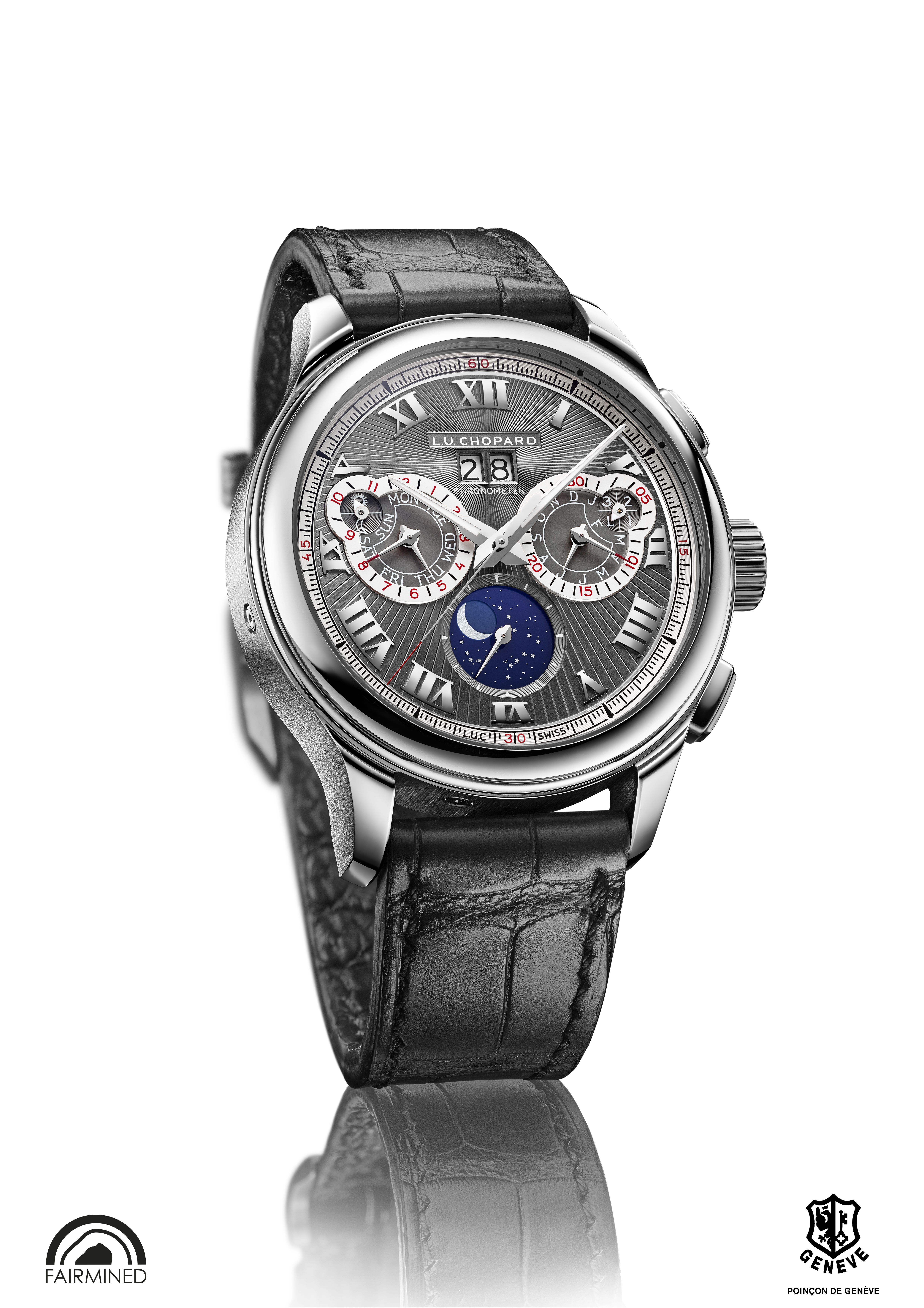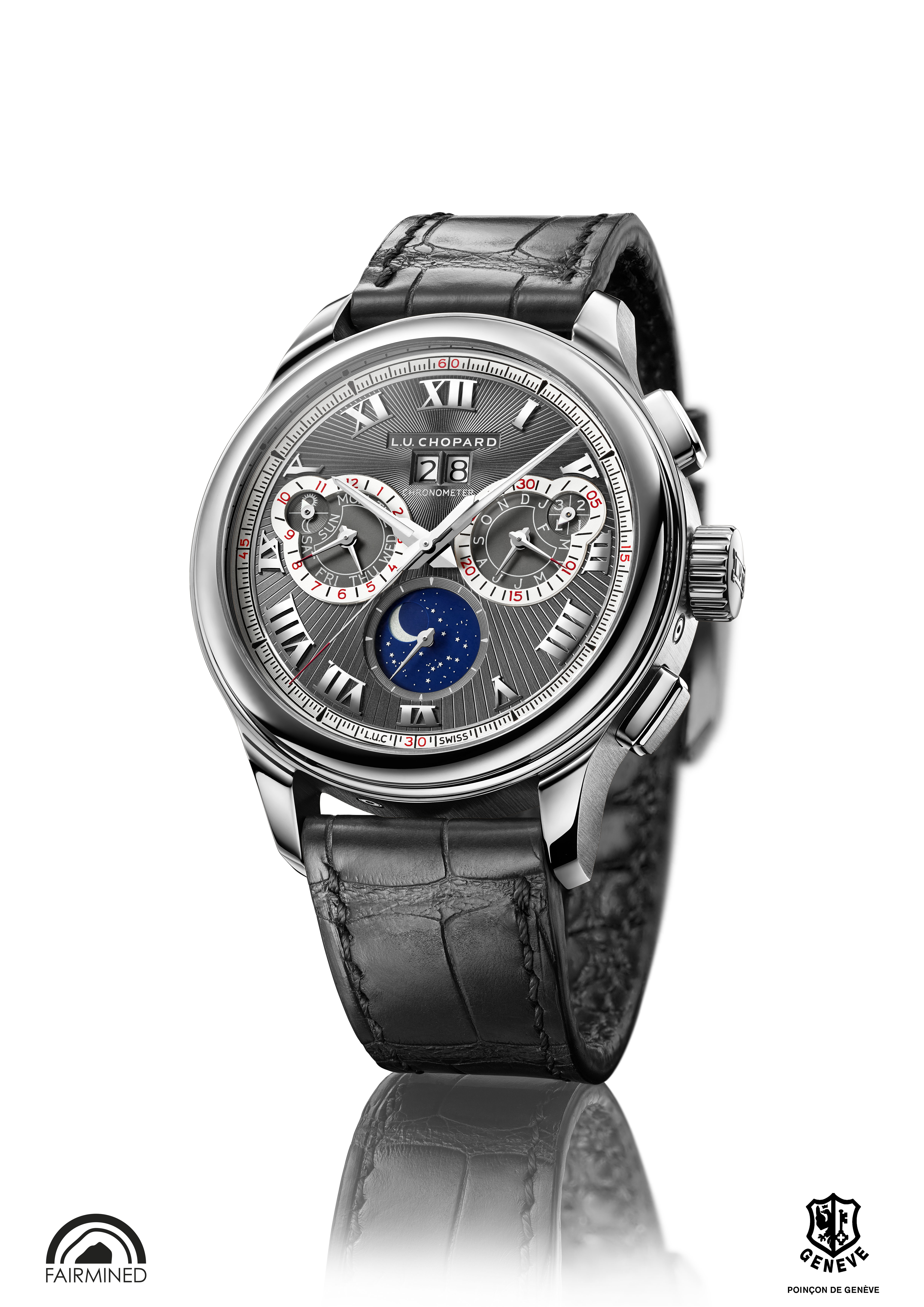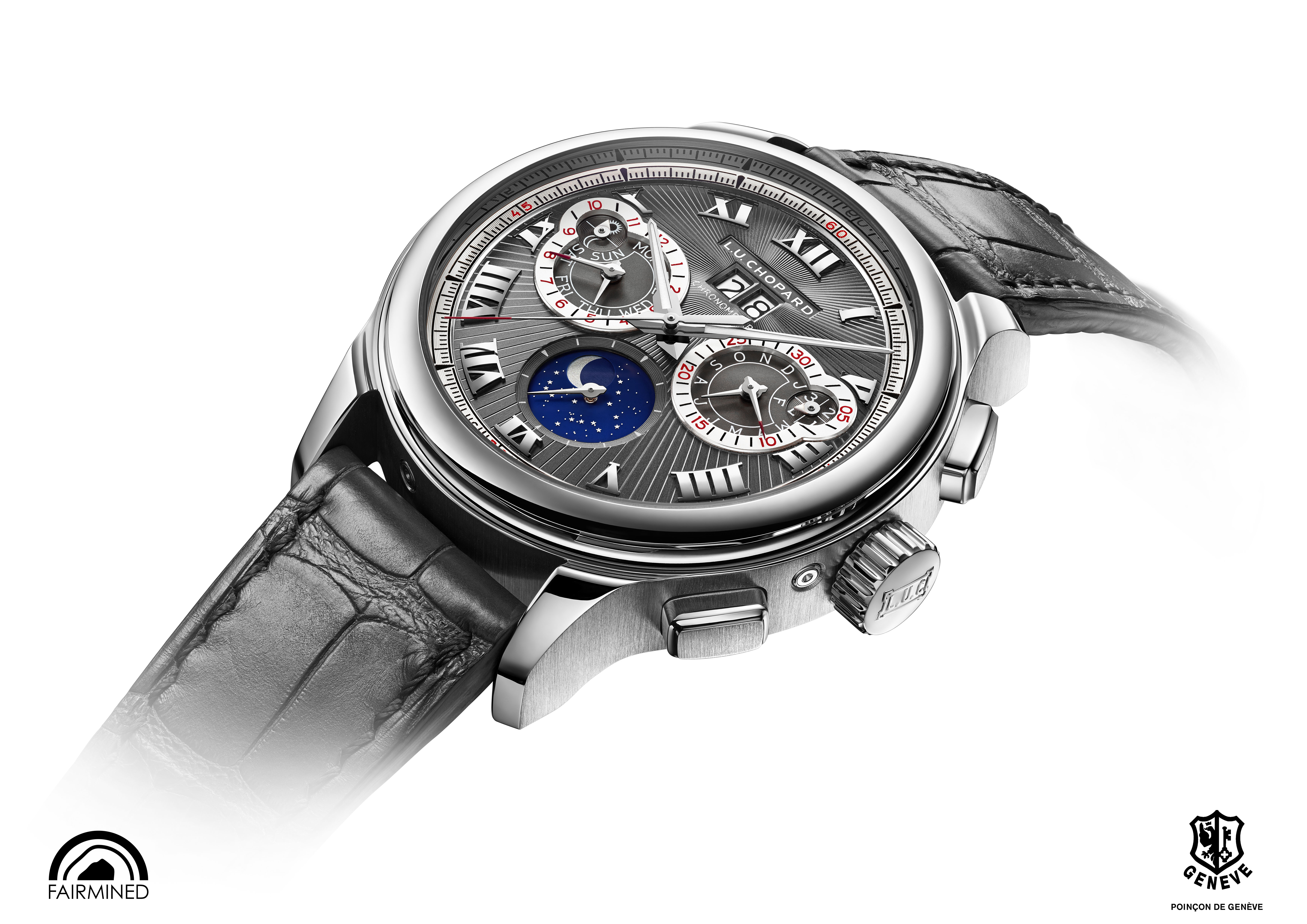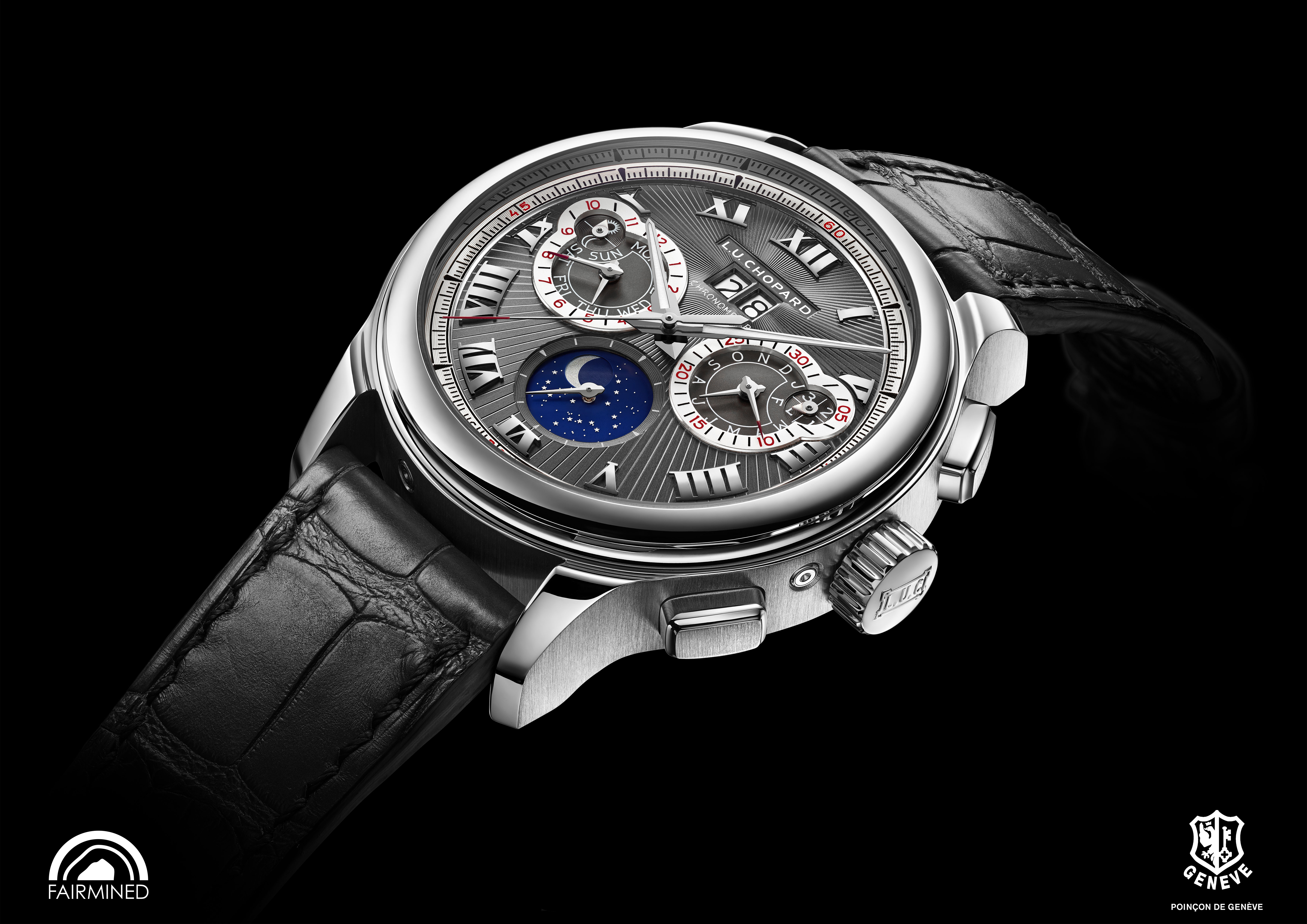 La L.U.C Perpetual Chrono en or gris est la première montre L.U.C en or gris « Fairmined » 18 carats créée par Chopard.