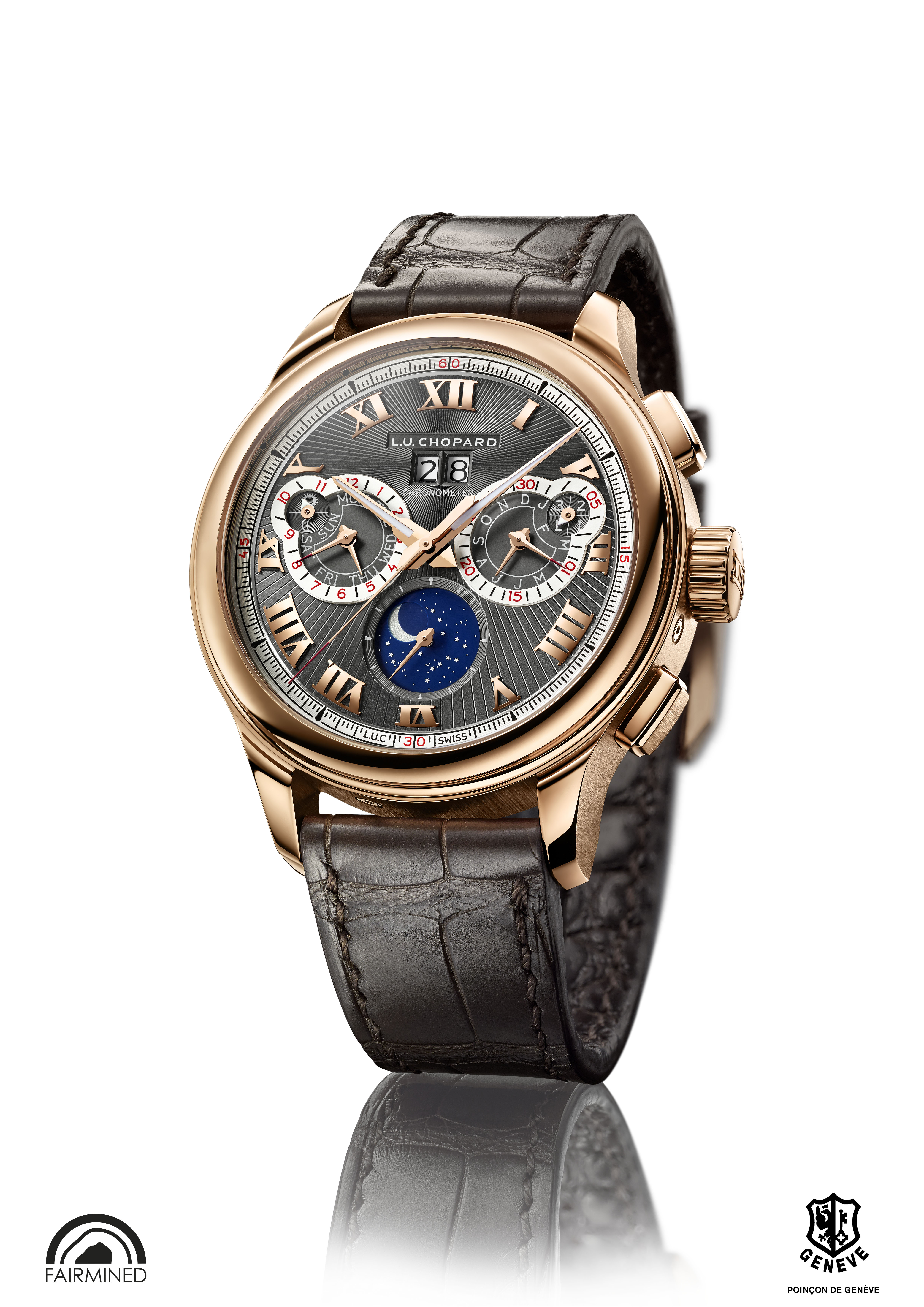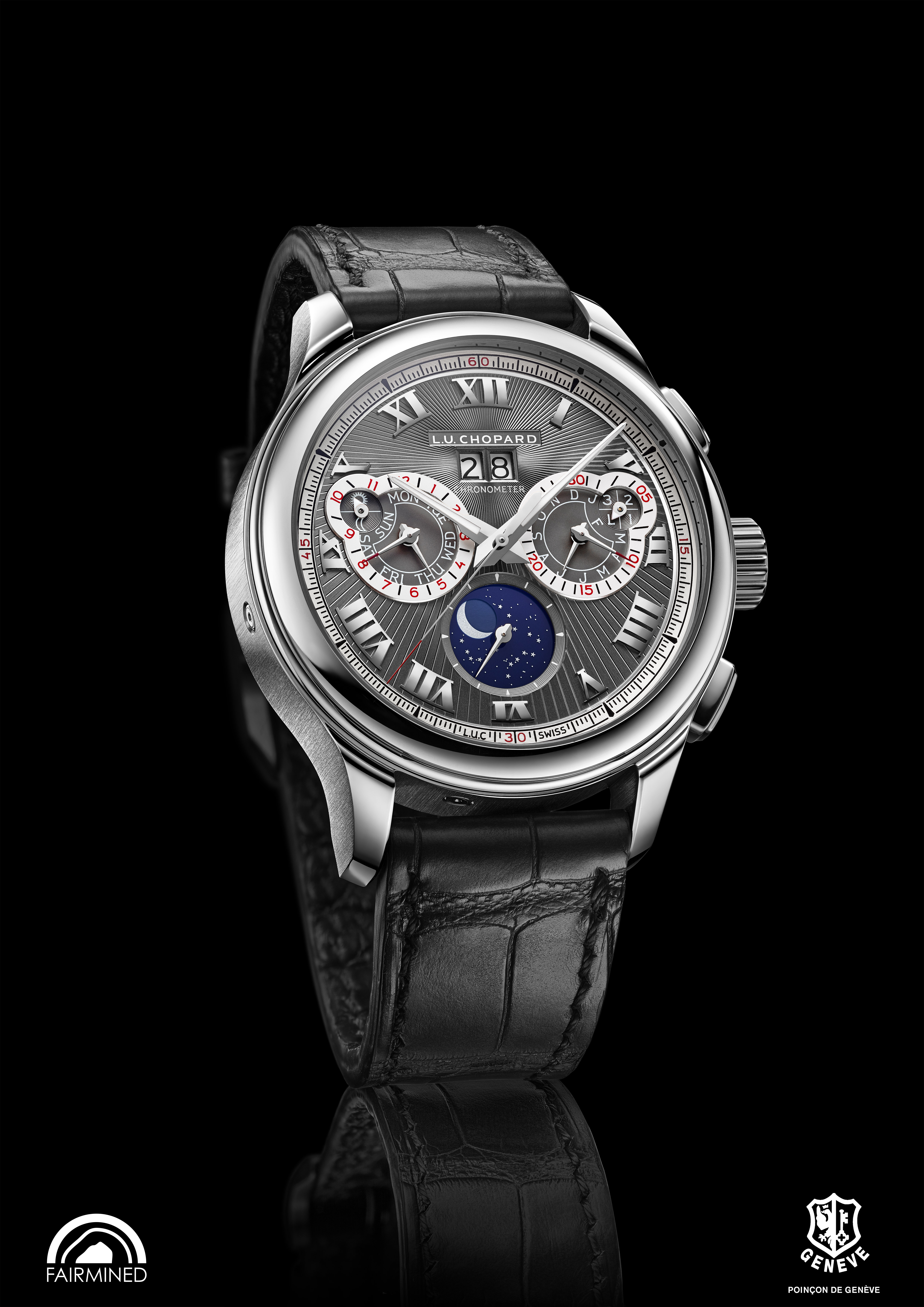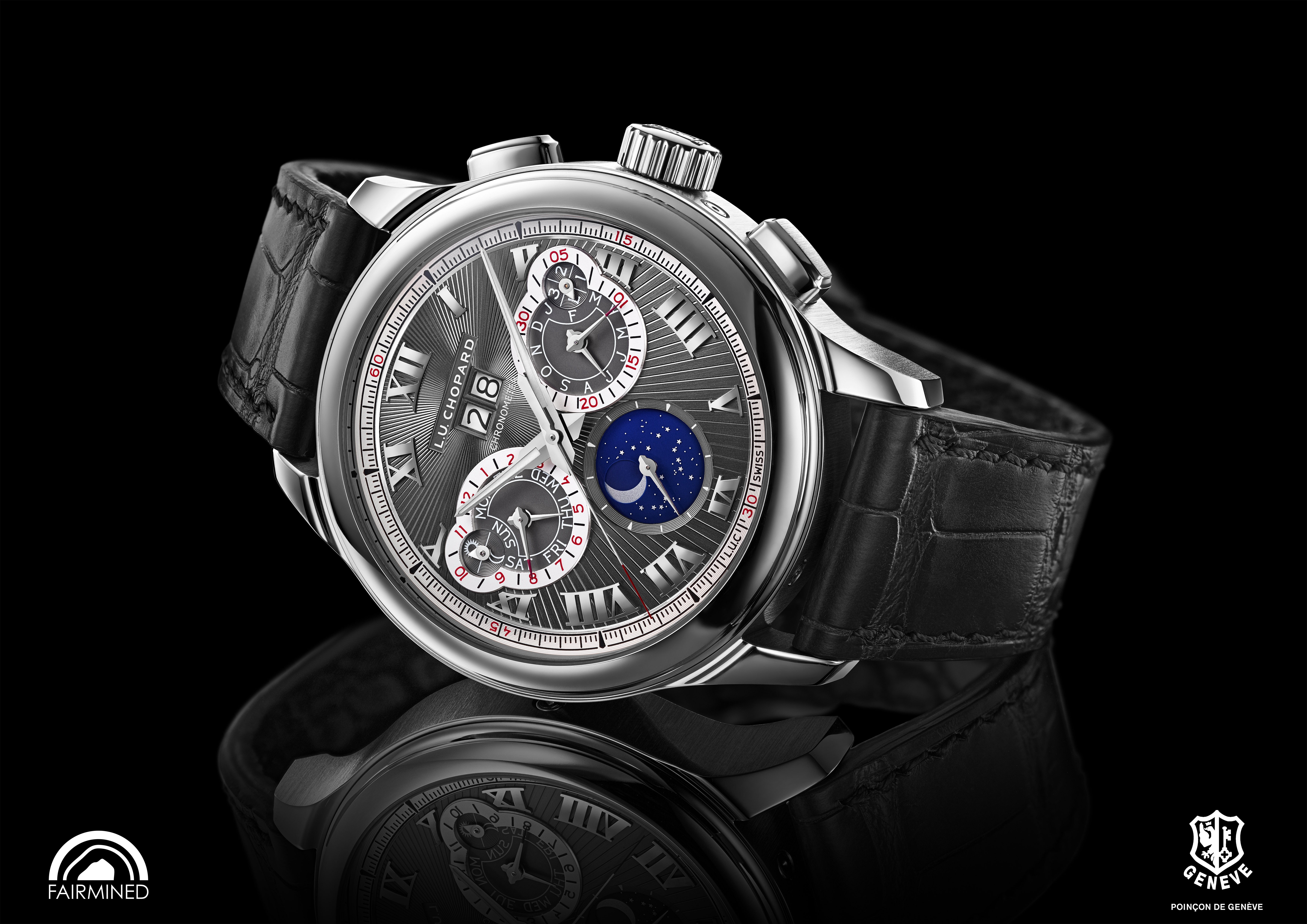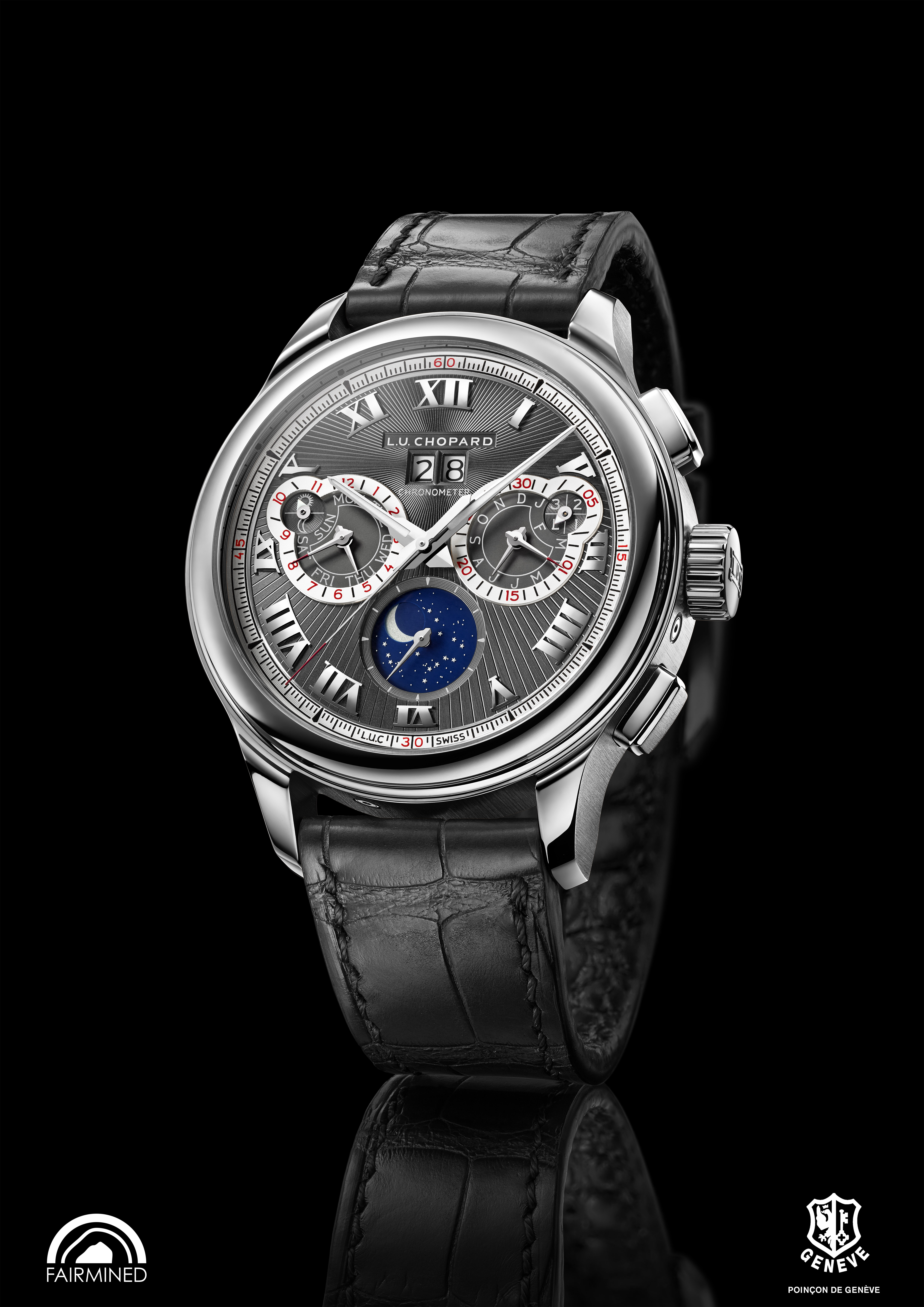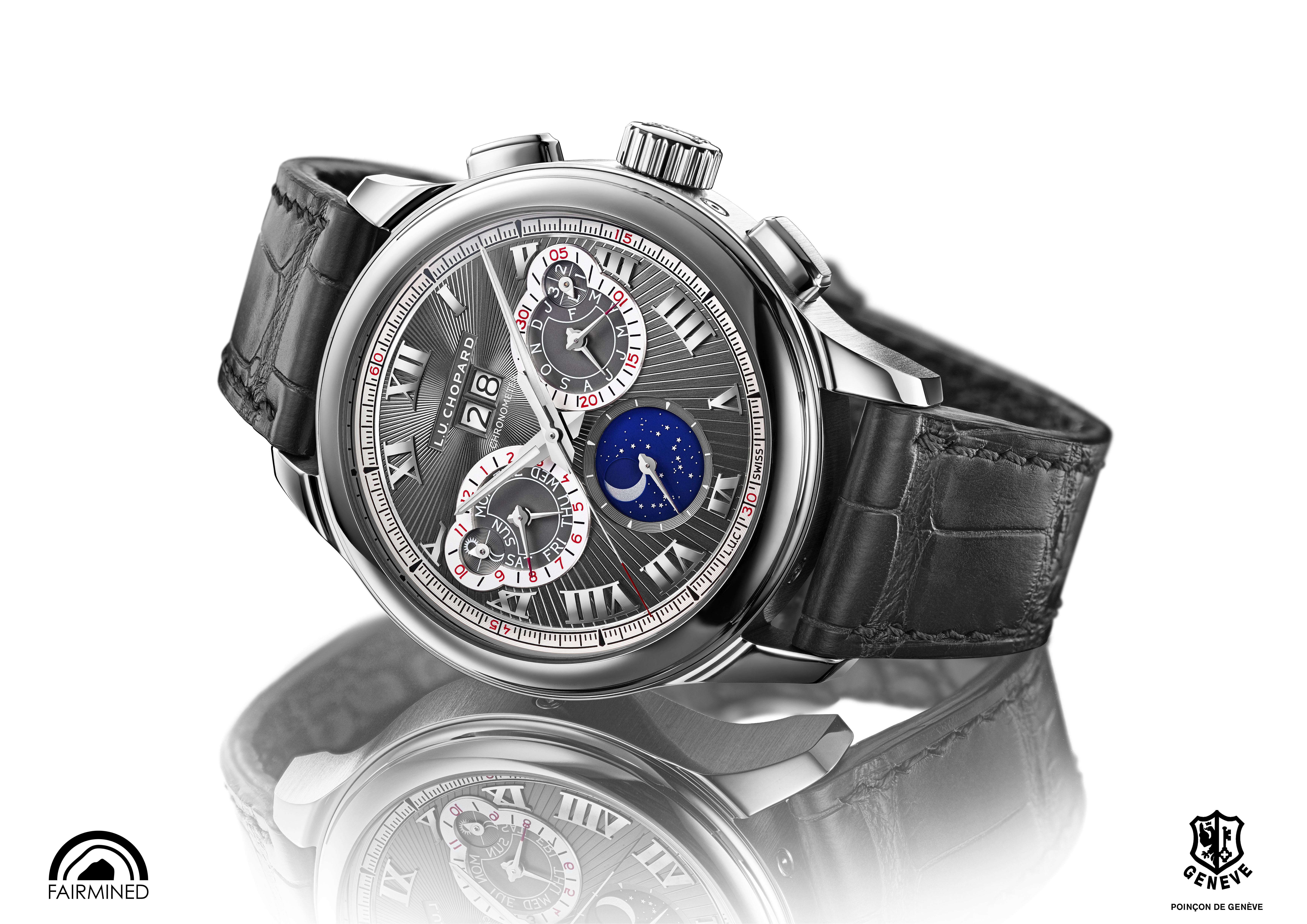 La L.U.C Perpetual Chrono en or gris est la première montre L.U.C en or gris « Fairmined » 18 carats créée par Chopard.