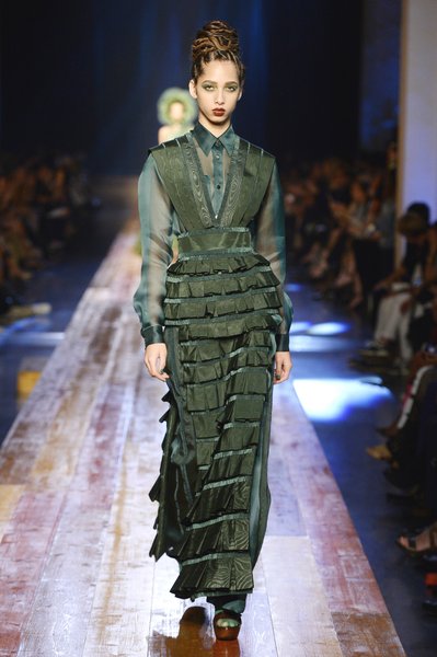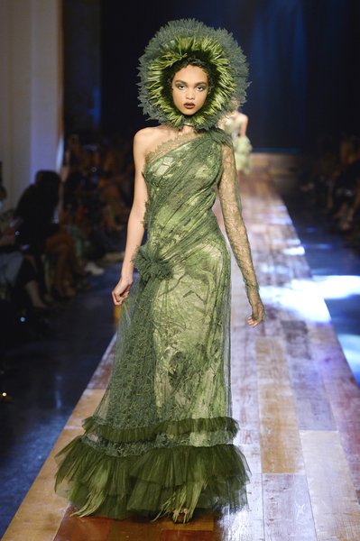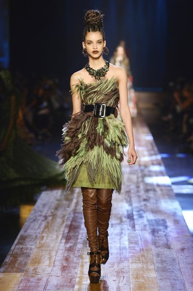 Jean Paul Gaultier a présenté sa nouvelle collection Haute couture Automne-Hiver 2016-2017 dans son QG Jean Paul Gaultier Rive Droite. Cette présentation s’intitule In the Wood for Love, Gazon Mody ou Hermaphrodite. Le défile ressemble à un remake de “Into the wild” Parmi les modèles on retrouve des mannequins « hors normes » comme Anna Cleveland et Coco Rocha.