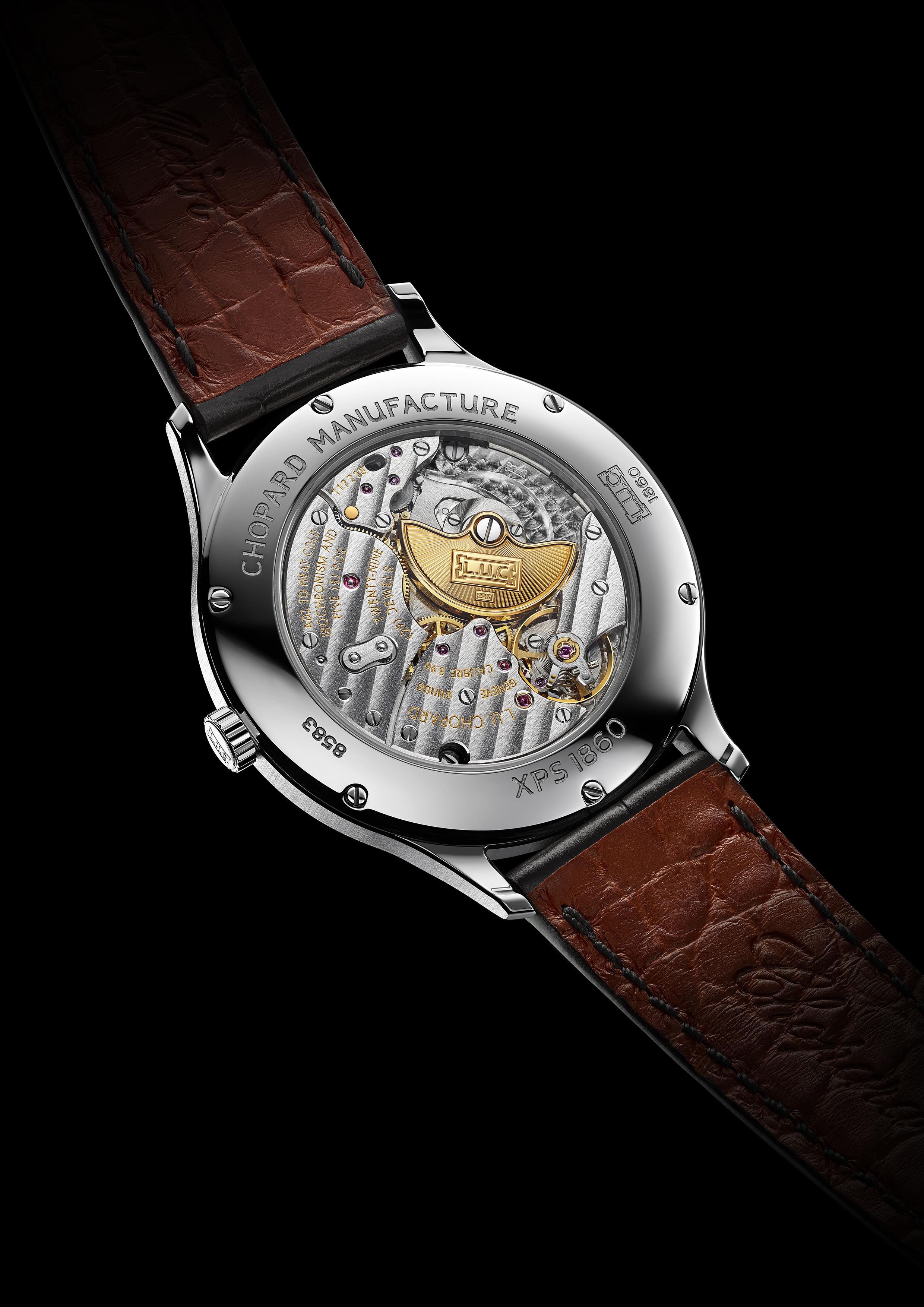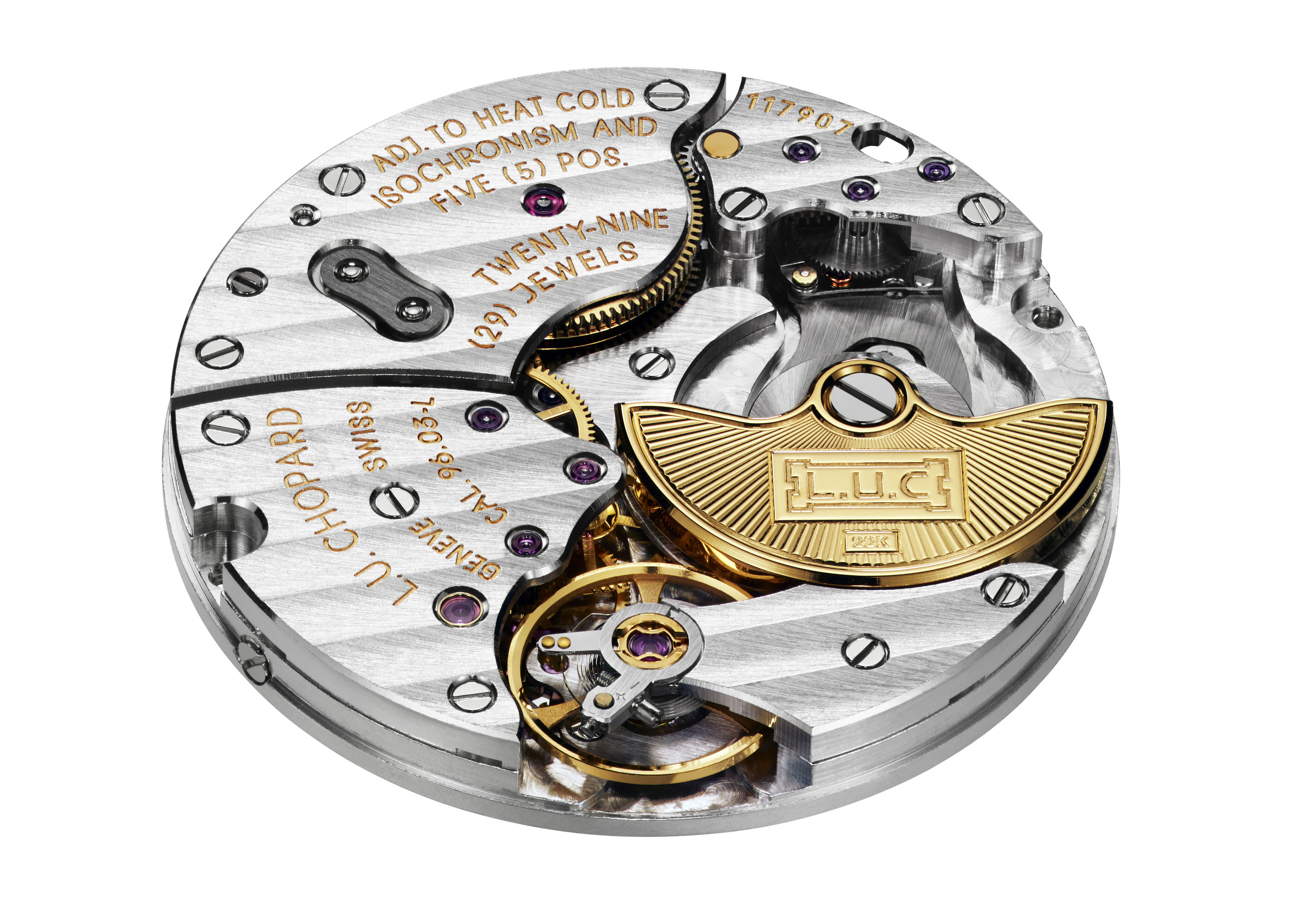 Ce mouvement bénéficie de la technologie brevetée Twin, soit deux barillets superposés coaxiaux pour une réserve de marche de 65 heures. Loger un tel mouvement automatique dans un boîtier extra-plat de 7.5 mm est un véritable défi technique. C’est grâce à une construction astucieuse avec micro rotor que les maîtres horlogers de Chopard Manufacture ont accompli cette prouesse et réussi à magnifier le calibre L.U.C 96.23-L.