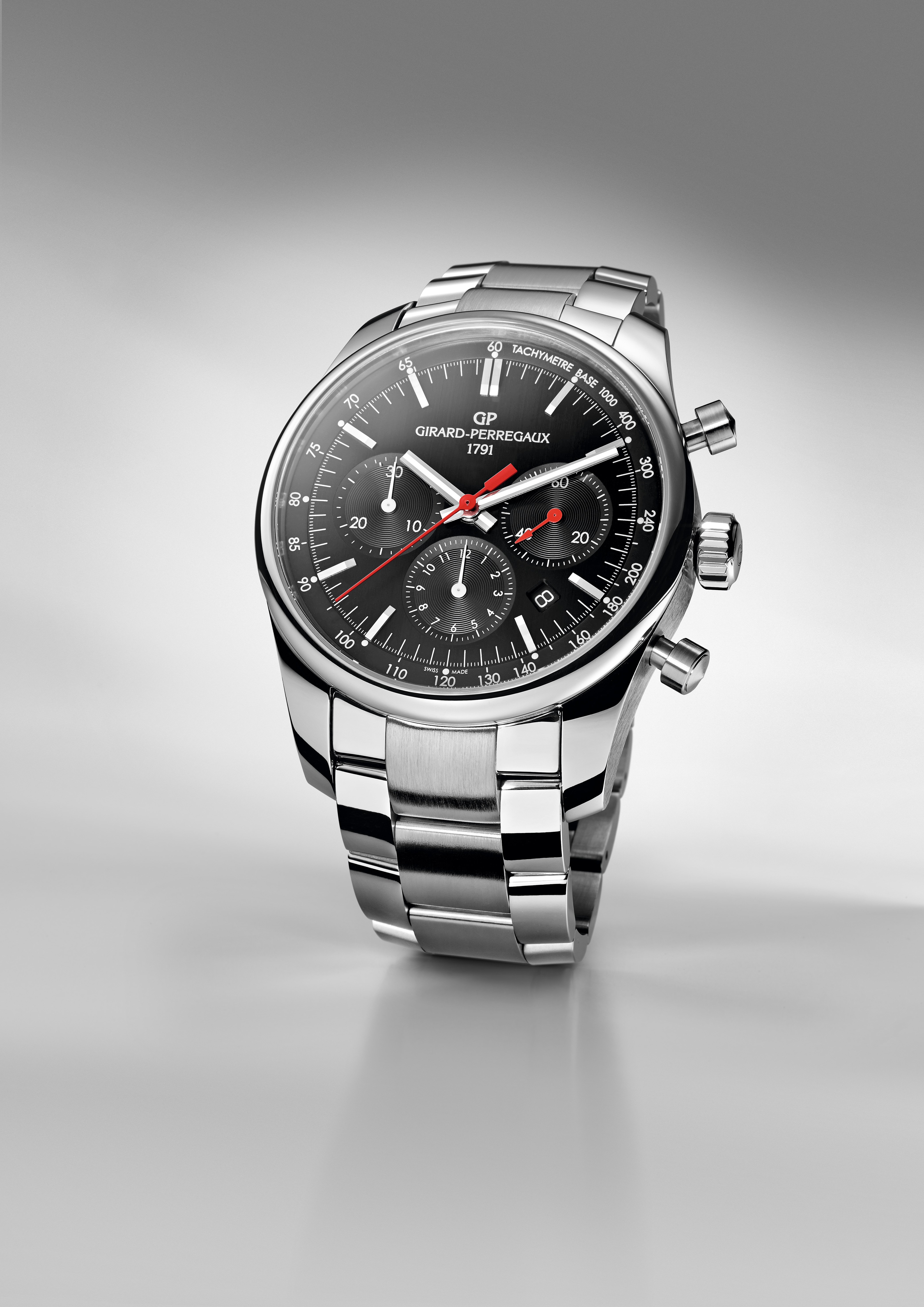 Chez Girard-Perregaux, la fabrication de chro- nographes a débuté dès l’apparition de cette complication, dans le courant du XiXème siècle. Ses modèles de poche les plus sophistiqués étaient toujours réalisés pour atteindre des sommets de précision. Soignés, ils étaient par- fois agrémentés d’une rattrapante, une compli- cation additionnelle permettant de mesurer des temps intermédiaires ou deux actions ayant le même départ, mais une fin différente.