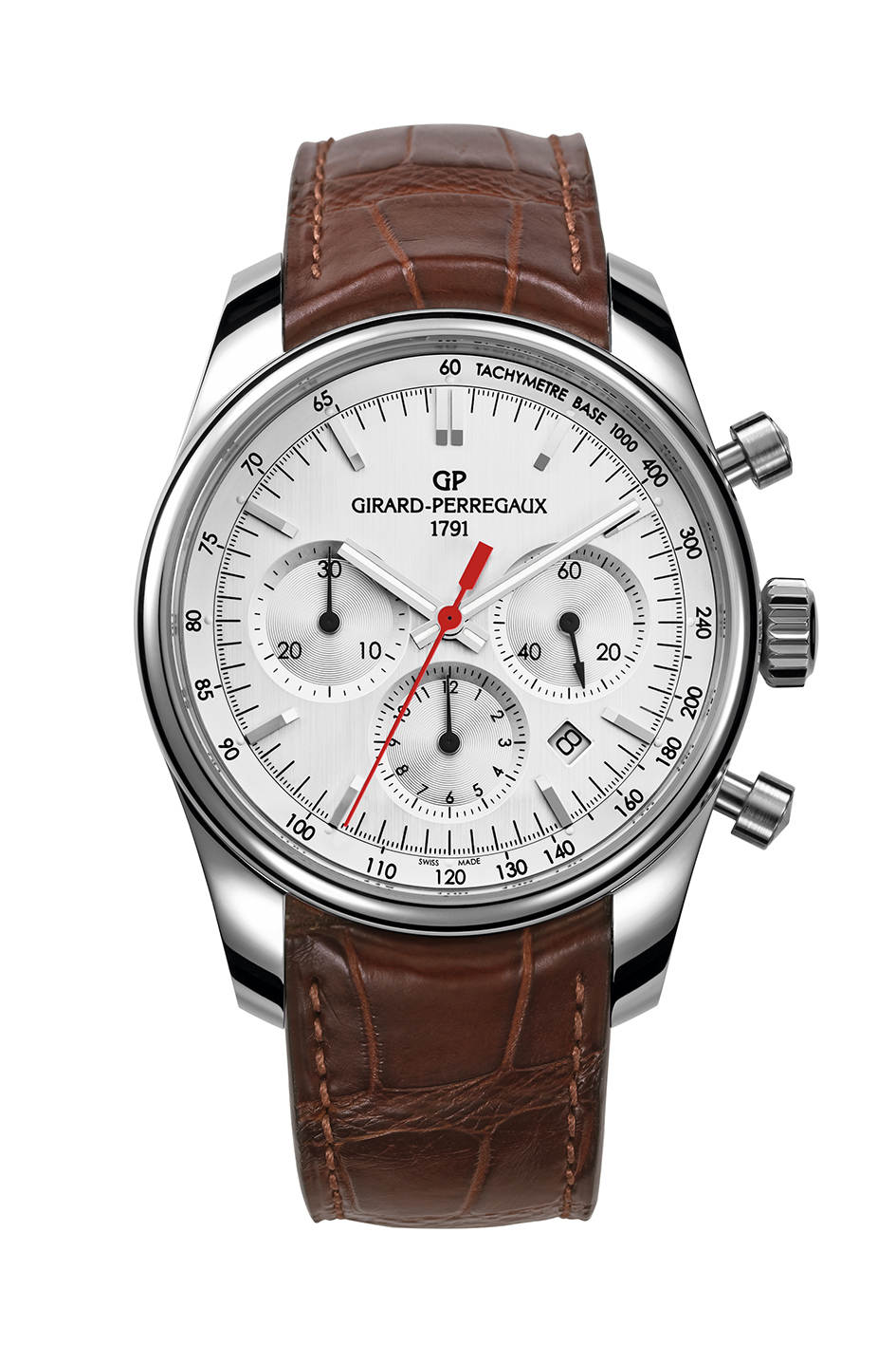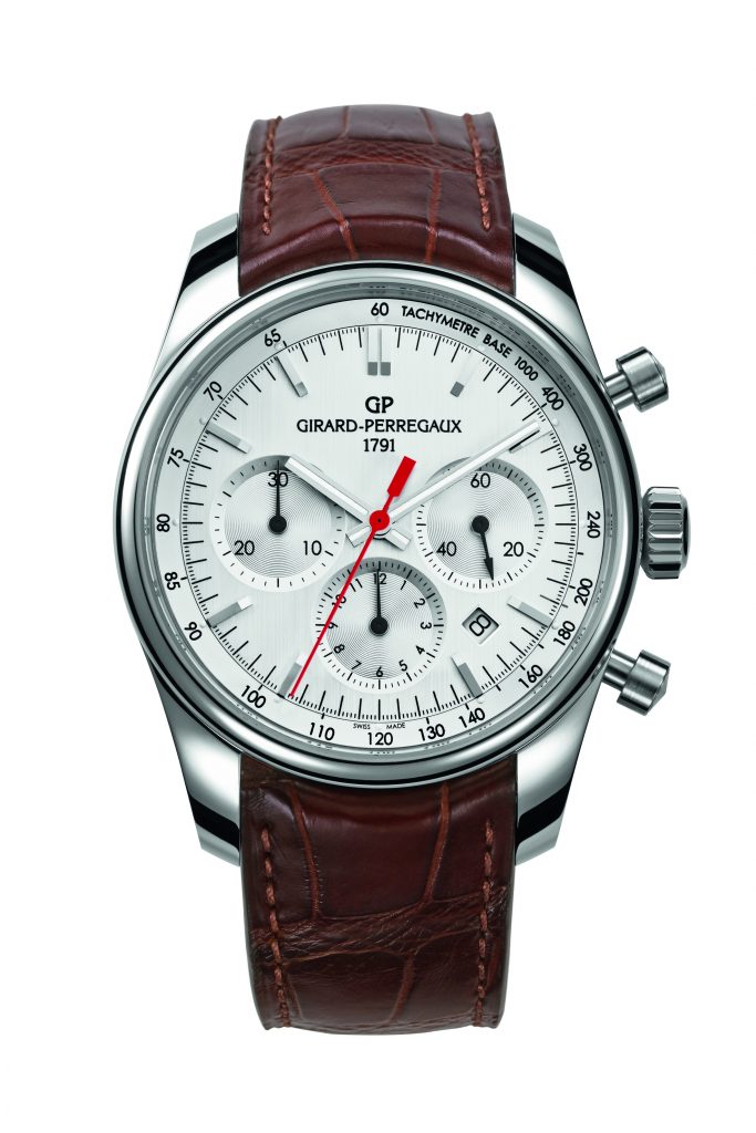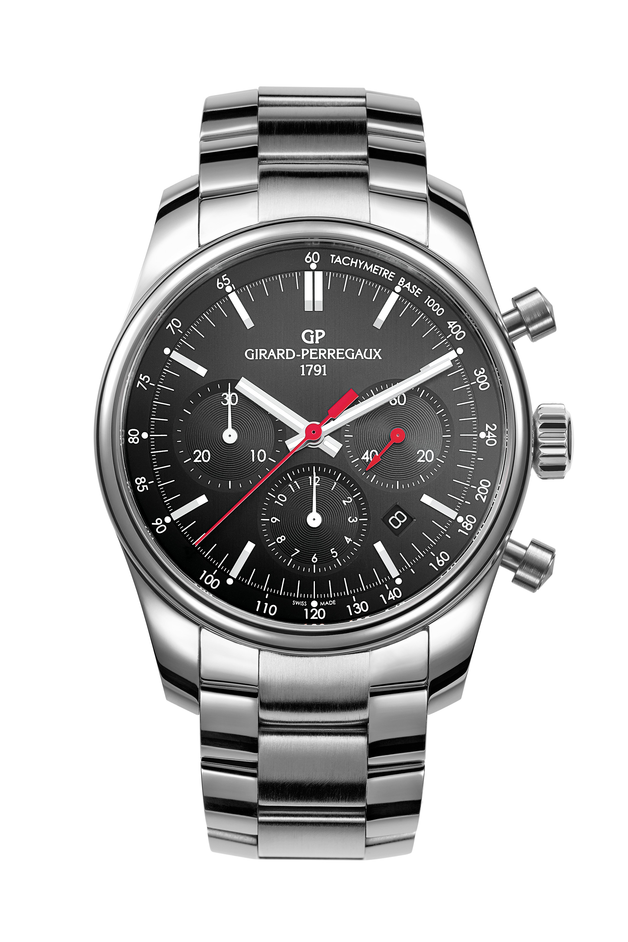 Symboles du dynamisme et de l’esprit d’en- treprise, ces instruments ont évolué au fil des décennies pour passer au poignet dans le cou- rant des années 1920-1930. dès cette période, l’expertise de la Manufacture a permis la mise au point des chronographes de sports réputés pour leur fiabilité et leur robustesse. durant les « fifties » Girard-Perregaux a produit des chro- nographes pensés pour répondre aux besoins des ingénieurs. Puis, au début des « Sixties », la Maison a lancé des instruments de mesure des temps courts plus typés « sport », destinés à séduire les jeunes générations en quête de garde-temps susceptibles de mesurer les per- formances individuelles. Le chronographe trois compteurs connu alors sous le nom de « ready- Go » et plus spécialement dédié aux pilotes de rallyes ou de moto, rencontrait alors un grand succès.