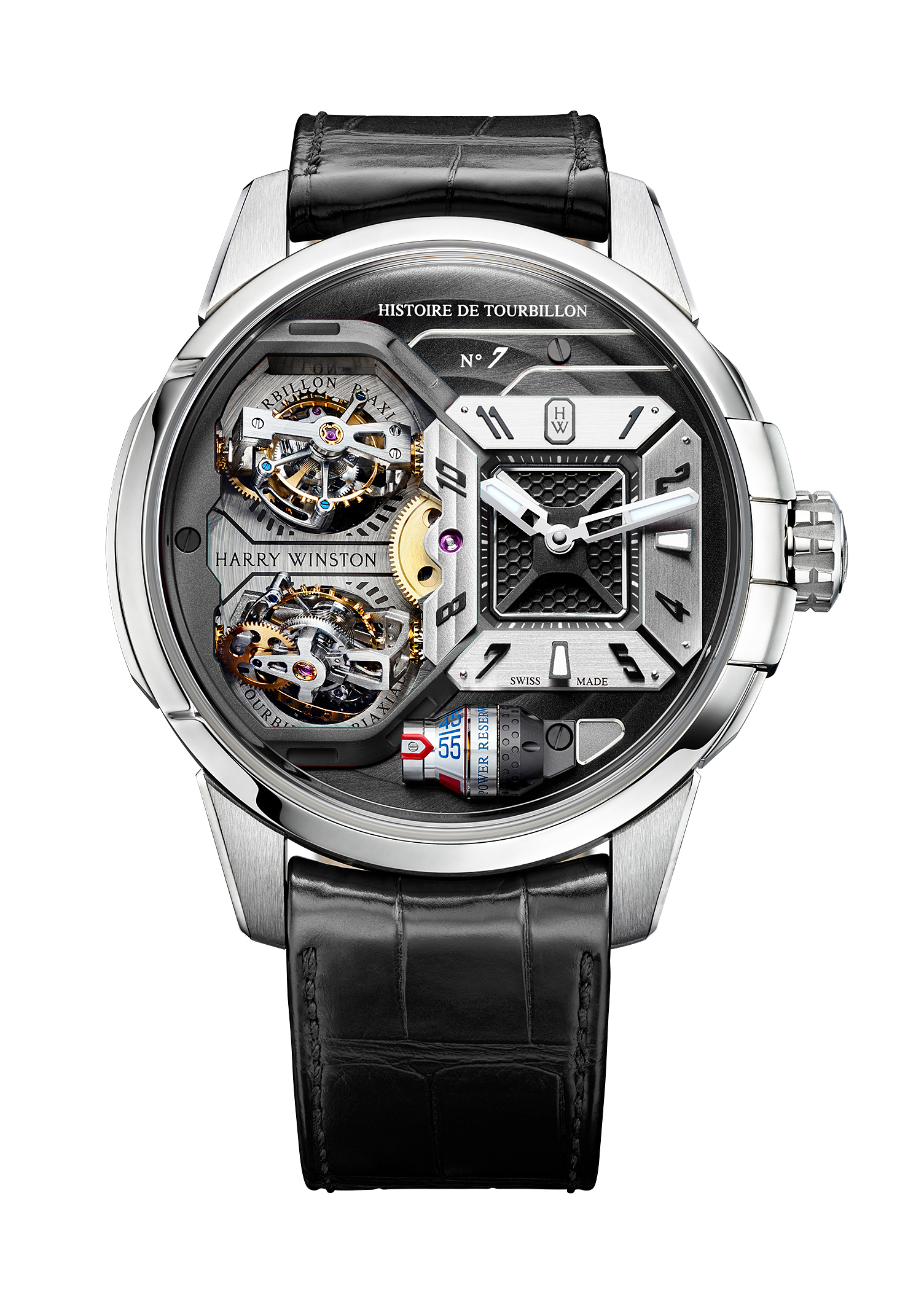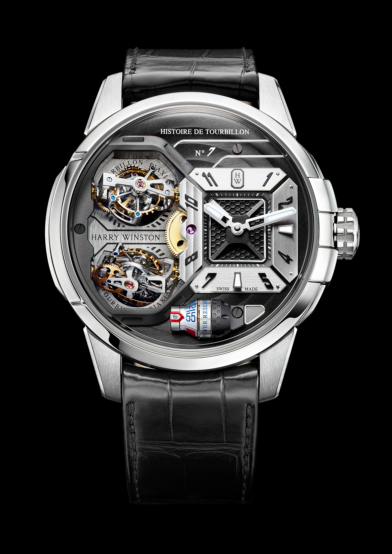 Pour la septième année consécutive, Harry Winston dévoile un nouvel accomplissement de Haute Horlogerie contemporaine. Doté de deux tourbillons bi- axiaux, le garde-temps Histoire de Tourbillon 7 franchit une nouvelle étape dans l’audace et le défi des conventions. En poussant encore plus loin le curseur de la liberté de création, de la complexité et de l’impact graphique, Harry Winston démontre sa capacité à étonner et ses savoir-faire innovants. Résolument fidèle à sa collection dédiée au tourbillon, Harry Winston affirme à nouveau sa maîtrise des complications et une détermination horlogère sans faille.