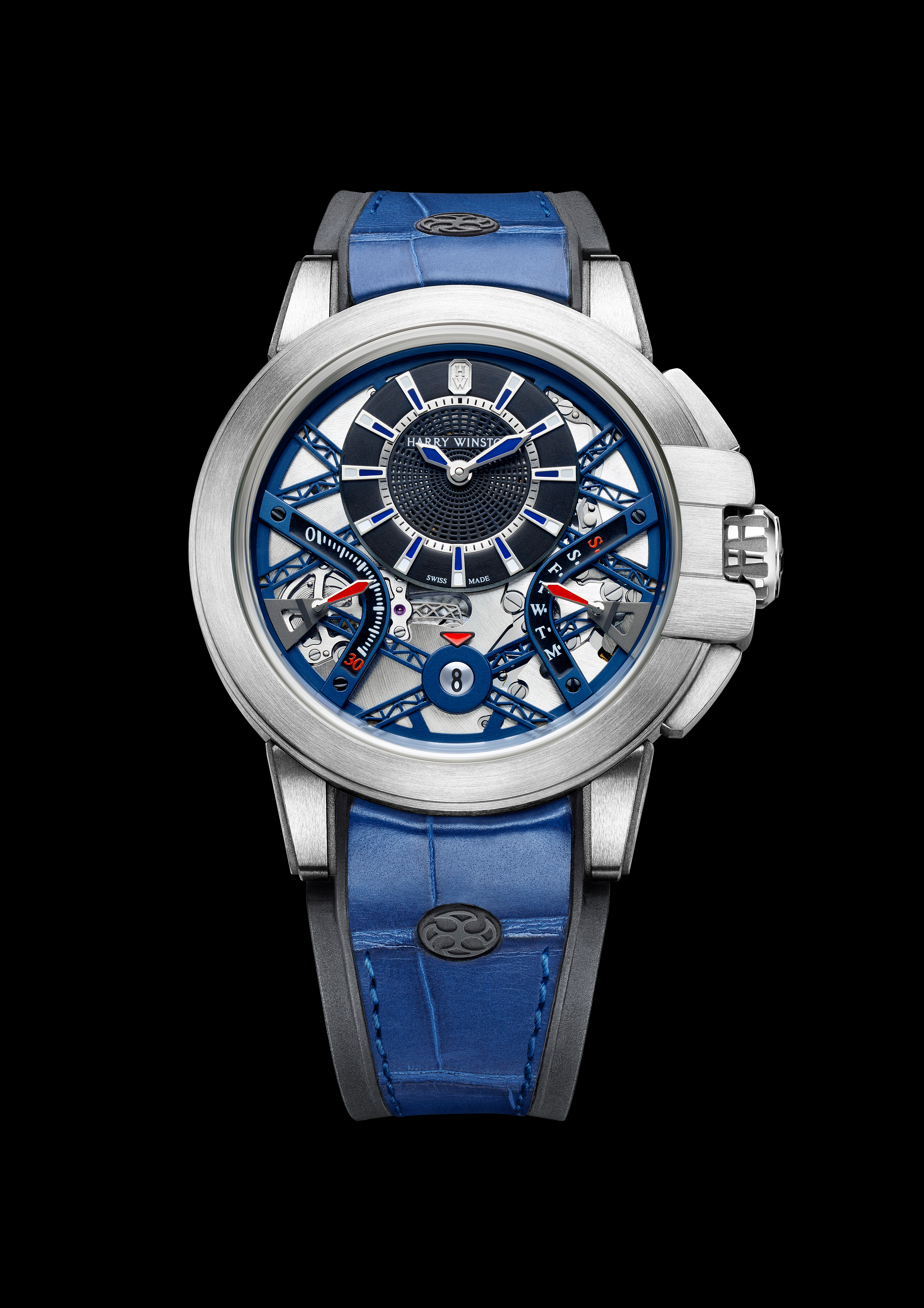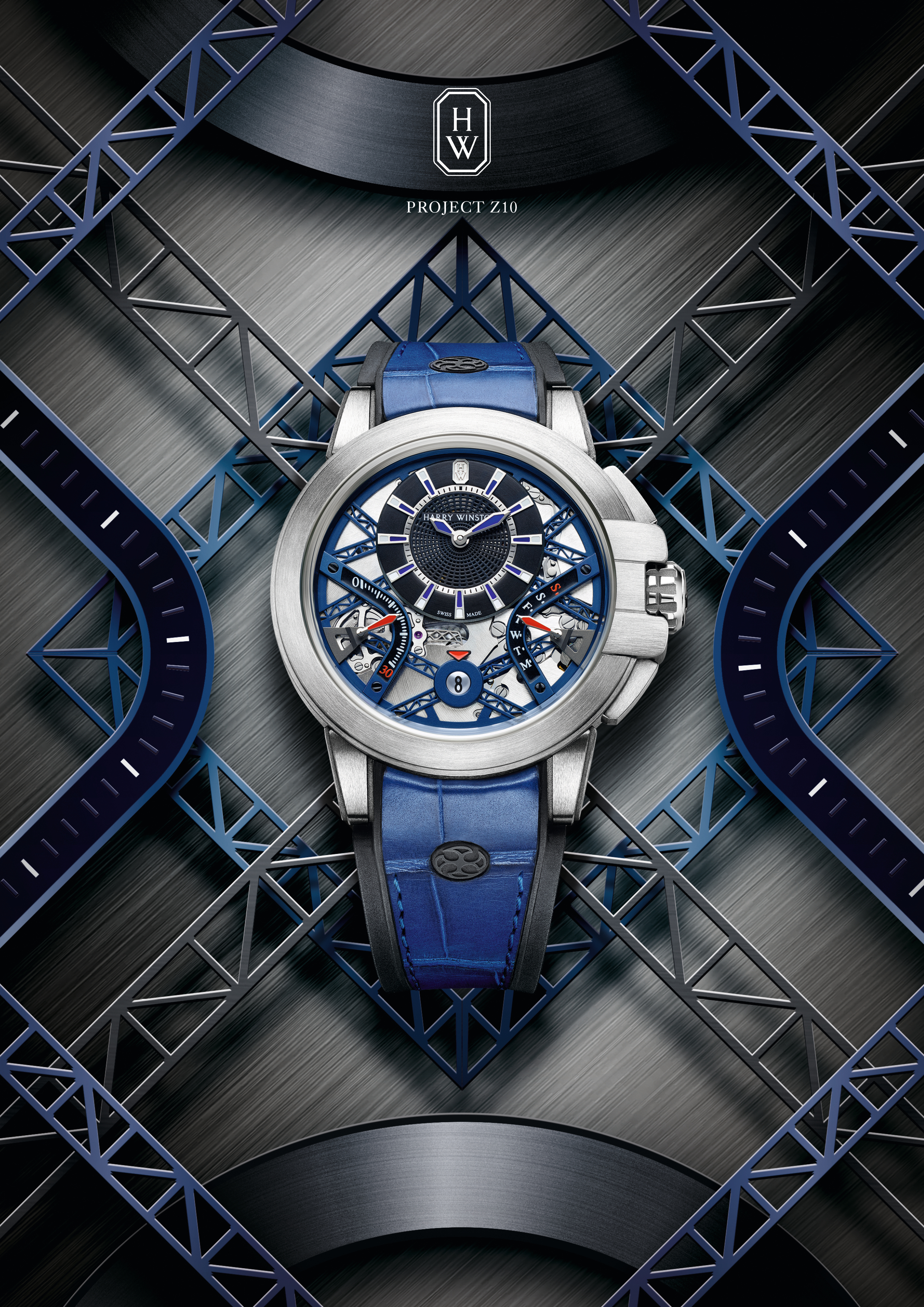 Légère, technique, saisissante, Project Z10 de Harry Winston prolonge une grande lignée de garde-temps d’exception. Avec son cadran ajouré composé d’une structure en aluminium éloxé bleu, Project Z10 adopte une esthétique mécanique poussée au maximum. Elle met en avant un double affichage rétrograde dans un écrin ultra-léger. Sa boîte intégralement composée de ZaliumTM, alliage exclusif à la Maison Harry Winston, est tournée vers l’ergonomie et le confort. Garde-temps exclusif et à complication, il revendique sa forte technicité en restant pensé pour l’action et le quotidien.