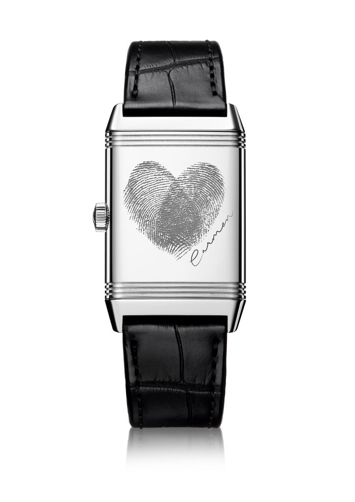 Photos de gauche à droite: Montre Reverso Classic Medium de Jaeger-LeCoultre gravée du coeur de Carmen Chaplin pour le Festival International du Film de Venise 2016.