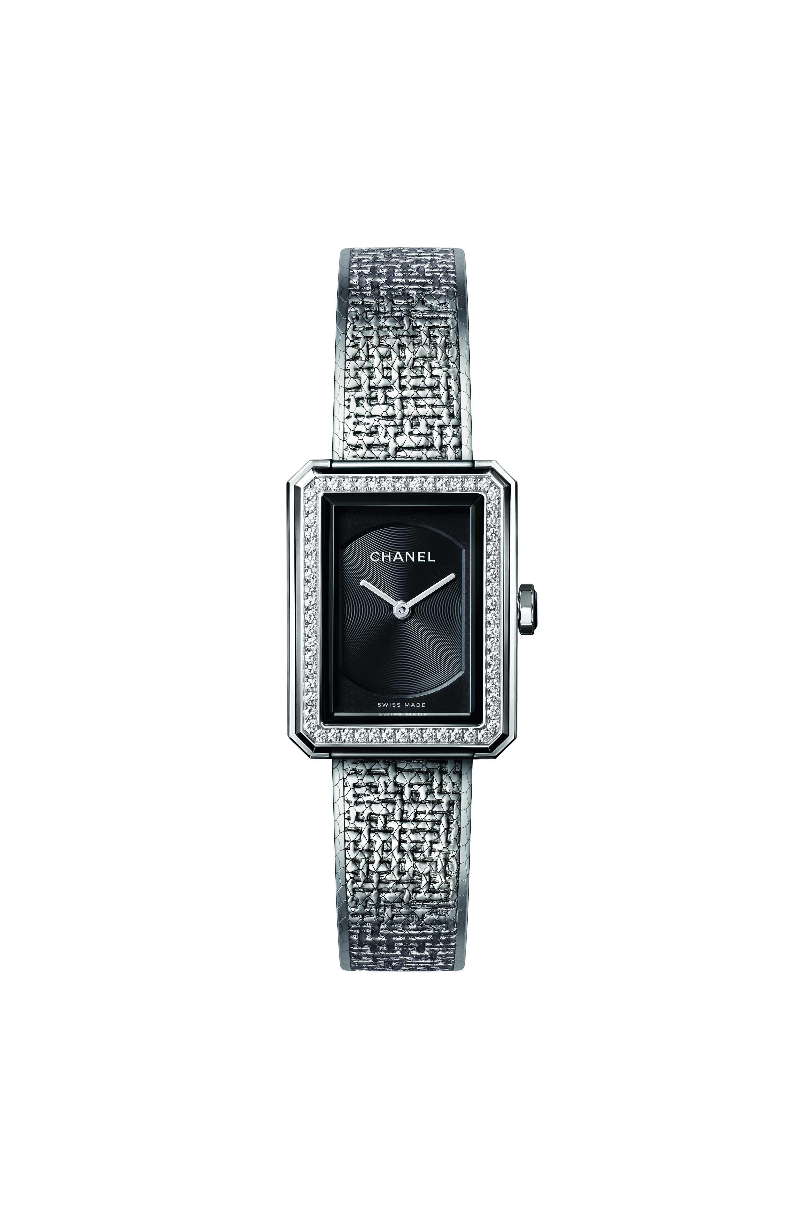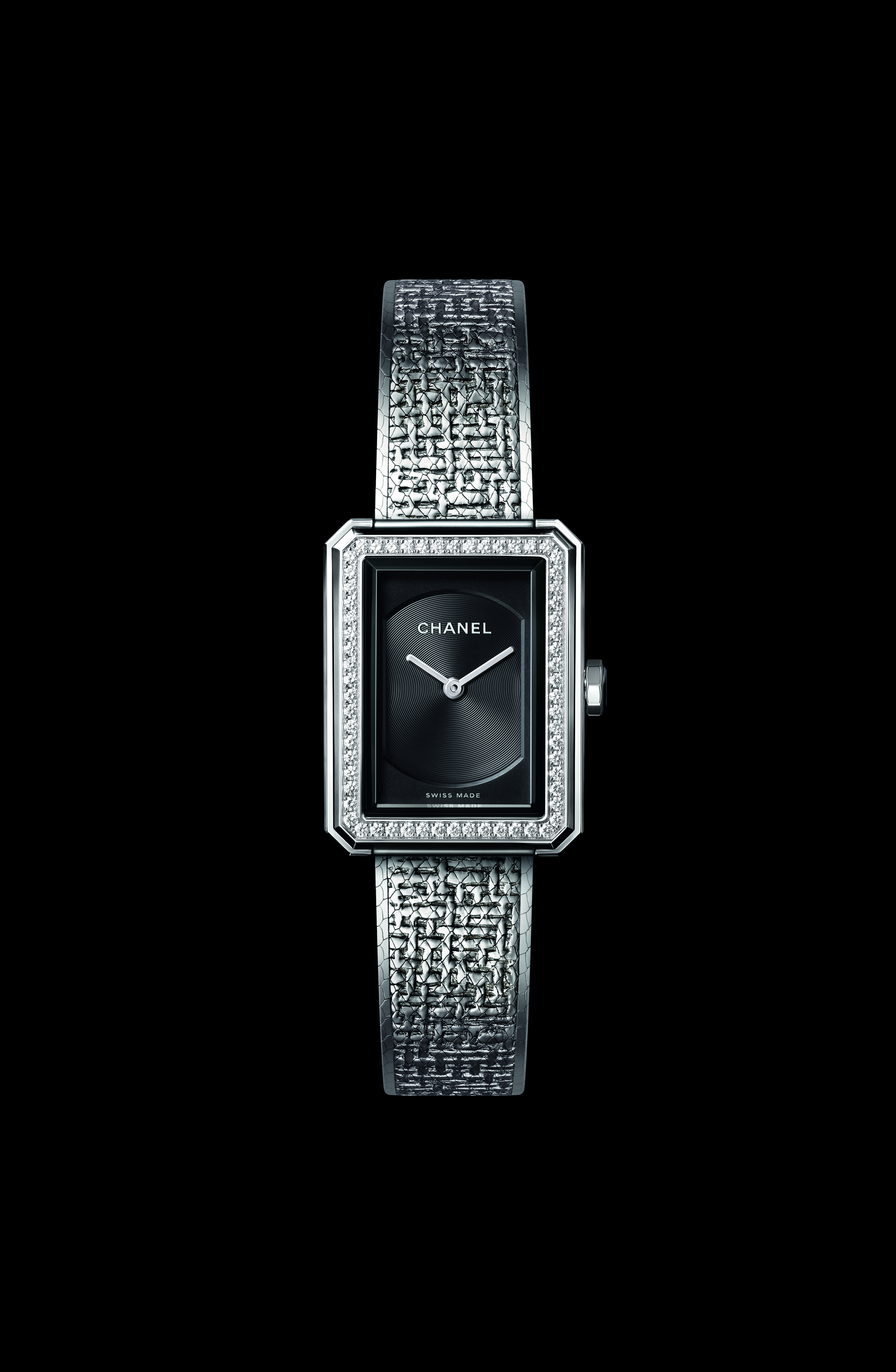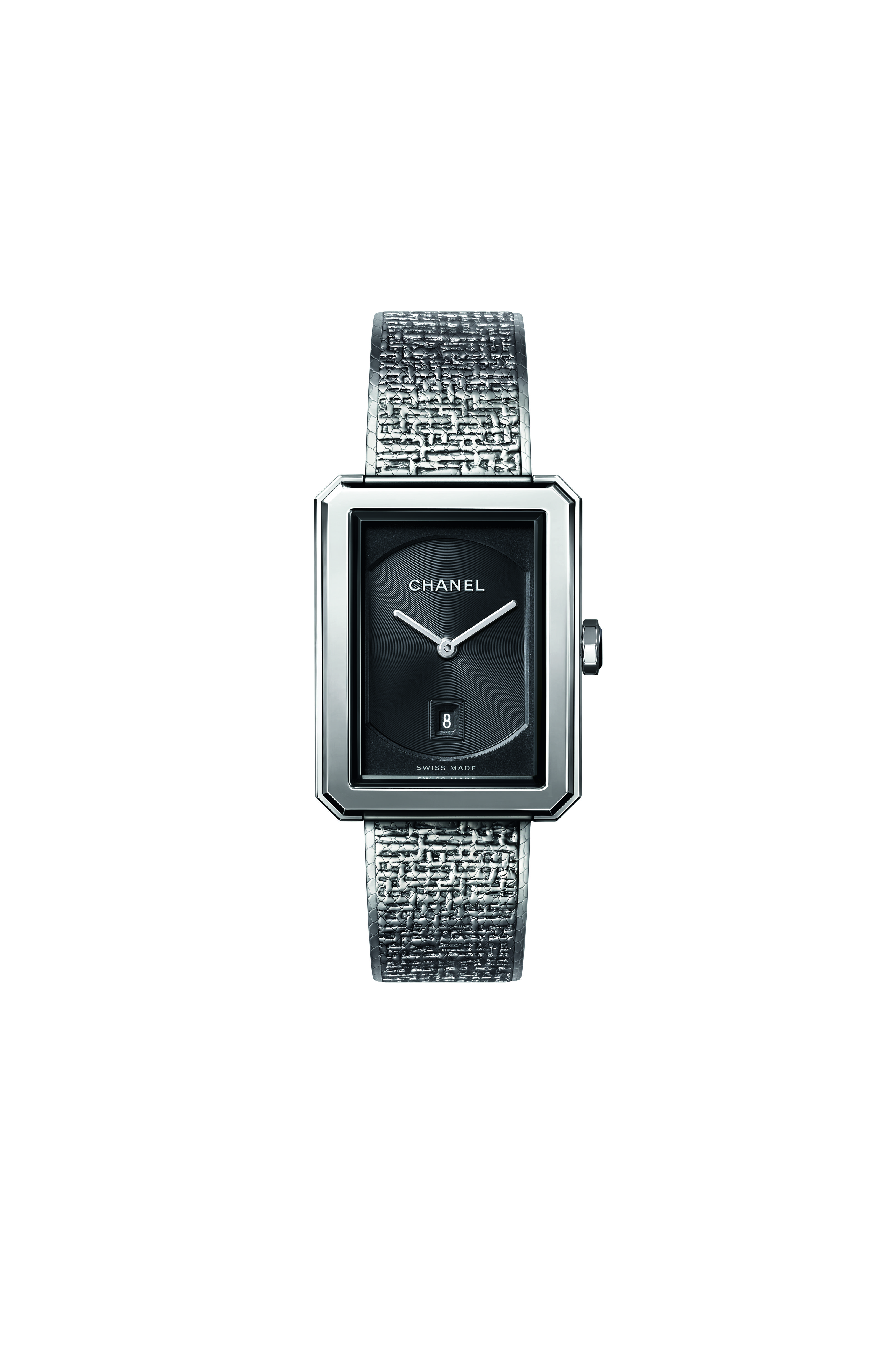 CHANEL présente pour la première fois, un bracelet métal reprenant un motif Tweed pour la montre BOY.FRIEND.