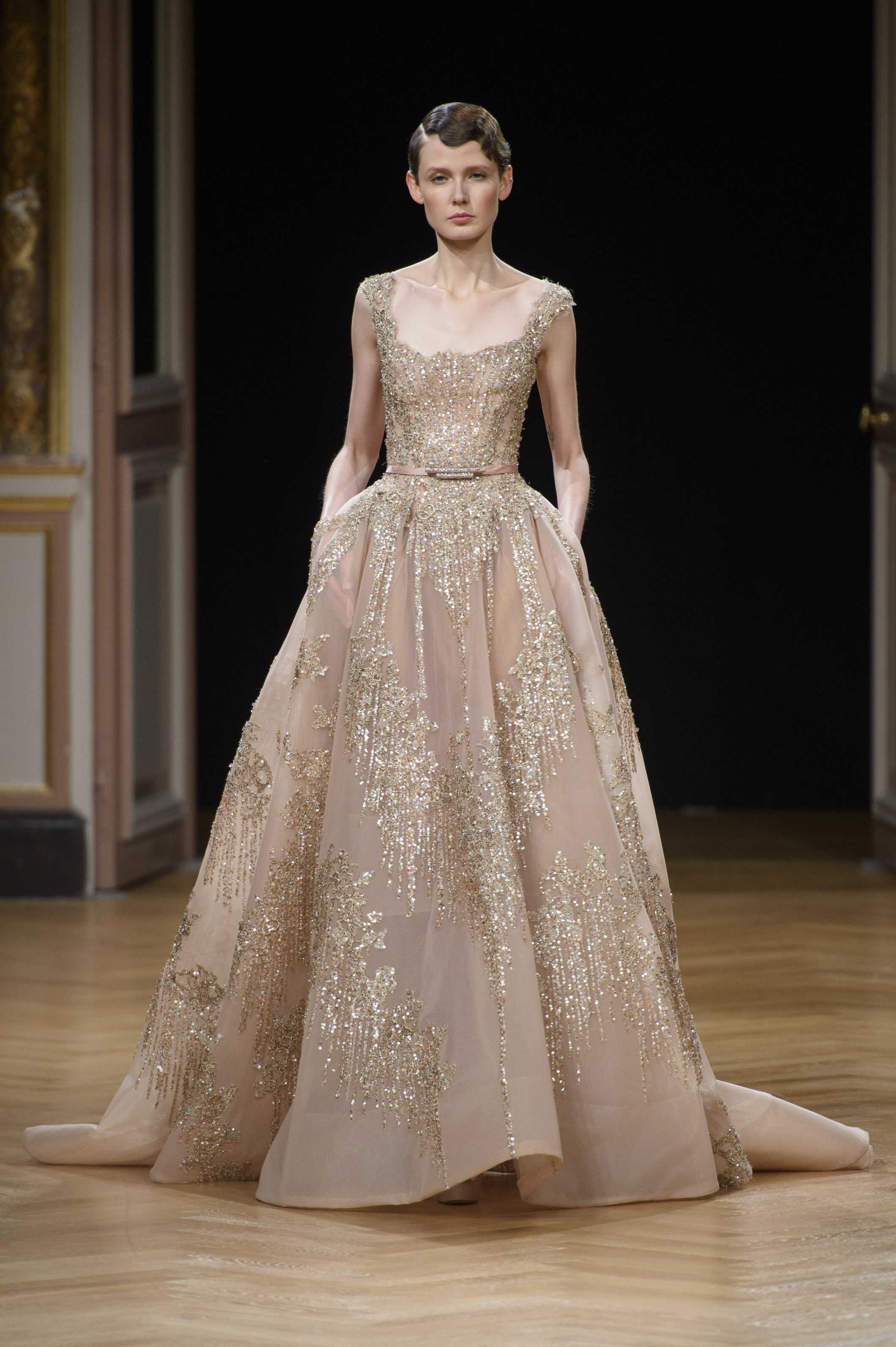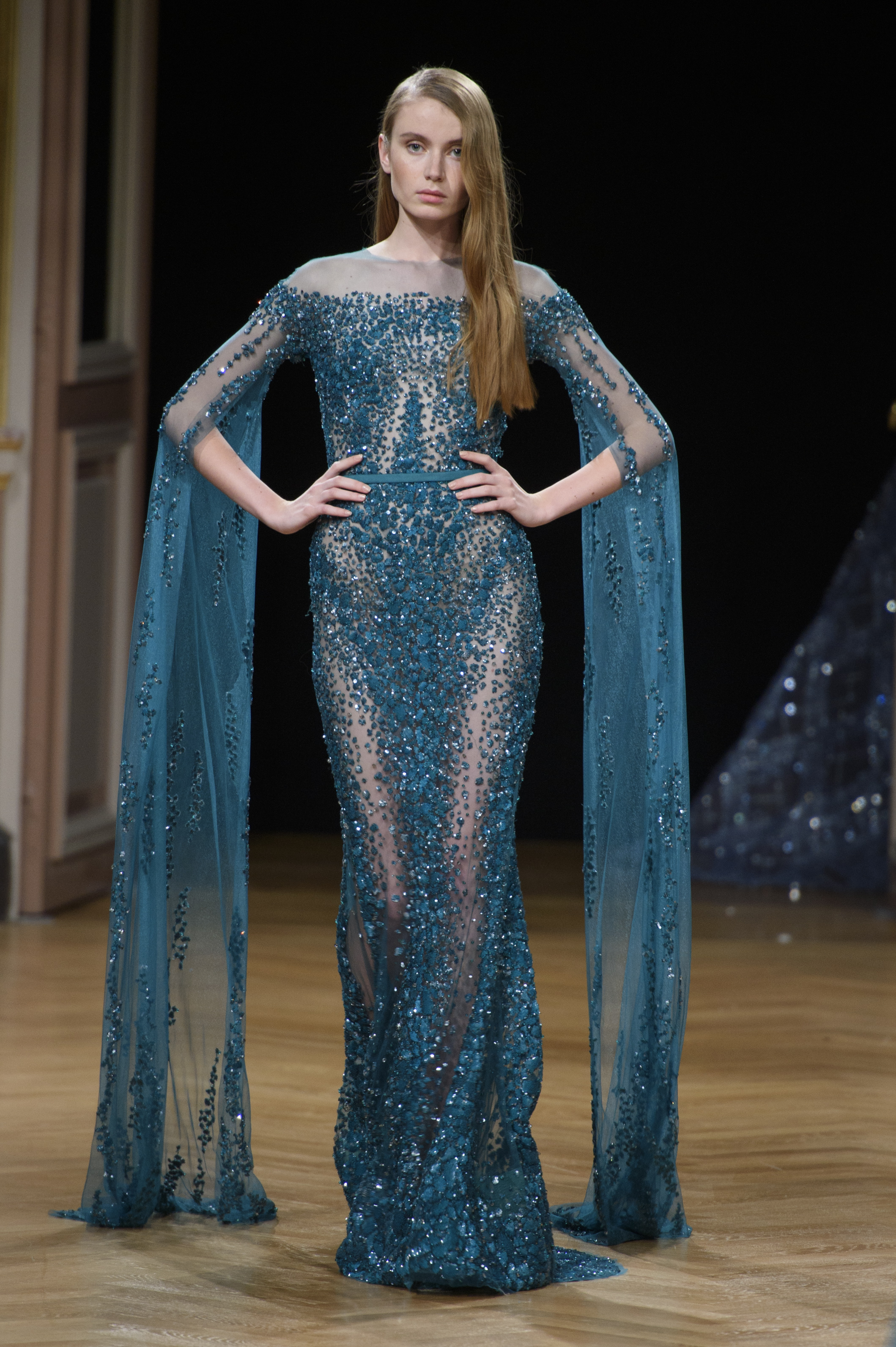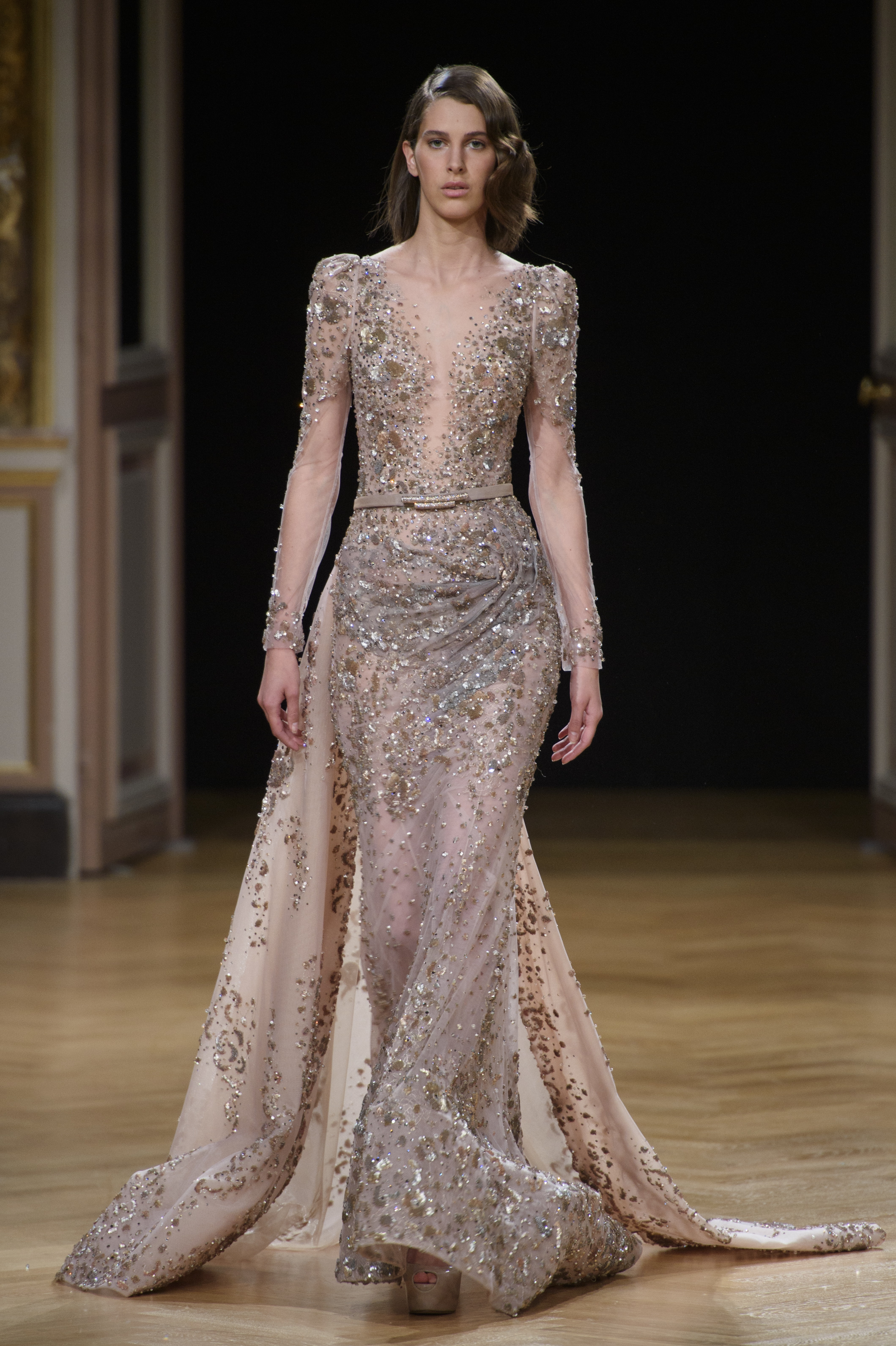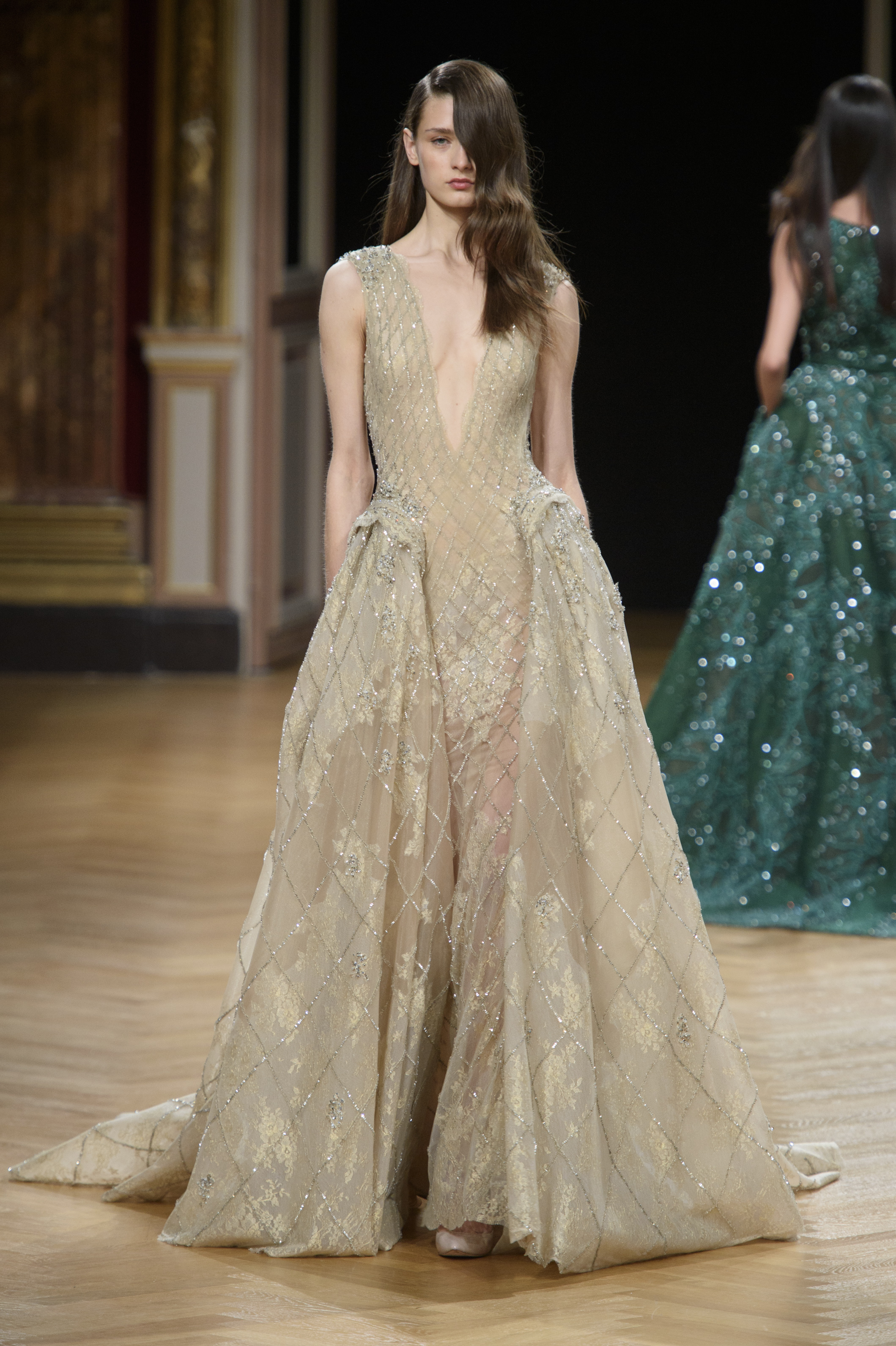 La femme Ziad Nakad est féminine, élégante et sensuelle – ces mots lui collent à la peau. Envoûtante dans des robes royales près du corps, brodées avec finesse, c’est une femme forte, regorgeant de féminité.