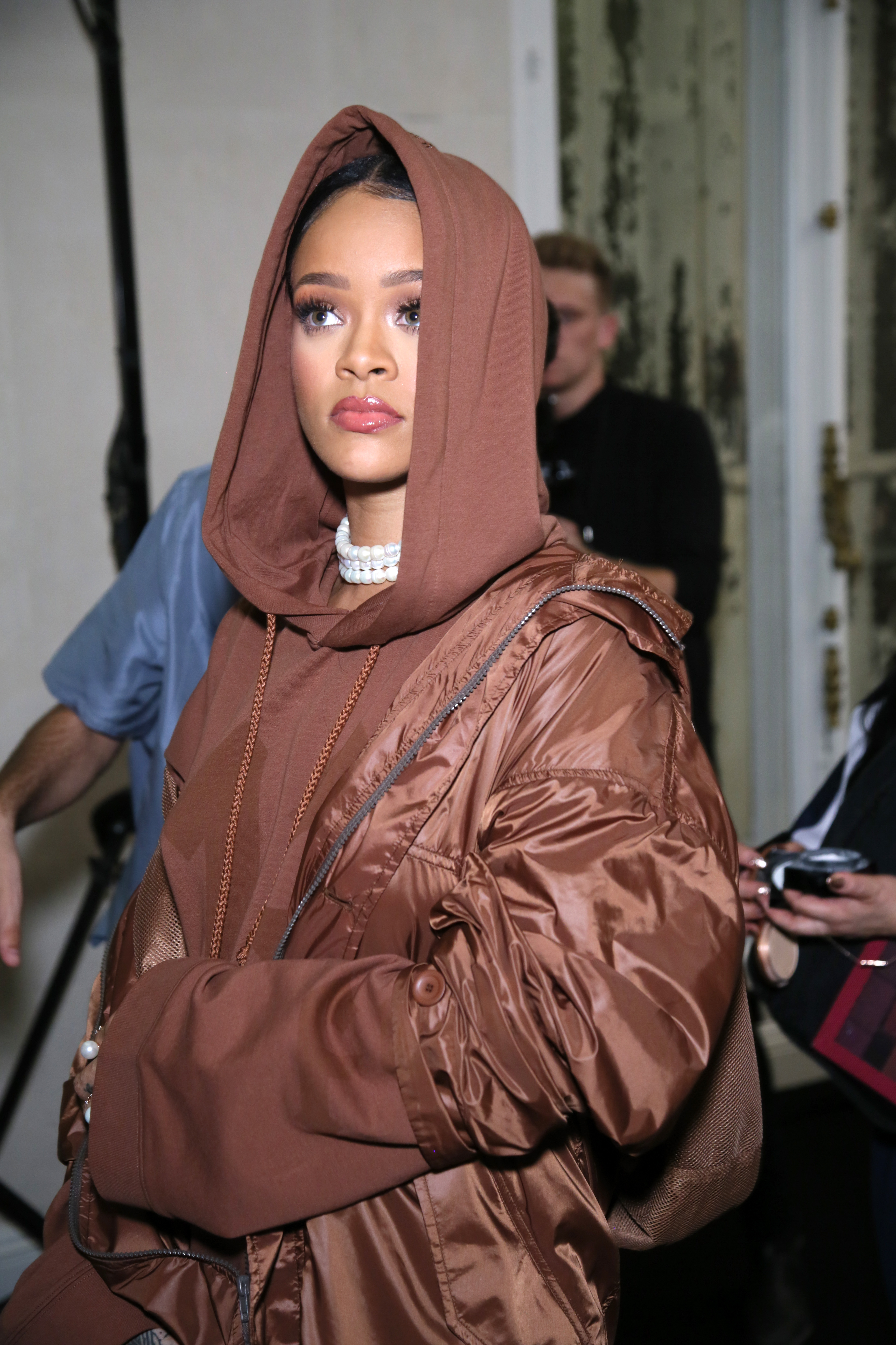 - PARIS, FRANCE – SEPTEMBER 28: Rihanna is seen backstage during FENTY x PUMA by Rihanna at Hotel Salomon de Rothschild on September 28, 2016 in Paris, France. (Photo by Victor Boyko/Getty Images for Fenty x Puma)