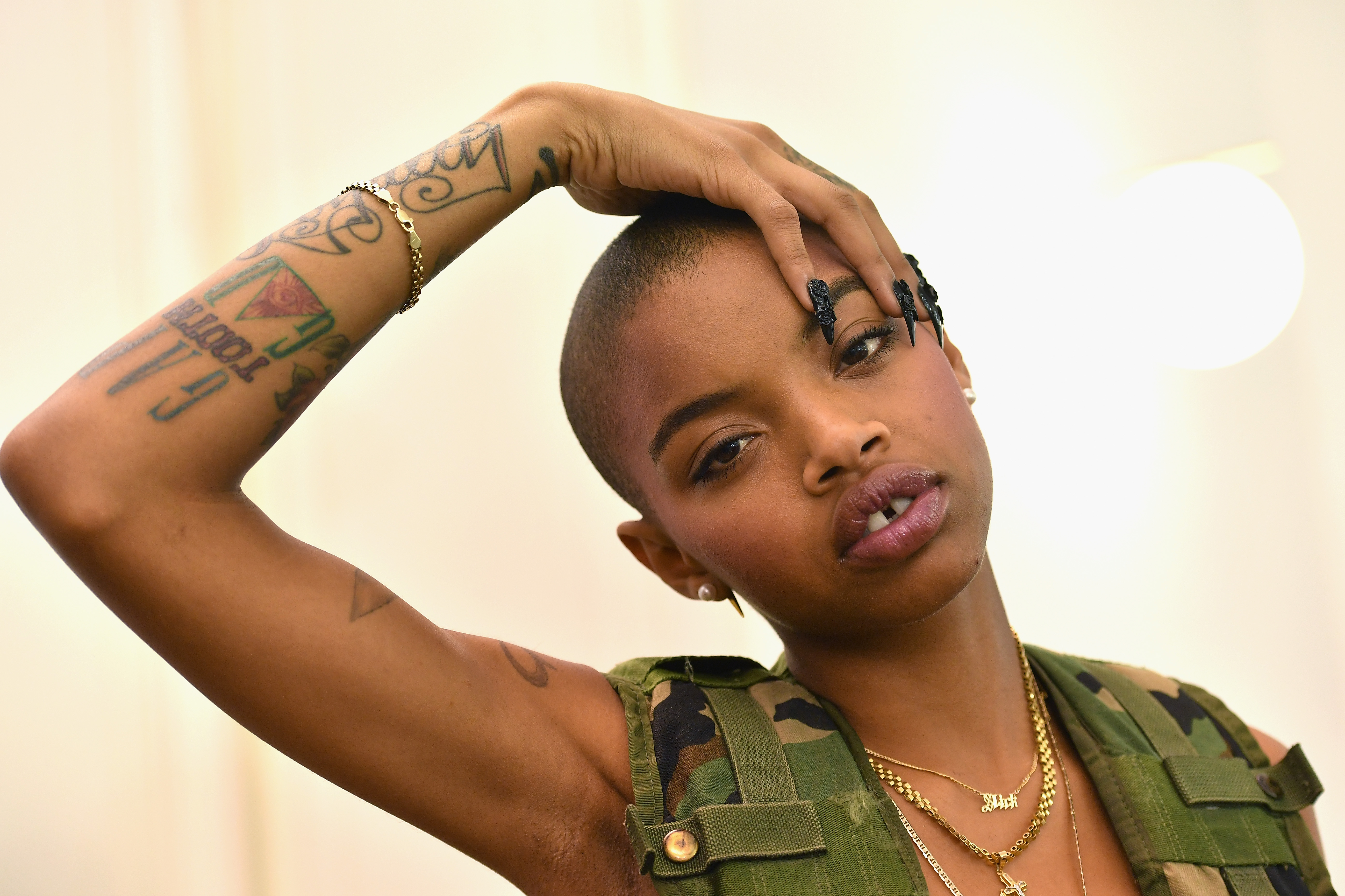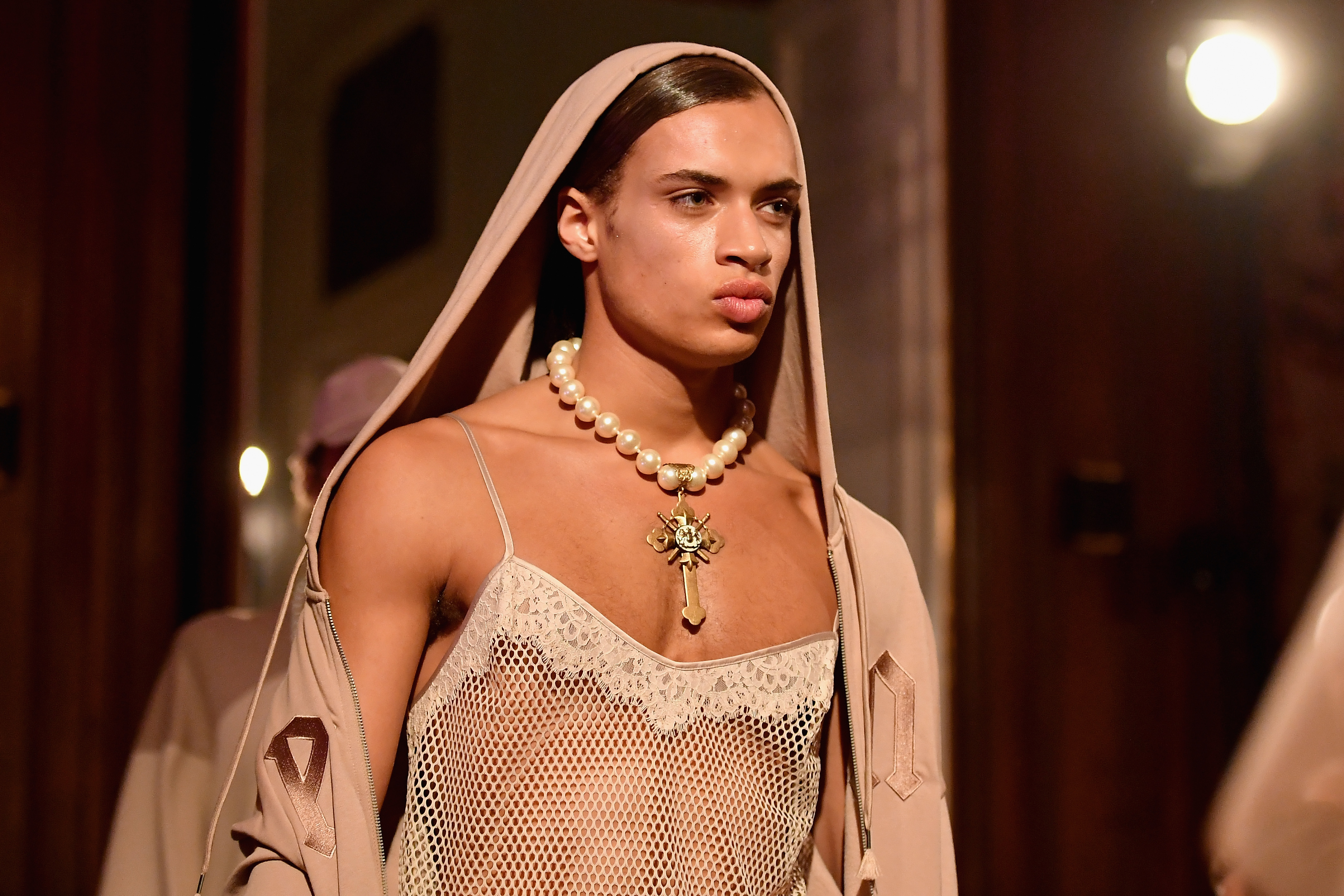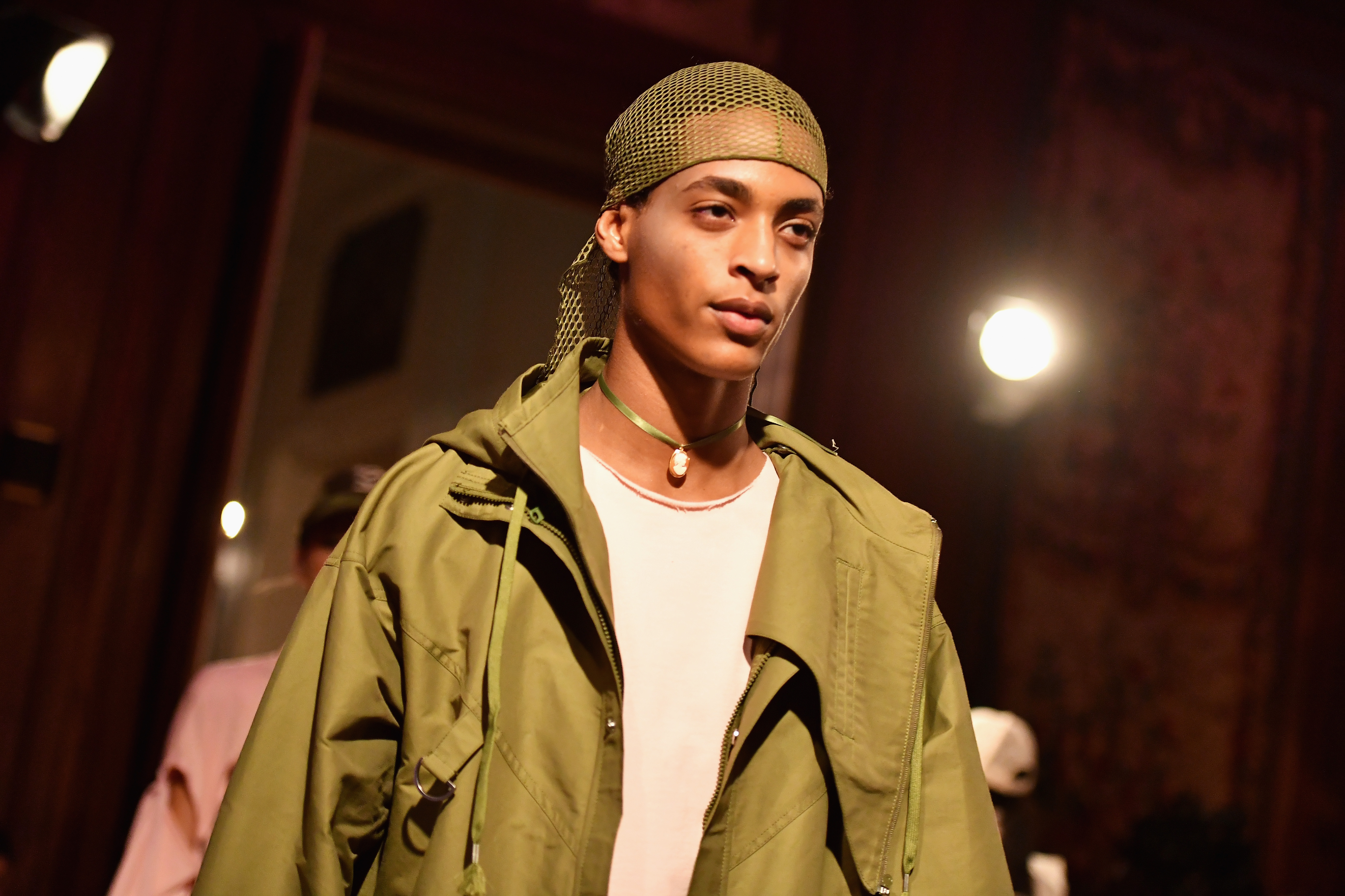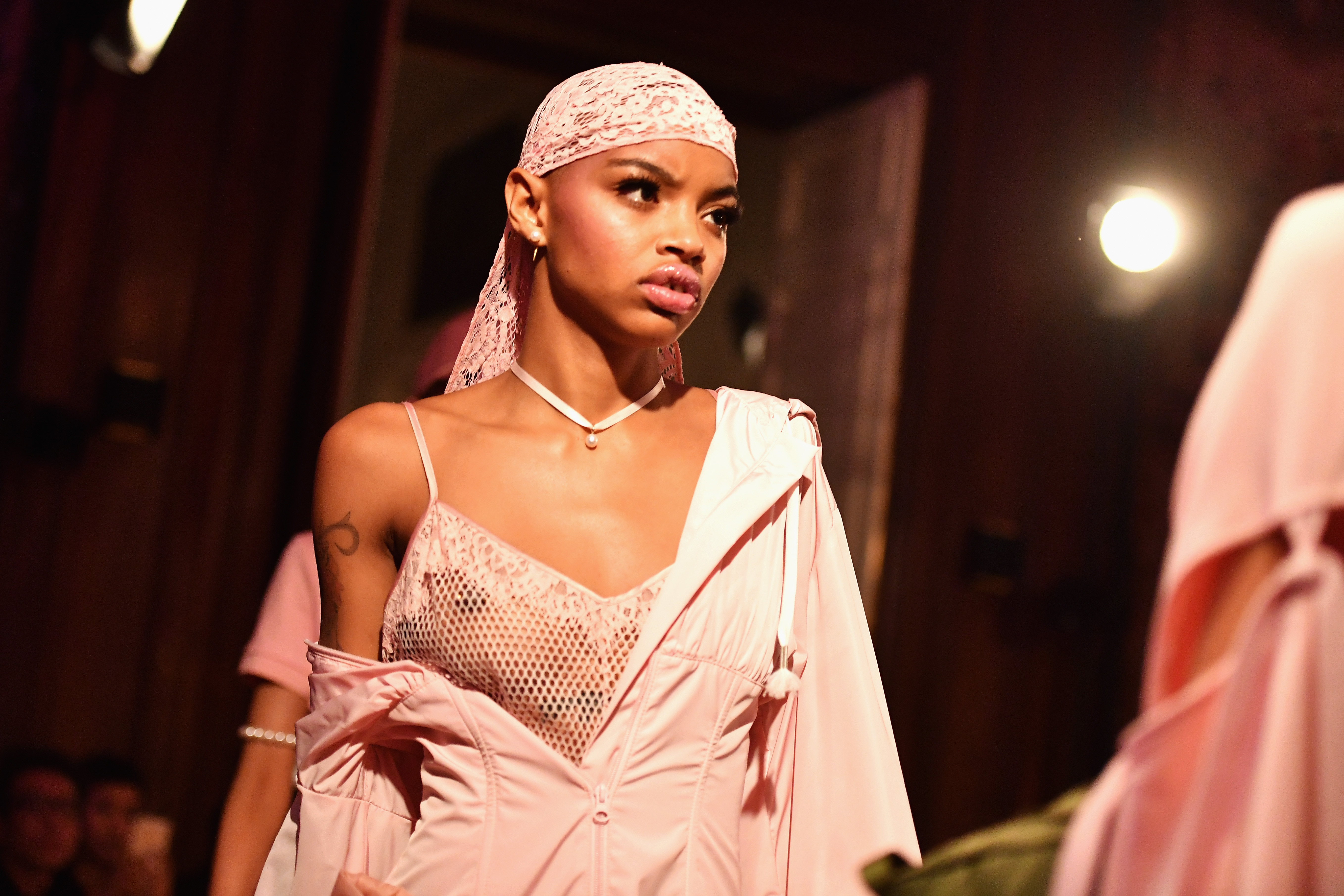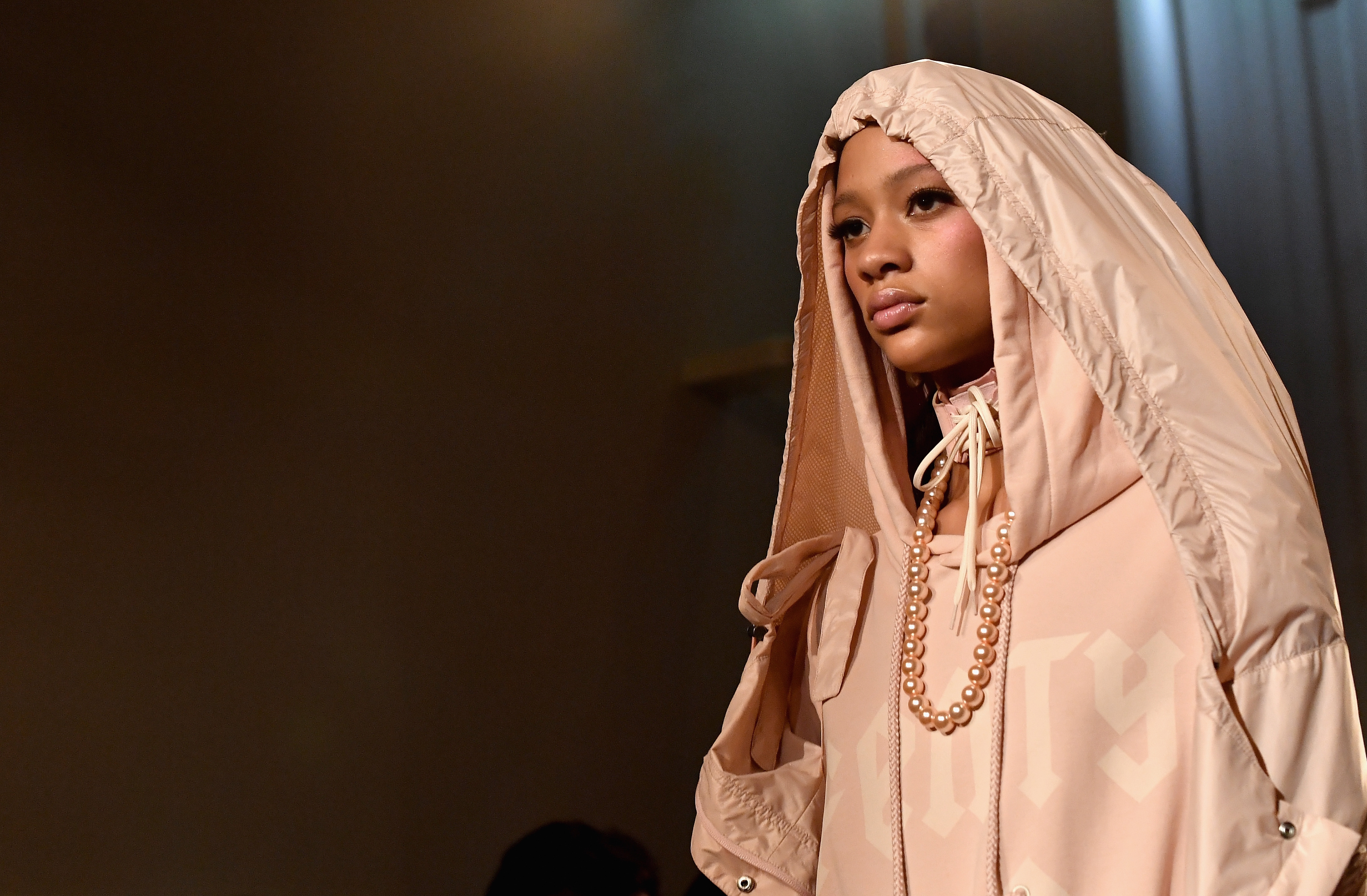 - PARIS, FRANCE – SEPTEMBER 28: A model poses backstage during FENTY x PUMA by Rihanna at Hotel Salomon de Rothschild on September 28, 2016 in Paris, France. (Photo by Victor Boyko/Getty Images for Fenty x Puma)