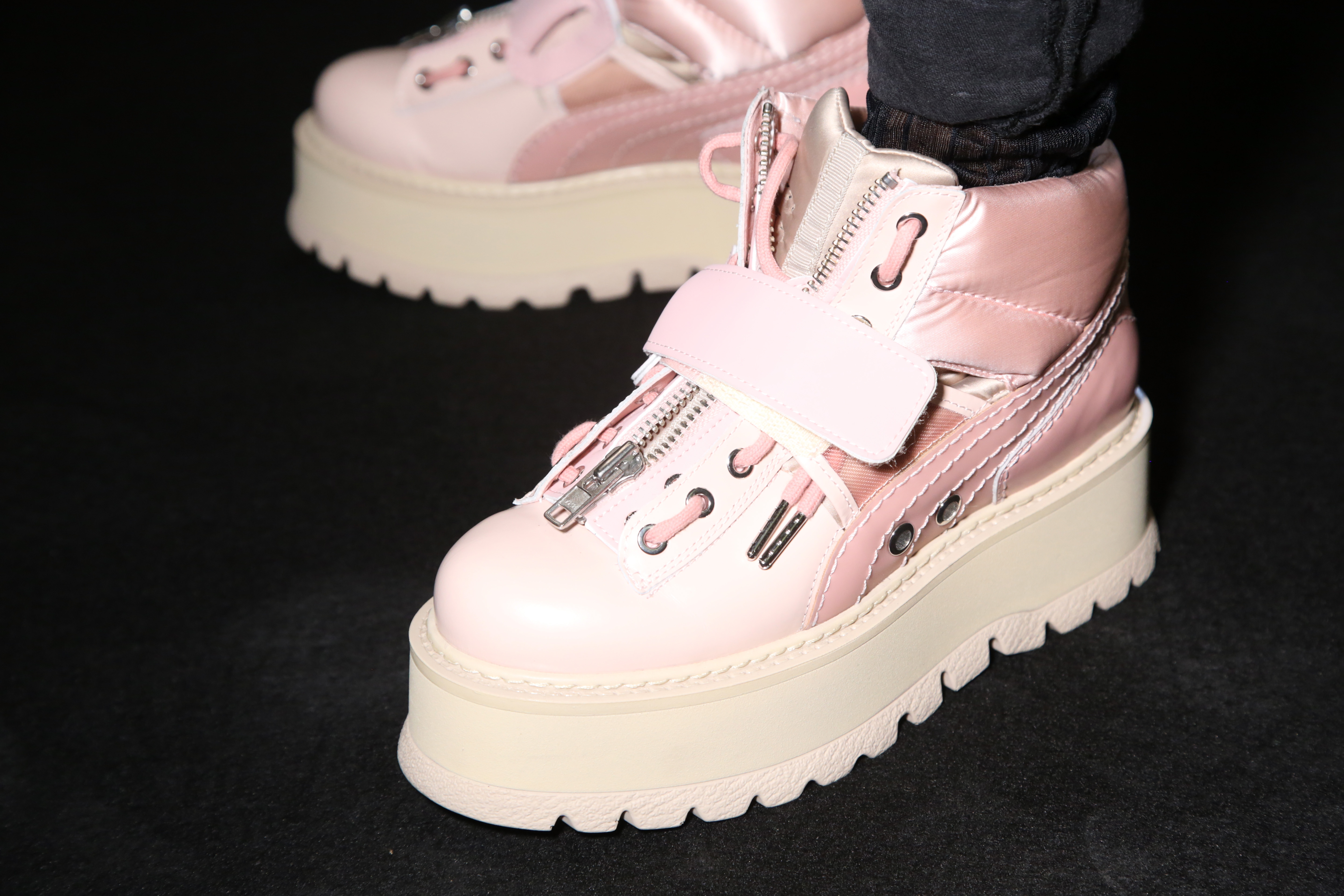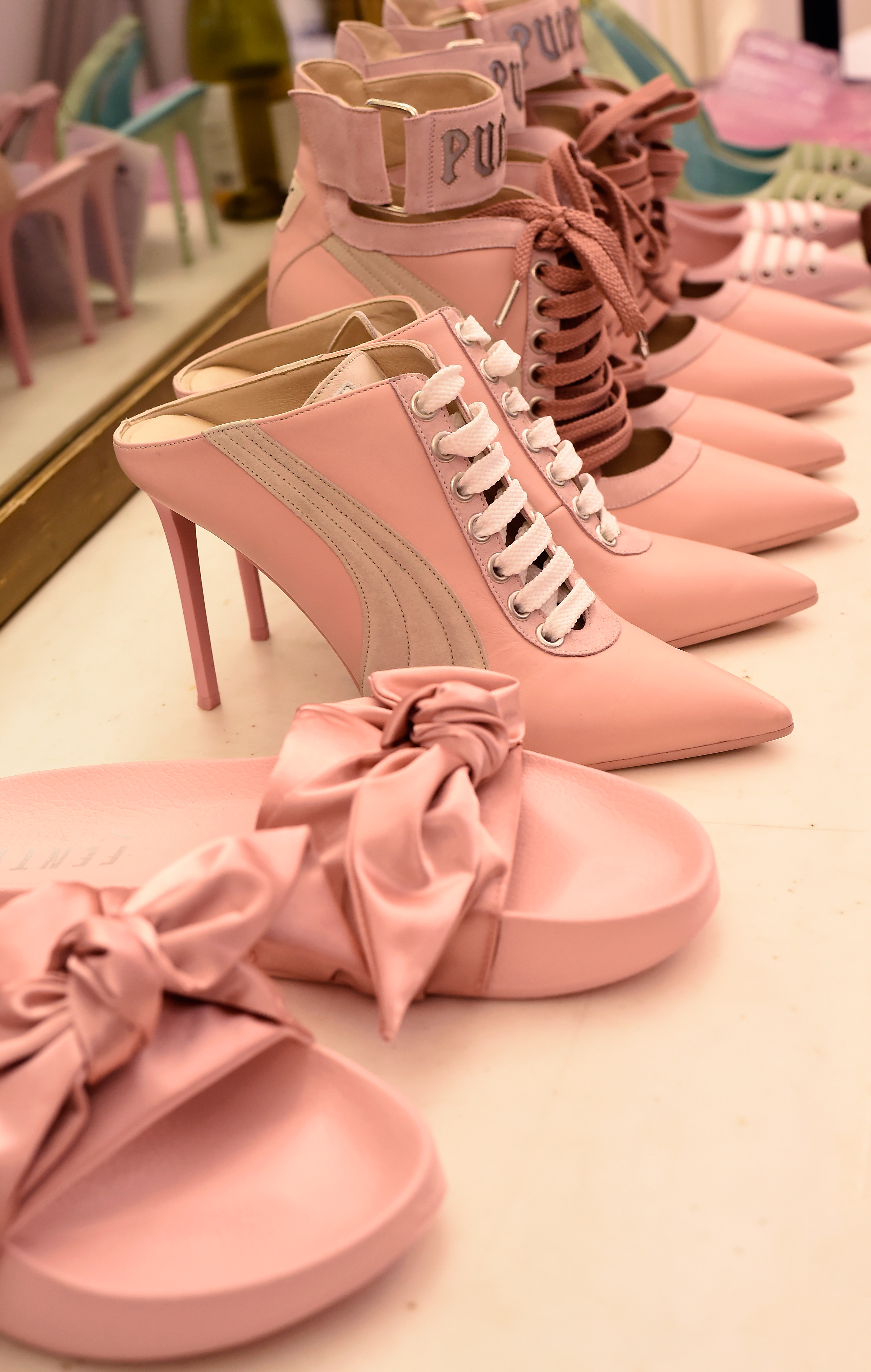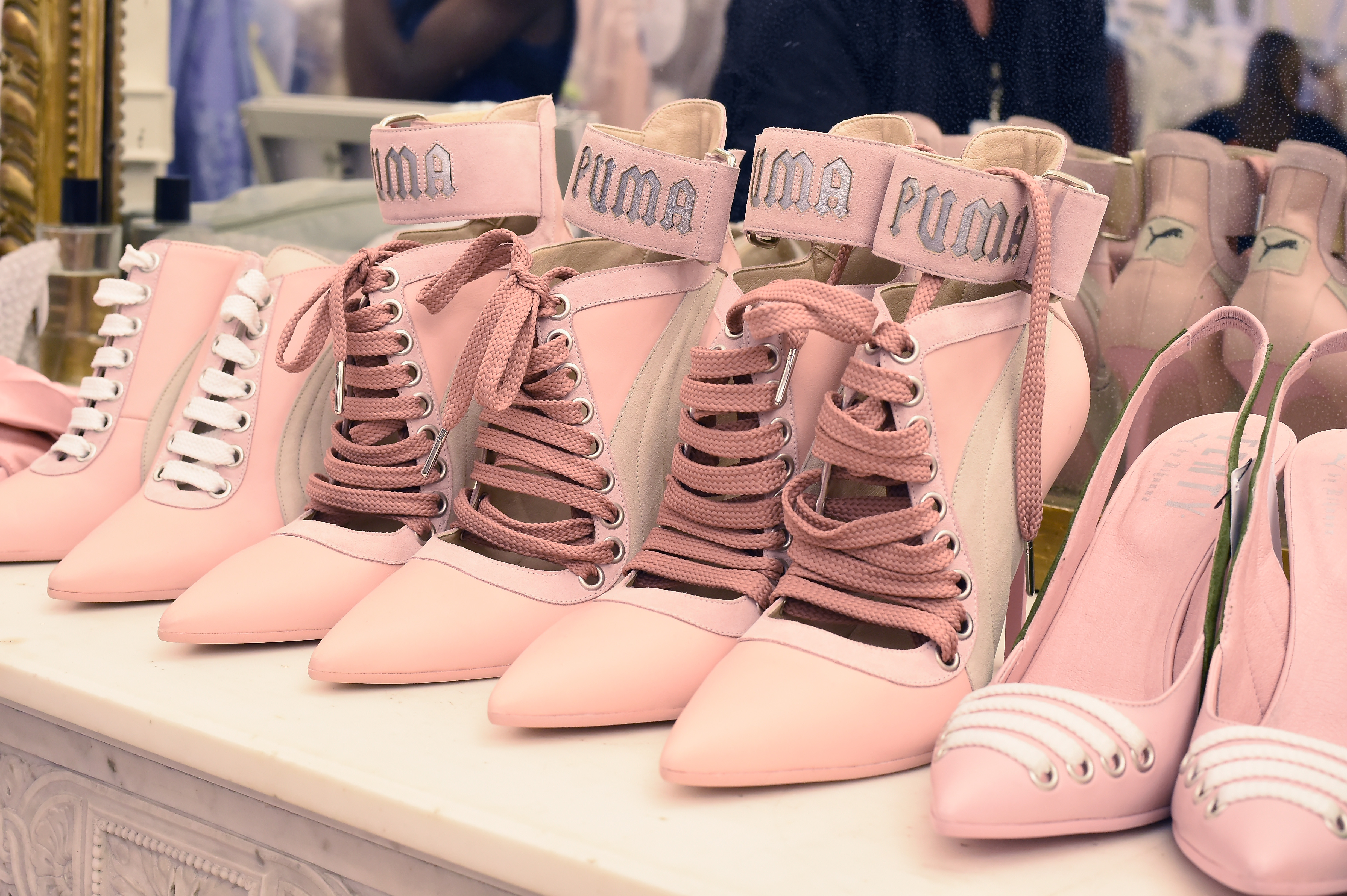 - PARIS, FRANCE – SEPTEMBER 28: Model’s shoes are seen backstage during FENTY x PUMA by Rihanna at Hotel Salomon de Rothschild on September 28, 2016 in Paris, France. (Photo by Victor Boyko/Getty Images for Fenty x Puma)