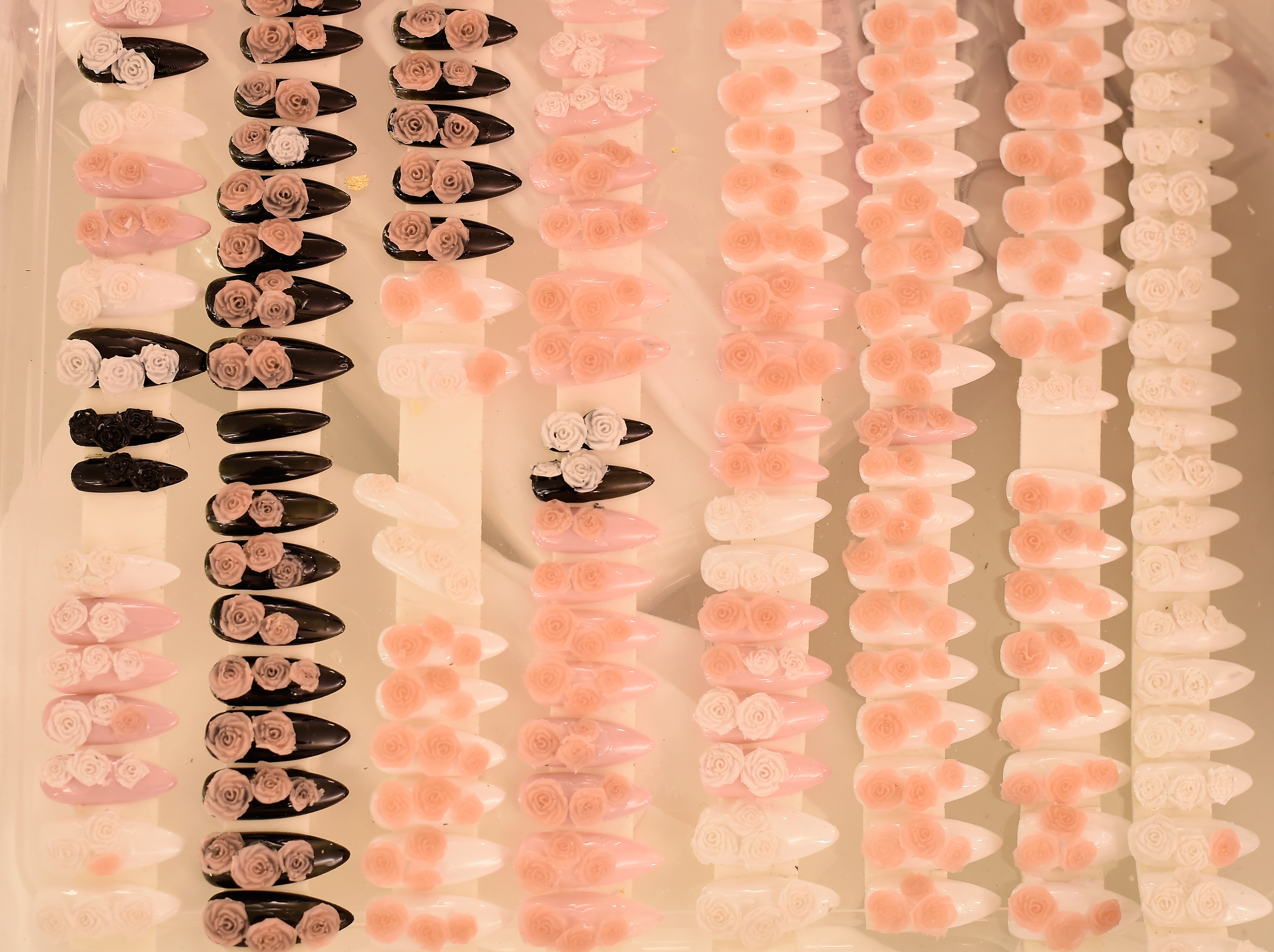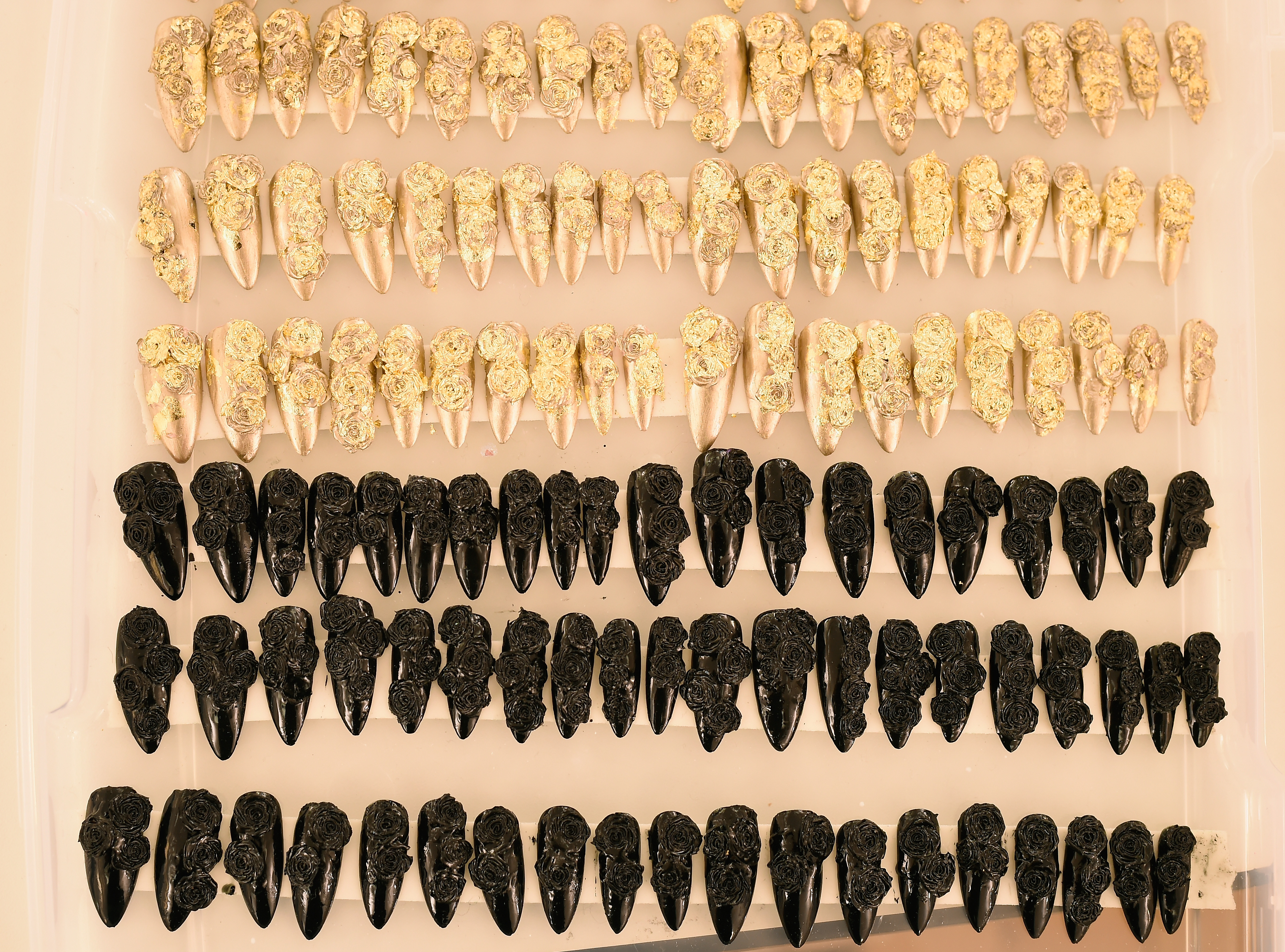 - PARIS, FRANCE – SEPTEMBER 28: False nails are seen backstage during FENTY x PUMA by Rihanna at Hotel Salomon de Rothschild on September 28, 2016 in Paris, France. (Photo by Victor Boyko/Getty Images for Fenty x Puma)