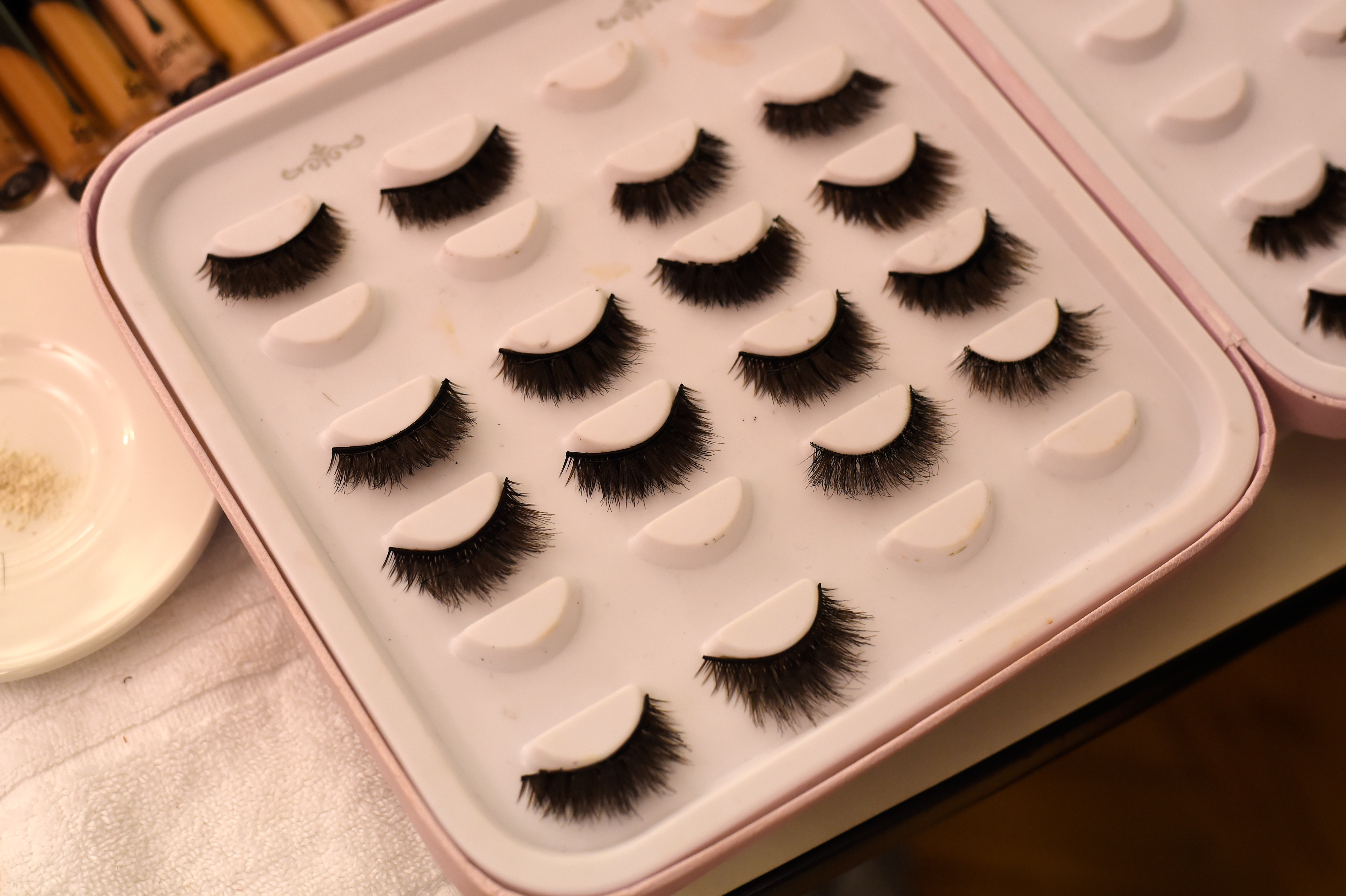 - PARIS, FRANCE – SEPTEMBER 28: False eyelashes are seen backstage during FENTY x PUMA by Rihanna at Hotel Salomon de Rothschild on September 28, 2016 in Paris, France. (Photo by Victor Boyko/Getty Images for Fenty x Puma)