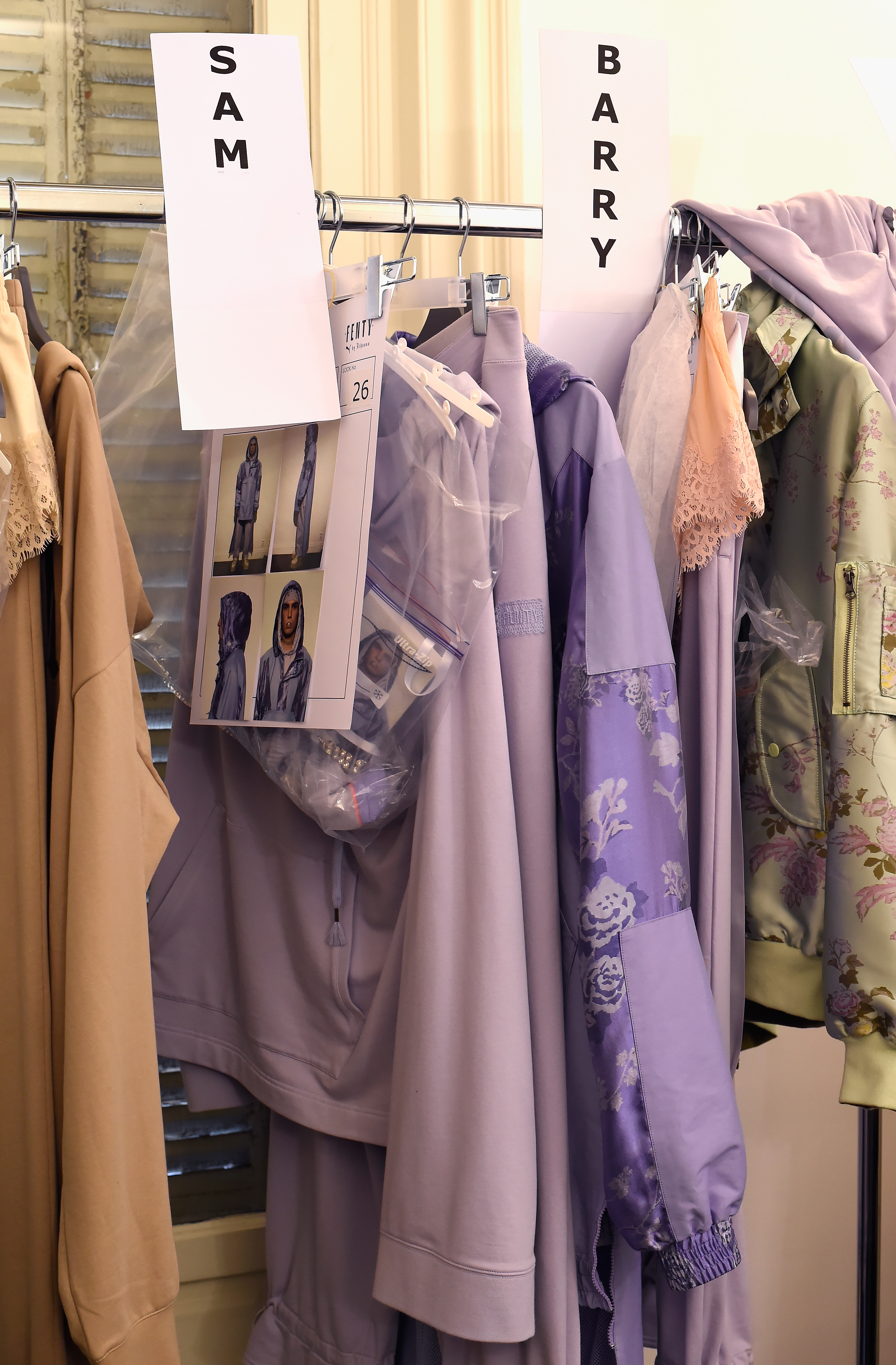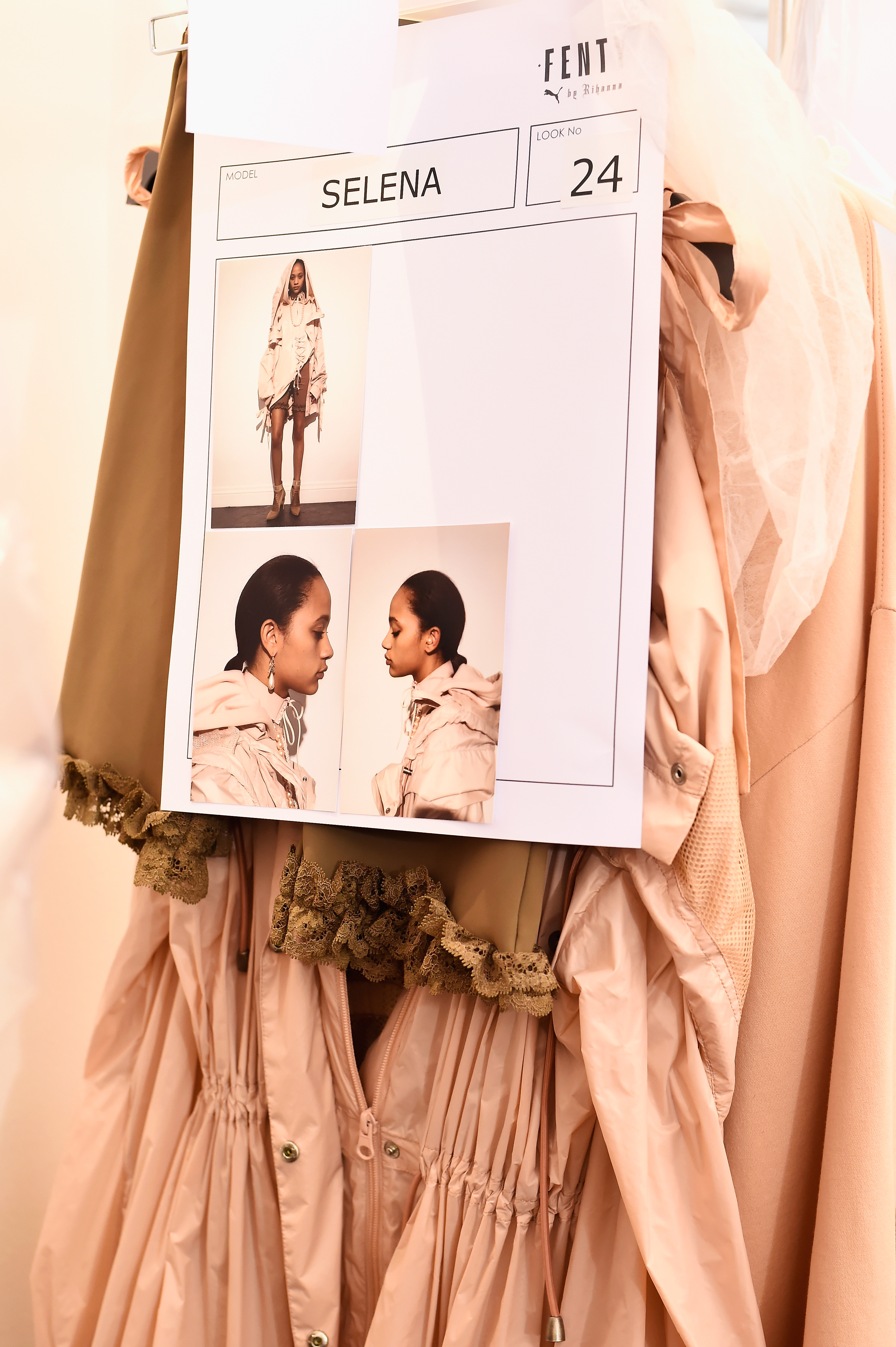 - PARIS, FRANCE – SEPTEMBER 28: Models looks are seen backstage during FENTY x PUMA by Rihanna at Hotel Salomon de Rothschild on September 28, 2016 in Paris, France. (Photo by Victor Boyko/Getty Images for Fenty x Puma)